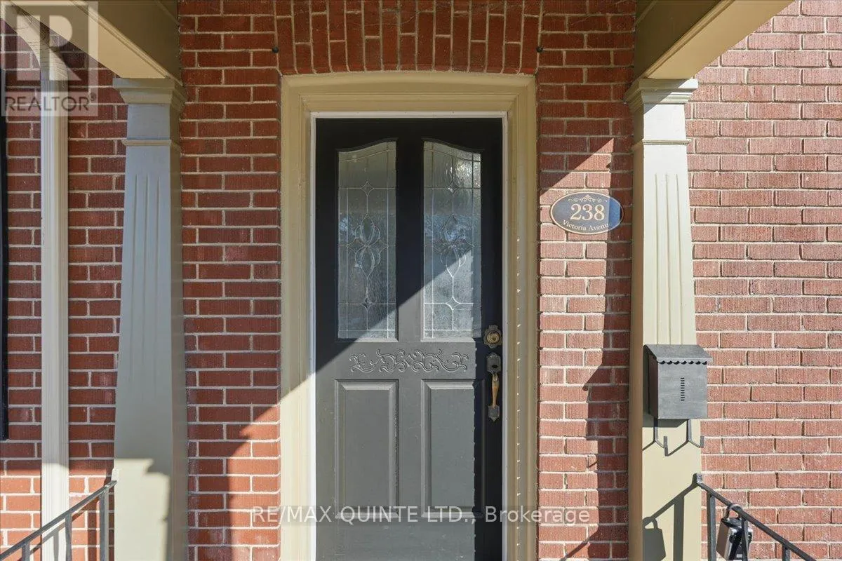 Cross Streets: Victoria. ** Directions: Hwy 2, North on Dufferin to Victoria, turn east on Victoria. Step into timeless charm with modern upgrades at 238 Victoria St. in Belleville, Ontario, perfectly situated just steps from the corner of Dufferin Avenue and Victoria. This beautifully maintained two-story Victorian brick home blends classic character with thoughtful updates. Inside, you'll find stunning hardwood floors, two cozy fireplaces, the living room fireplace surrounded by beautiful window accents, elegant built-in shelving, and beautiful wainscotting that adds both style and architectural charm. Freshly painted throughout, the home feels bright, welcoming, and move-in ready. Offering four spacious bedrooms and two bathrooms, this home has plenty of room for families or those seeking extra space. Major mechanical updates provide peace of mind, including a new boiler system (2017), ductless air conditioning and heat pumps (2020), and a 200-amp electrical panel upgrade. The basement adds incredible versatility, offering excellent potential for a home-based business or a future in-law suite-ideal for multi-generational living or additional income opportunities. Outside, enjoy a newly built fence and deck (2025)-perfect for entertaining or relaxing in your private backyard. The home also features a new roof (2024) and several updated windows. The detached garage is equally well cared for, with a new roof, electrical service, and a newer garage door (2016). A rare opportunity to own a character-filled home with modern comforts in a prime Belleville location-this one is not to be missed. (id:27476)