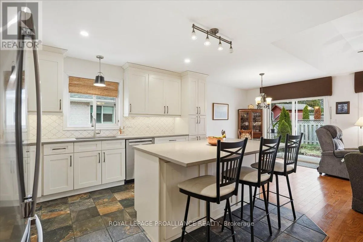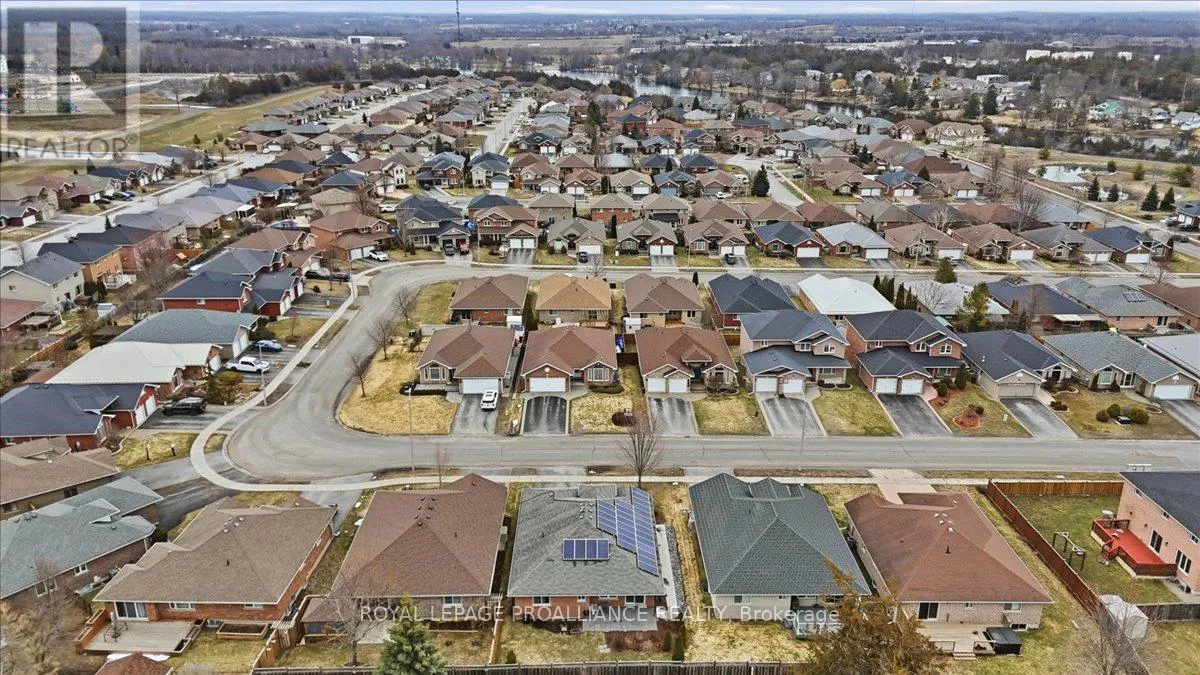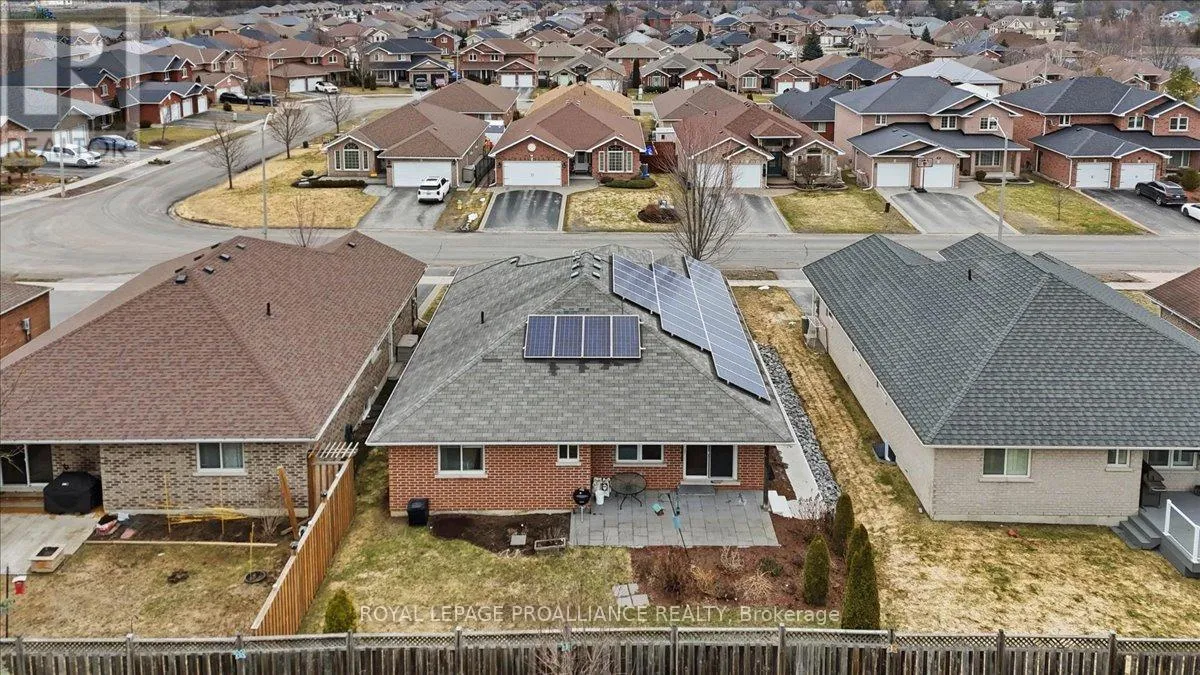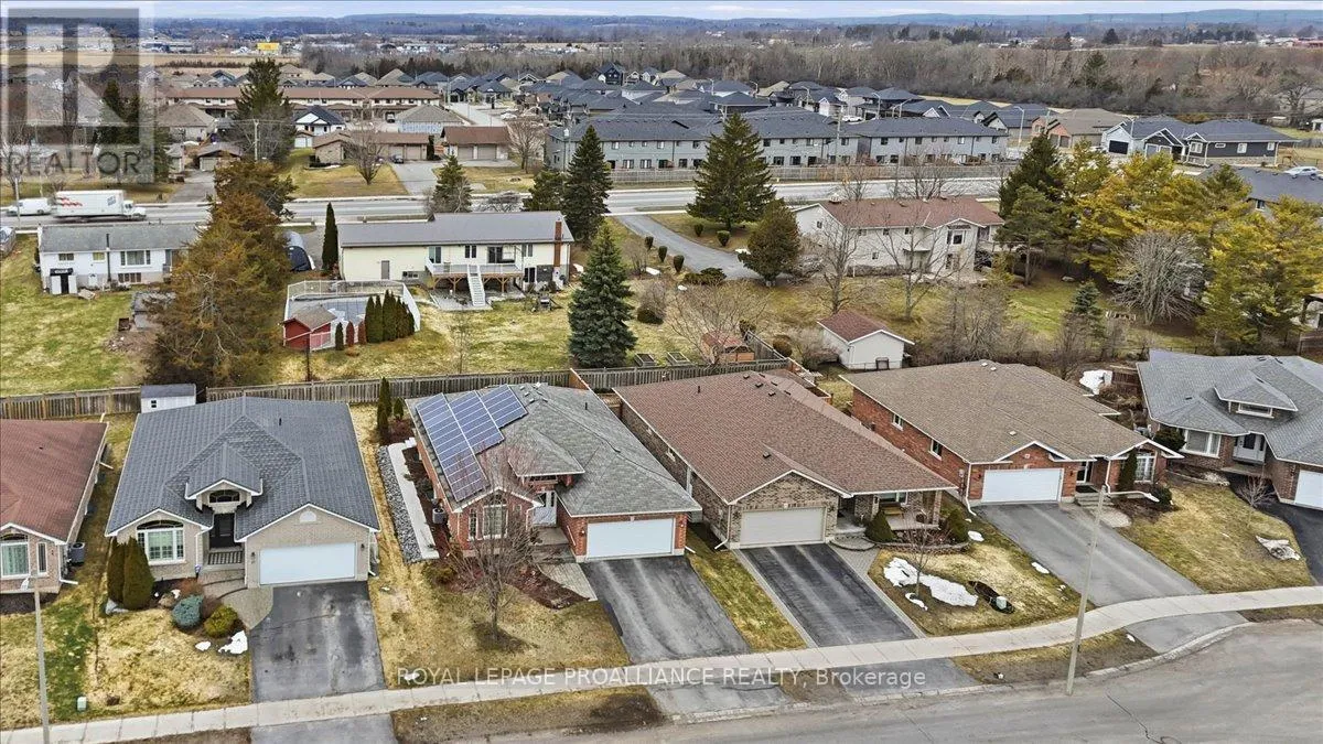 Cross Streets: Maitland/Farnham/Simcoe. ** Directions: Maitland Drive (through round about) north on Farnham to Simcoe to Chelsea. Welcome to this great, quiet subdivision offering convenient one-level living just minutes from Quinte Mall and Highway 401. This bright and cheerful bungalow features beautiful hardwood flooring, a stunning palladium window and vaulted ceiling in the living and dining rooms. The main-floor family room showcases an elegant coffered ceiling, creating a warm and inviting space for relaxing or entertaining. The lovely kitchen (2022) is equipped with upgraded appliances including Bosch dishwasher, newer fridge, huge island for extra storage and quick meals. A sunny eating area with patio doors leading to a large, private covered patio and beautifully landscaped gardens - perfect for enjoying peaceful outdoor living. Large tiled entry showcases the living room and dining rooms for more formal entertaining. Fully paid-for solar panels on south-facing roof offers great subsidy for cutting utility costs. (Paperwork on file) Additional highlights include huge front entry, direct access to 2 car garage & entry into the main-floor laundry for added convenience. The full, unfinished basement offers incredible potential, complete with a rough-in for a bathroom- ready for your personal touch and ideal for extended family living. A wonderful opportunity in a sought-after location. (id:27476)