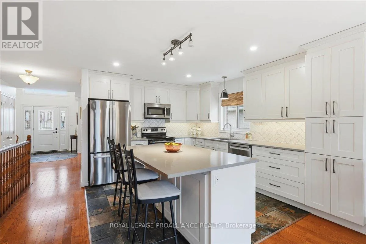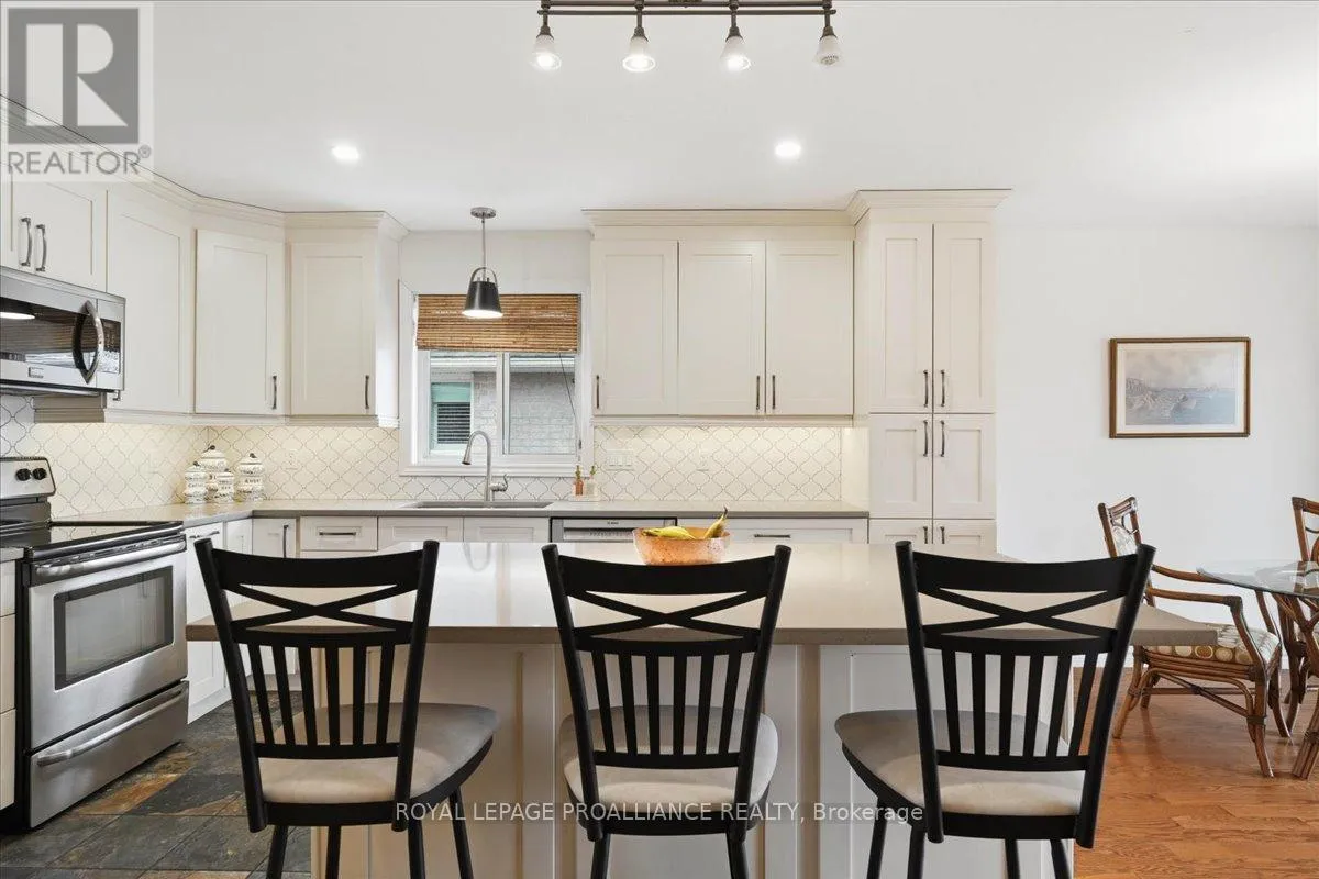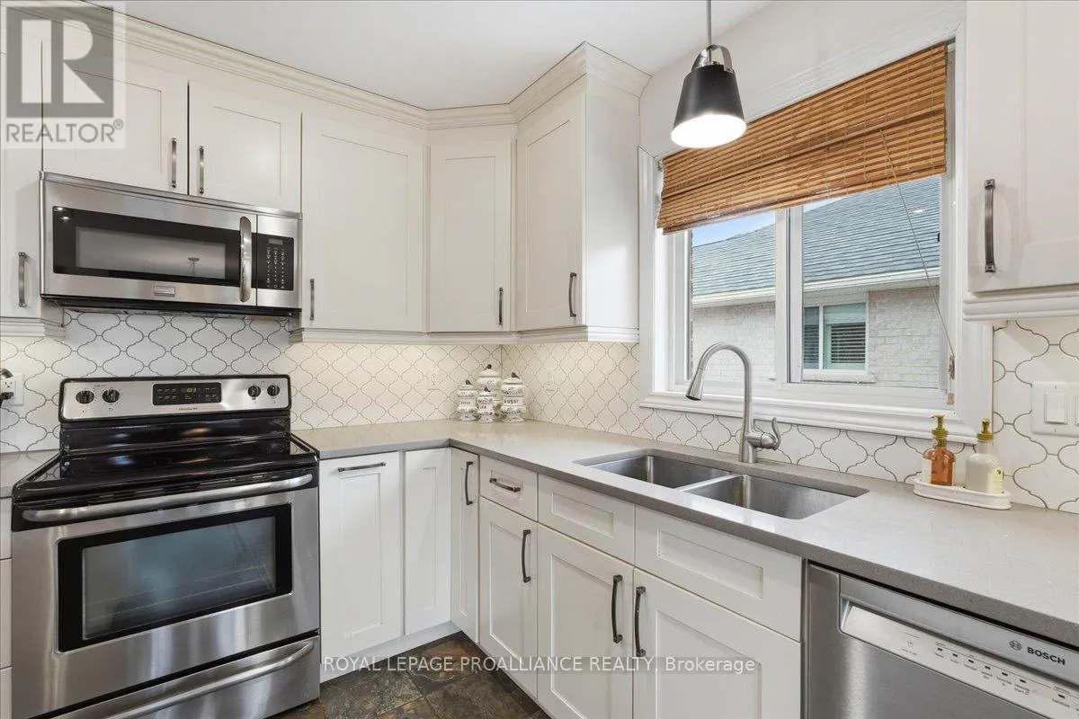 Cross Streets: Maitland/Farnham/Simcoe. ** Directions: Maitland Drive (through round about) north on Farnham to Simcoe to Chelsea. Welcome to this great, quiet subdivision offering convenient one-level living just minutes from Quinte Mall and Highway 401. This bright and cheerful bungalow features beautiful hardwood flooring, a stunning palladium window and vaulted ceiling in the living and dining rooms. The main-floor family room showcases an elegant coffered ceiling, creating a warm and inviting space for relaxing or entertaining. The lovely kitchen (2022) is equipped with upgraded appliances including Bosch dishwasher, newer fridge, huge island for extra storage and quick meals. A sunny eating area with patio doors leading to a large, private covered patio and beautifully landscaped gardens - perfect for enjoying peaceful outdoor living. Large tiled entry showcases the living room and dining rooms for more formal entertaining. Fully paid-for solar panels on south-facing roof offers great subsidy for cutting utility costs. (Paperwork on file) Additional highlights include huge front entry, direct access to 2 car garage & entry into the main-floor laundry for added convenience. The full, unfinished basement offers incredible potential, complete with a rough-in for a bathroom- ready for your personal touch and ideal for extended family living. A wonderful opportunity in a sought-after location. (id:27476)