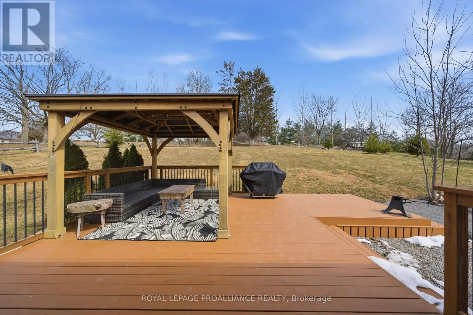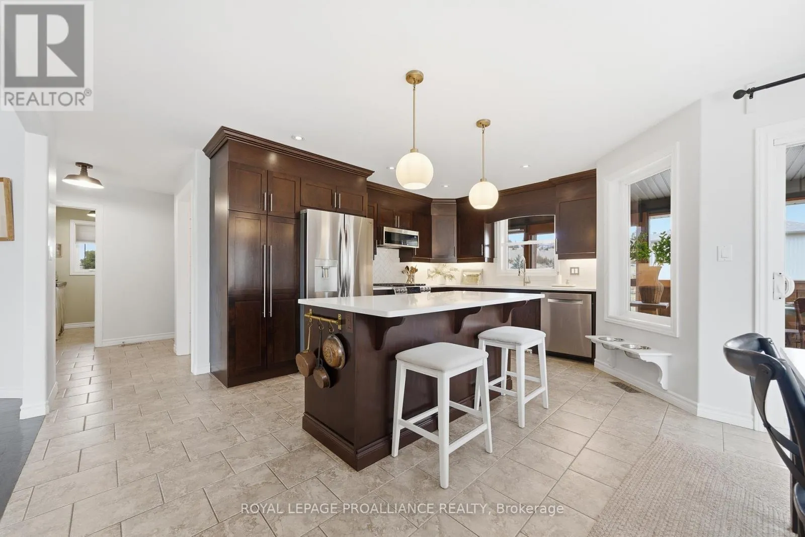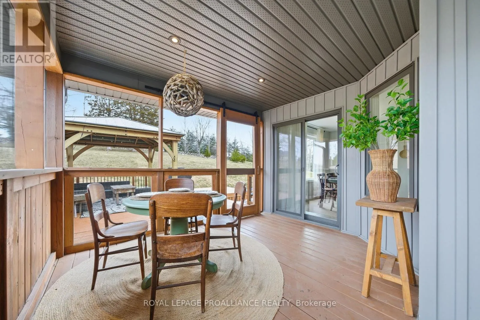 Mudcat Rd to Countrycharm Dr to Whindwhisper Dr This stunning stone-front bungalow is situated on an expansive lot in the highly desirable Hearth Stone Ridge Estates, offering a perfect blend of curb appeal and high-end functionality. The main level welcomes you with a large, bright entryway that flows into an open-concept living space with vaulted ceilings, featuring a beautiful kitchen with a massive center island, abundant cabinet storage, and a dedicated dining area. Retreat to the primary suite, which boasts a walk-in closet and a private 3-piece ensuite, alongside two additional main-floor bedrooms and a full 4-piece bathroom. The convenience continues with a main-floor laundry room equipped with built-in storage and a custom drying rack. Step outside through the dining room to a truly one-of-a-kind outdoor sanctuary: a screened-in covered porch featuring custom solid cedar barn-style sliding doors with metal wheel hardware, overlooking a professionally landscaped backyard complete with a deck, gazebo, and fire pit. For hobbyists, the attached two-car garage is fully heated and insulated for year-round use. The fully finished, exceptionally bright basement expands your living space with a large recreation and family room anchored by a cozy fireplace, a fourth bedroom, a two-piece bathroom, a dedicated pantry, and significant additional storage. (id:27476)