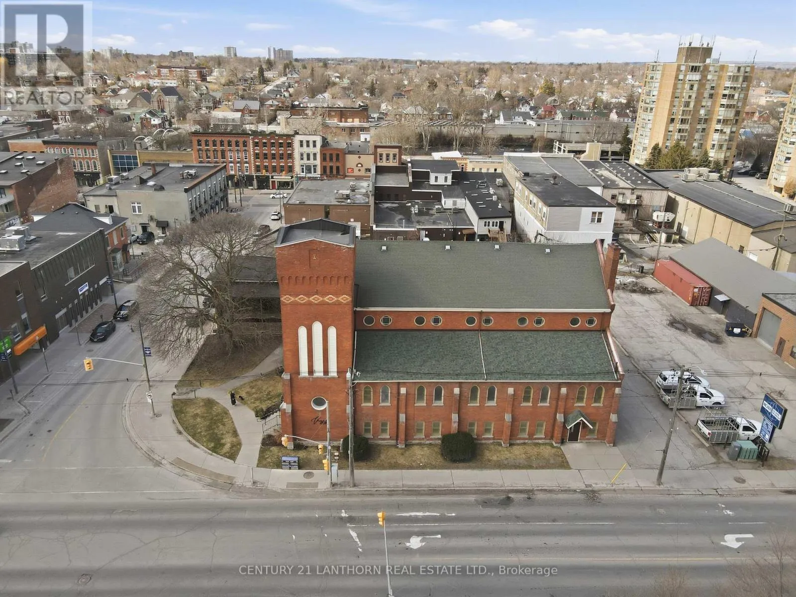 Cross Streets: Pinnacle St and Victoria Ave. ** Directions: Pinnacle St and Victoria Ave in Belleville. Venue 1906 is a wedding and special events space located in the heart of Downtown Belleville, Ontario. Built in 1906, this converted heritage church building boasts high ceilings with dark wooden beams and towering organ pipes. It is the perfect backdrop for ceremonies and receptions or special events. Seating for 140 people in the main space. Lower level space suitable for smaller groups or reception, connected to a prep kitchen. (id:27476)