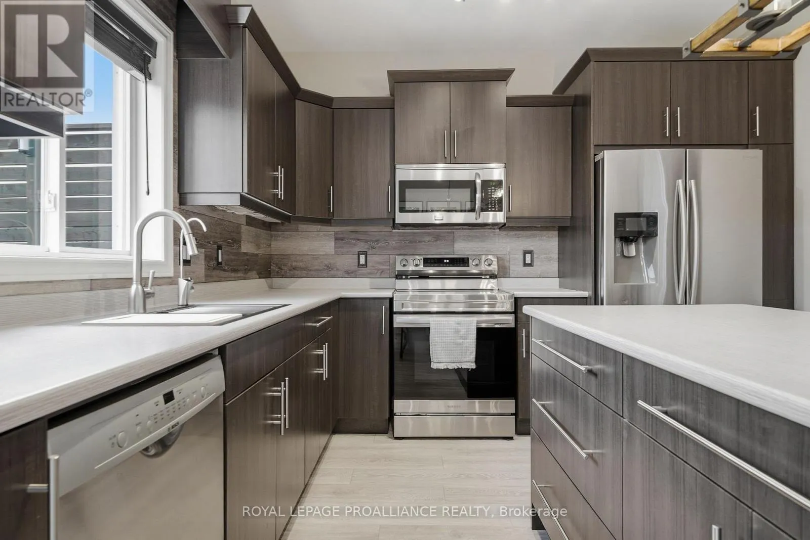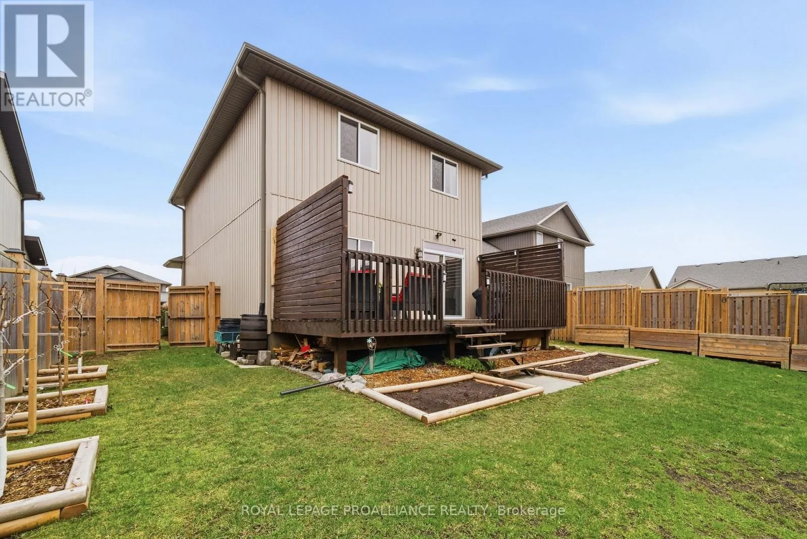 Cross Streets: Dundas West & Avondale. ** Directions: Avondale to Aldersgate. Right on Sage, Left on Chinook, Right on Granite Drive. Built in 2015 & feels like new. 19 Granite Drive is ideally situated on an interior street, just two blocks from the park offering pickle ball & tennis court, children's play area + open fields to run. This spotless home, with over 2,000 sq feet of finished living space provides everything a family needs & more. Spacious foyer connects from the double garage as well, providing 2 closets & convenient 2 piece powder room. The main living area, quietly tucked to the rear grants 9' ceilings throughout this comfortable space. The impressive kitchen promotes ample cabinet storage & classy staggered upper cupboards upgrade with complimenting backsplash, reverse osmosis drinking water & detached island overlooking the living & dining area. The transom window features allows natural sunlight to filter in & up the stairs via the strategic custom wall opening. Upper level provides 3 great sized bedrooms, the primary with a massive walk-in closet & 3 piece ensuite offering a step in shower with bench seating. The function continues with a large 4 piece bath and dedicated laundry room complete with widow & laundry sink. The perks extend into the basement with freshly finished recreation & bonus room, currently enjoyed as a gym with two windows offering many future use options to suit your own needs. Enclosed rough-in bath area provides a 4th bathroom option and fabulous storage in the utility room, under stairs area + custom garage shelving. Amazing exterior grants a large deck with gas BBQ line & privacy feature overlooking the fenced in yard, surrounded by raised garden beds & convenient side gate access on each side. Enjoy the fun children's play structure & the fruit offerings from the honeycrisp apple, bartlett & bosc pear trees. Potter's Creek is a family friendly neighbourhood within great proximity to paved walking, biking & roller blading trails, popular schools, shopping, CFB Trenton & the beautiful Bay of Quinte. Open House:Sunday April 19, 11am-12:30pm (id:27476)