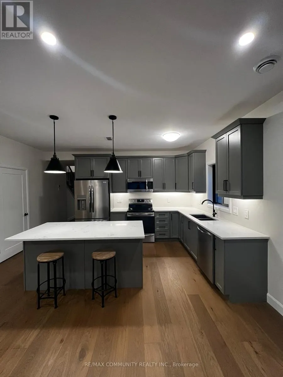 From Hwy 401, take Hwy 62 N, turn right on Maitland Dr. At the traffic circle, take the F Welcome to The Pennington Gate II A stunning New Urbanism detached home featuring 3 bedrooms and 2.5 bathrooms. This beautifully customized home boasts a spacious and bright living/dining area that opens to a private, landscaped courtyard perfect for relaxation or entertaining. The main floor impresses with engineered hardwood flooring throughout the living room, dining room, kitchen, and hallway. The modern kitchen is a chefs dream, complete with quartz countertops, an island with an extended breakfast bar, and stainless steel appliances. A cozy gas fireplace adds warmth and charm to the living space. The breezeway conveniently houses a powder room, laundry area, and mudroom, providing direct access to the attached 2-car garage. The main-floor primary bedroom features a large walk-in closet and a luxurious ensuite bathroom. Upstairs, you'll find two generously sized bedrooms and a well-appointed main bathroom, offering a perfect retreat for family or guests. With low maintenance and move-in readiness, this home is ideal for anyone looking for modern living with style and convenience. Don't miss this opportunity schedule your viewing today! (id:27476)