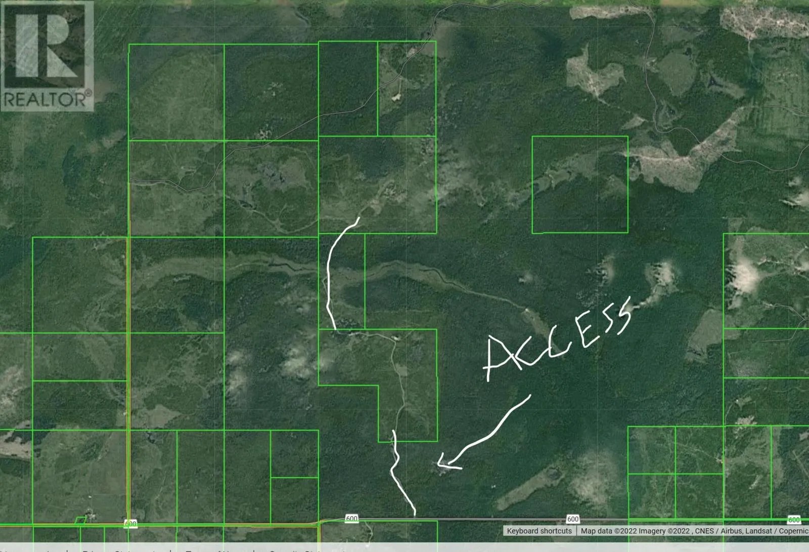 Just East of Fred's Rd on Hwy 600, entrance is on the North side across Crown land. So this is one of the more unique parcels I have dealt with, there's 372 acres of total acreage between the 2 parcels with access being obtained off of Hwy 600 across 1/3 of a mile of Crown land to the edge of the first parcel down a very good roadway. The cabin/home/Deer Mahal is approx located 1 mile from Hwy 600. On the 372 acres there's a 504 sq ft cabin and a 34' x 24' garage, dug well (not hooked up), 6 deer stands, shower house/toilet, outhouse, wood shed and approx 2 miles of trail system! The cabin itself is just beautiful, don't even need a deer stand as you can just sit on the front porch and get your trophy Buck with the large hay field just out front of it! This is The Little House on the Prairie but actually located in the timber, not swamp, with 1000's of acres of crown land around the properties with no neighbors for a couple miles, peacefulness, tranquility, piece of mind is what I felt sitting on the couch or the bench outside on the porch. Access to the second parcel is from a trail through a neighboring privately owned parcel where the current owner has never been. The parcels are in an organized township but they don't require permits and haven't for quite a few years, so make it your own!! The possibilities are endless and The Best is Yet to Come! (id:27476)