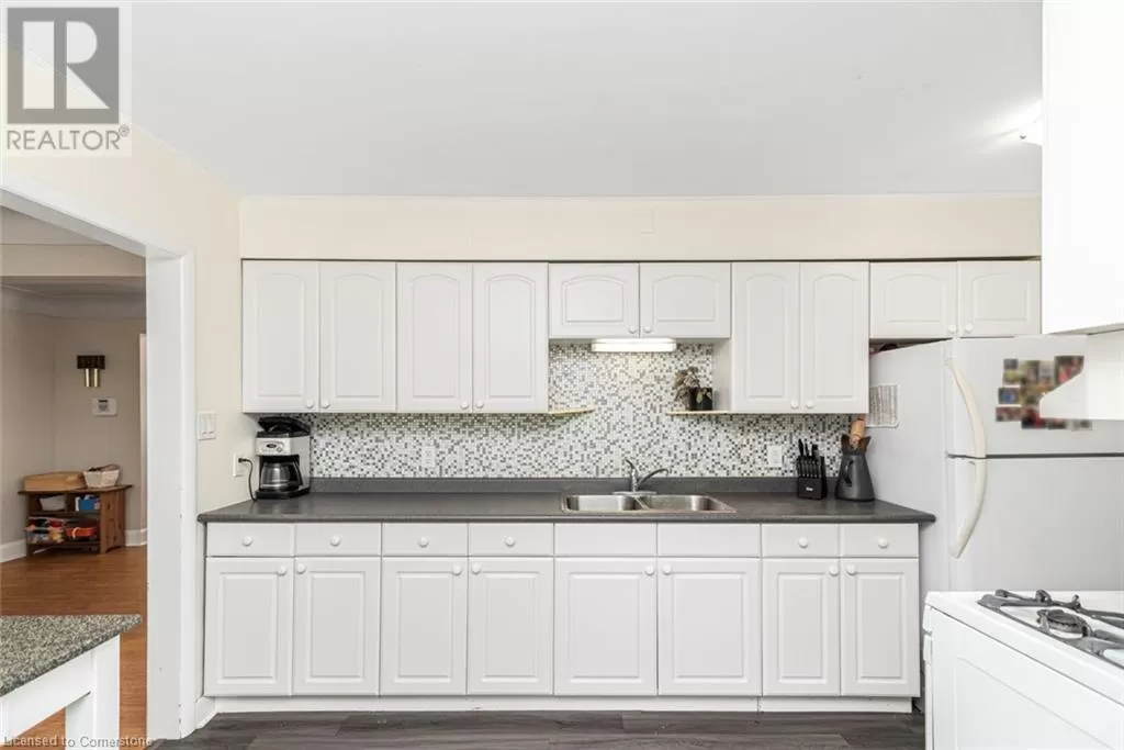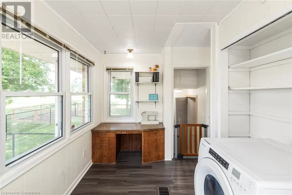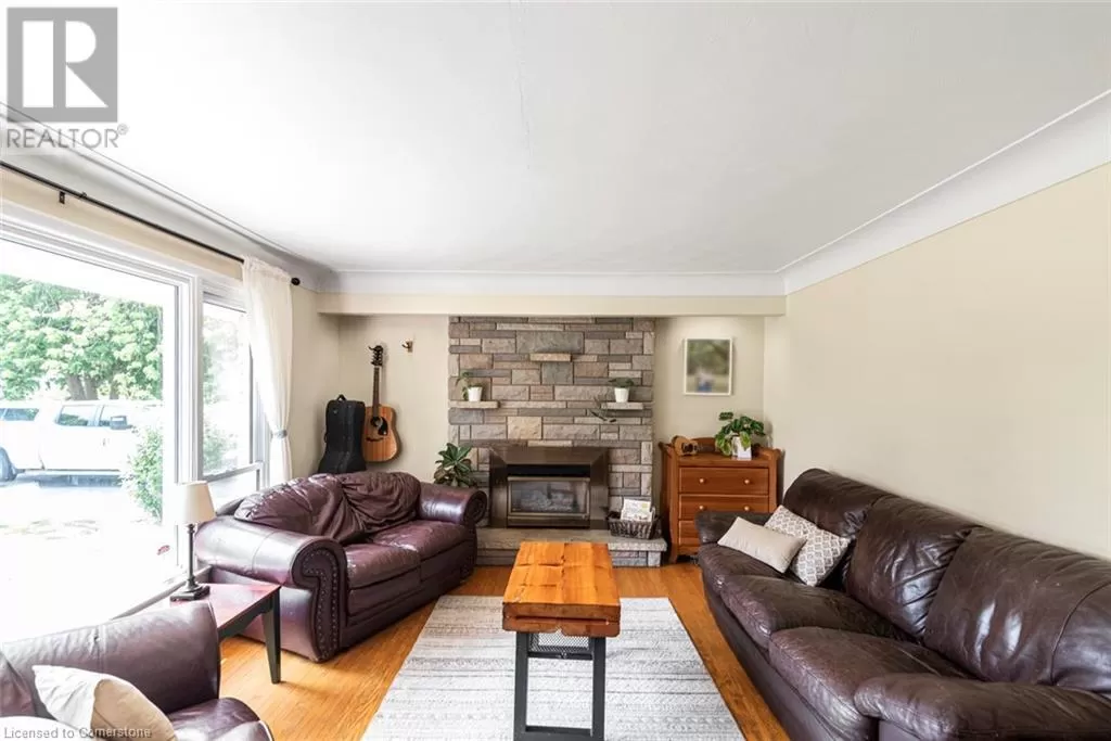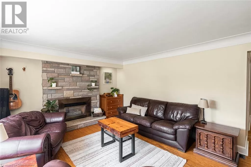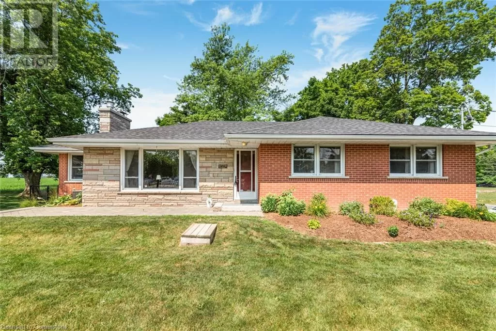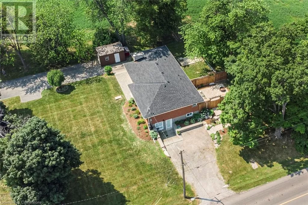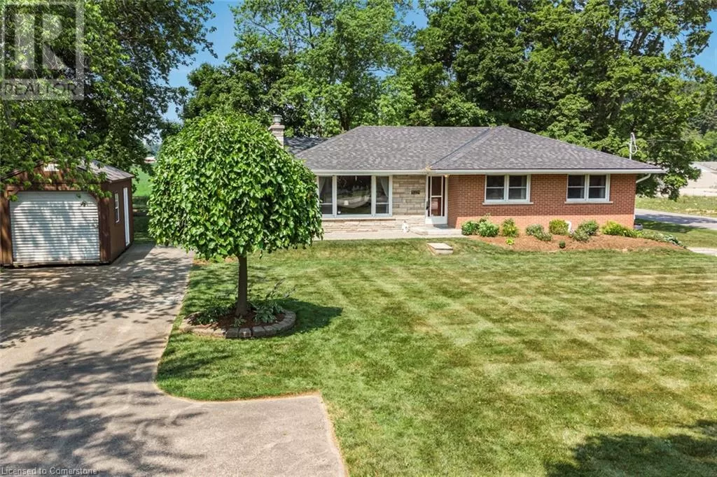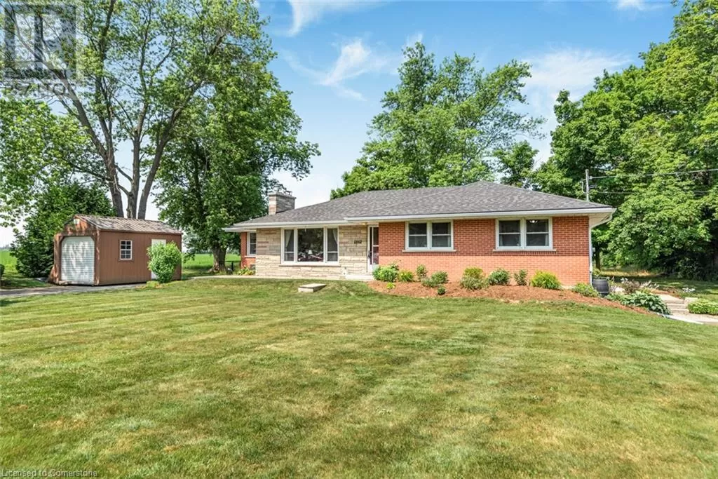 Property located on the south/west corner of Guyatt Road and Highway 56 Great country property located just minutes out of the city. Spacious main floor with original hard wood floors, cozy living room with a gas fireplace and lots of windows overlooking the private back yard. The lower level is finished with 2 bedrooms, a full bathroom and a second kitchen. The separate basement entrance allows great access and extra light into the basement. Outside there is a private patio area that is a great spot to relax and look out over the farmers field. Roof shingles were replaced in 2024. 3000 gallon cistern. (id:27476)