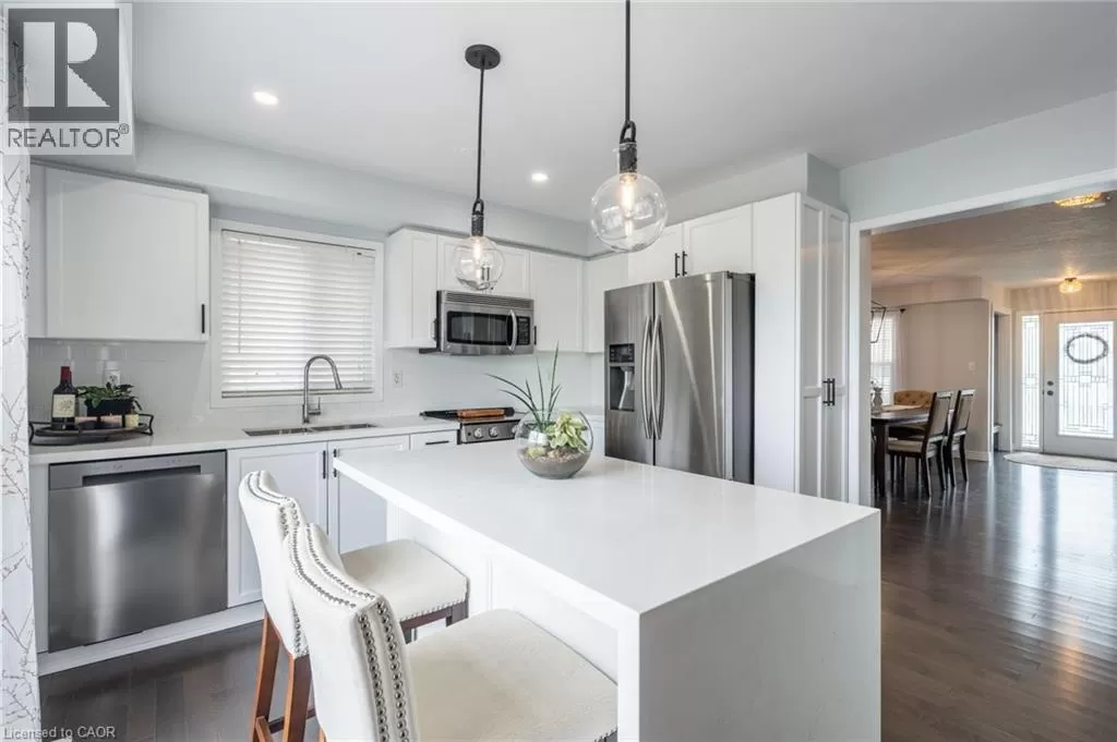 Highway 56 turn right to Windwood and left on Voyager Pass. Welcome to this beautifully updated detached home offering 4 spacious bedrooms and 3 modern bathrooms. Step inside to find rich hardwood floors throughout and a freshly painted interior that exudes warmth and style. The heart of the home is the newly renovated kitchen, featuring a brand-new island, a generous pantry, and stylish updated light fixtures perfect for entertaining or family gatherings. Convenience is key with an upstairs laundry area, making everyday living even easier. Enjoy relaxing mornings on the inviting front porch and make the most of outdoor living with concrete pathways leading to the backyard, where serene views of open farmland create a peaceful retreat. Practical updates include newly edged driveway for clean curb appeal and a finished basement offering flexible space for a home office, gym, or recreation room. Move-in ready with thoughtful upgrades throughout. Don't miss your chance to make it yours! furnace (2024) dishwasher (2025) driveway/concrete work (2023) stove (2025) (id:27476)