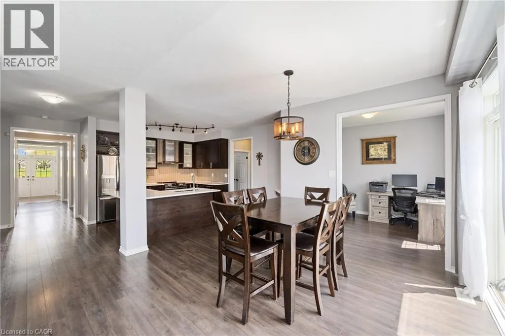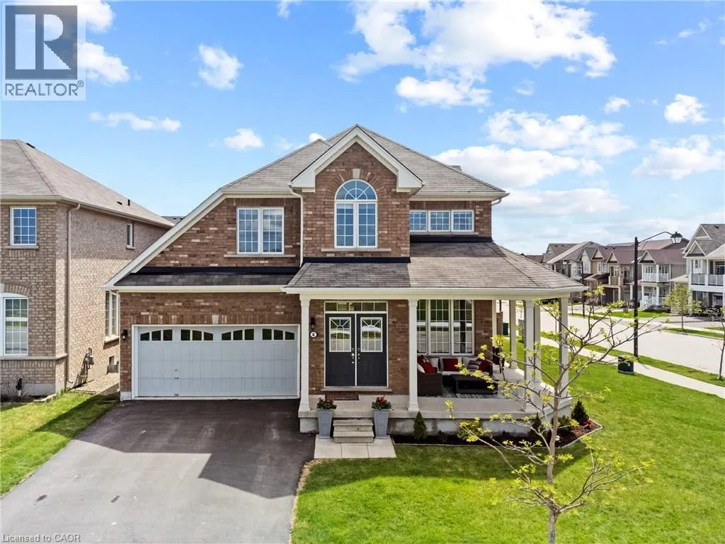 Binbrook Rd to Binhaven, left on Tinlin Dr Welcome to this beautifully maintained and charming 4 bedroom, 3 bathroom home, ideally located on a spacious corner lot with a classic wrap-around porch, perfect for enjoying your morning coffee or relaxing evenings. From the moment you arrive, the striking double front door entry sets the tone for the warm and inviting interior. Step inside to discover a bright, open concept main floor, neutrally painted throughout and designed for modern family living. Stylish laminate flooring flows seamlessly across the main level, where you'll find a versatile dining room that can serve as a secondary family room or play area, and features a dedicated office, ideal for working from home or managing busy schedules. The heart of the home is the sleek, contemporary kitchen, featuring gorgeous recently installed quartz countertops (Feb 2025), a walk-in pantry, and a built-in coffee nook. Large sliding glass doors off the kitchen lead to a spacious, unspoiled backyard, a blank canvas with endless potential for outdoor entertaining or gardening. Interior access off the kitchen to a two-car garage adds everyday convenience. Upstairs, you'll find plush, newly installed carpeting (April 2025) and four generously sized bedrooms, offering comfort and privacy for the whole family. Master bedroom is spacious and features two walk-in closets and an abundantly sized ensuite with soaker tub, double sinks, separate shower. Located close to schools, parks, and shopping, this home combines comfort, functionality, and location, all in one beautiful package. Over 1200+ sq.ft of unfinished basement. Don't miss your chance to own this exceptional family home in one of the area's most sought-after communities! (id:27476)