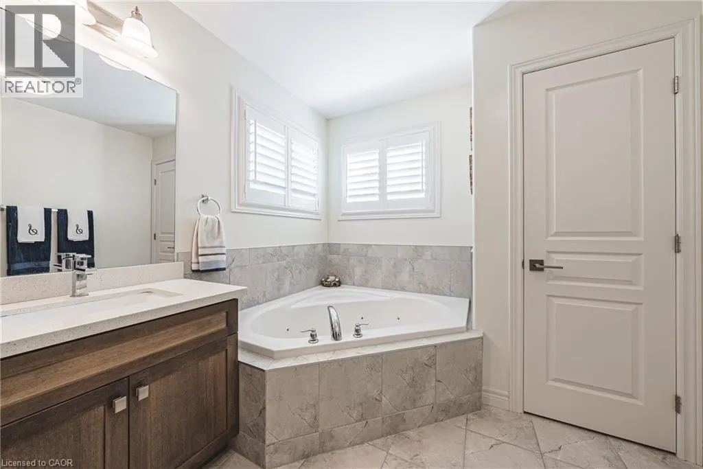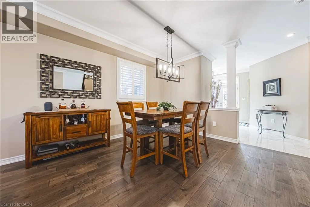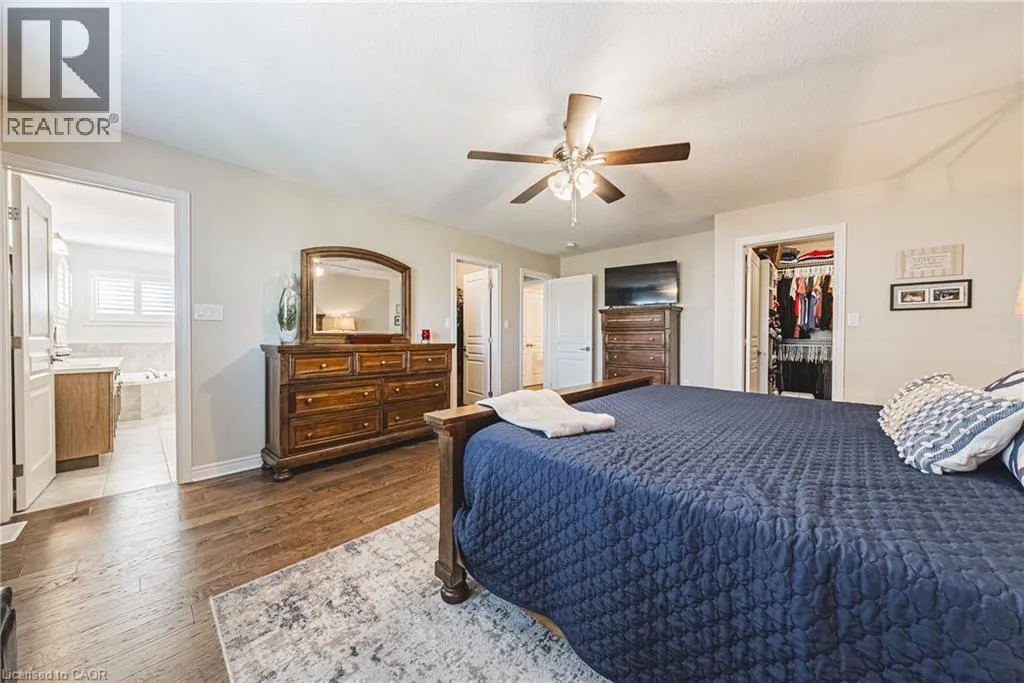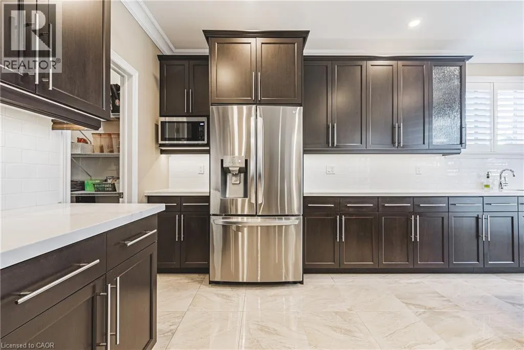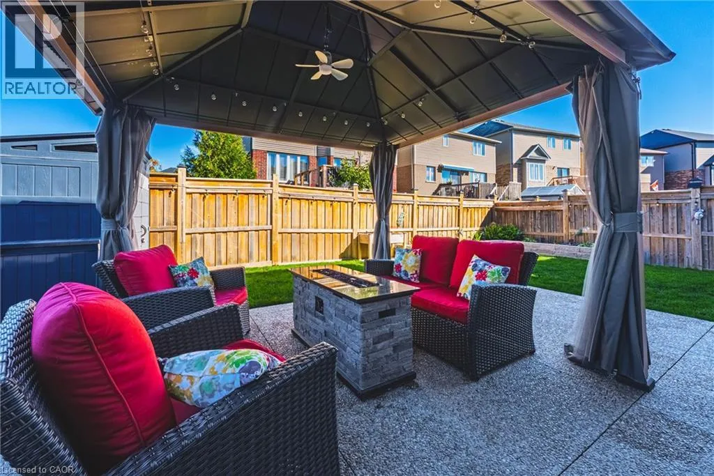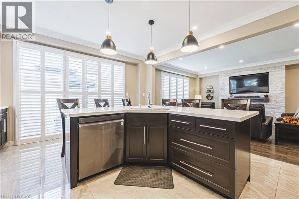 Binbrook Rd to Royal Winter Dr to Kinsman Dr Step inside this stunning 5 bedroom, 2.5 bath, 2748 sq. ft home located directly beside lush greenspace in sought after Binbrook community. Enjoy privacy and open space to the west side of the property giving families additional space to enjoy the outdoors. Losani built home with 70k of recent upgrades. Thoughtfully designed interior for those who love to entertain. Welcoming large foyer leads to open concept layout flowing seamlessly from a chef inspired kitchen-featuring a large 6-person quartz island, brand new appliances, walk in pantry, stunning extended cabinetry with undermount lighting and ample prep space check off all the I wants in this kitchen. Spacious living area highlighted by a custom stone-faced entertainment wall and rich hardwood floors throughout. Walk out patio doors lead to tastefully and professionally finished backyard space equipped with concrete patio, gazebo and shed. Wood staircase leads to bedroom level featuring 5 bedrooms blanketed in hardwood floors with second level laundry. Luxurious master bedroom features his/her large walk in closets and ensuite bathroom. With roughly 8â4â ceiling height, roughed in full bath, and approximately 1,100 square feet of customizable space, the unfinished basement is waiting for your finishing touches. Great curb appeal highlighted with concrete veranda/steps with aggregate border and professionally installed soffit LED Gemstone Lighting System to welcome you home.Style comfort and functionality come together perfectly in this beautiful modern home (id:27476)