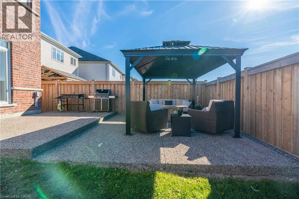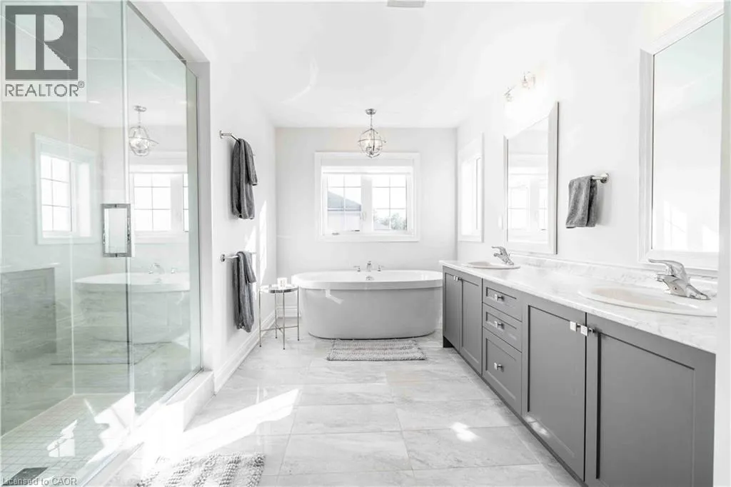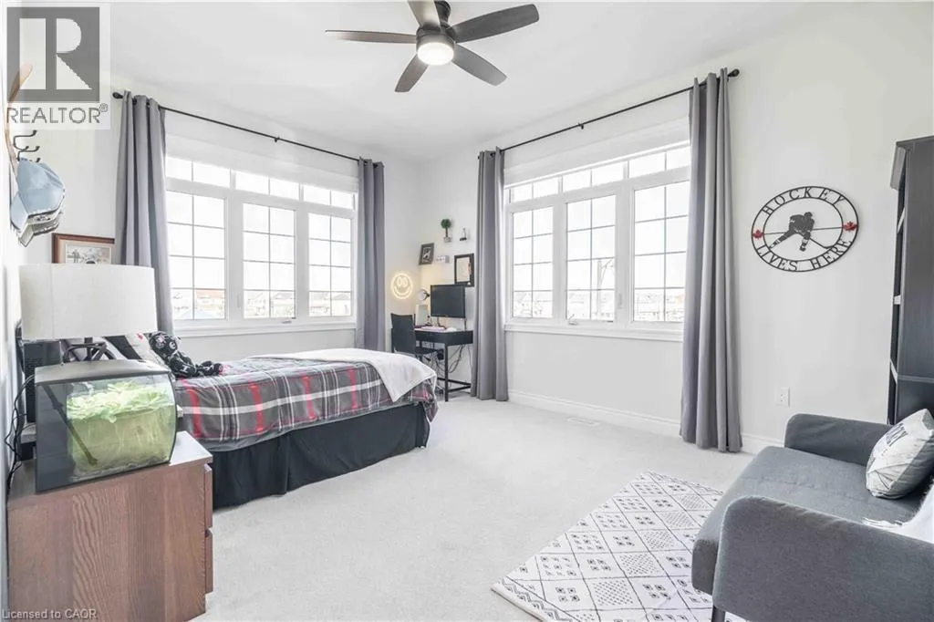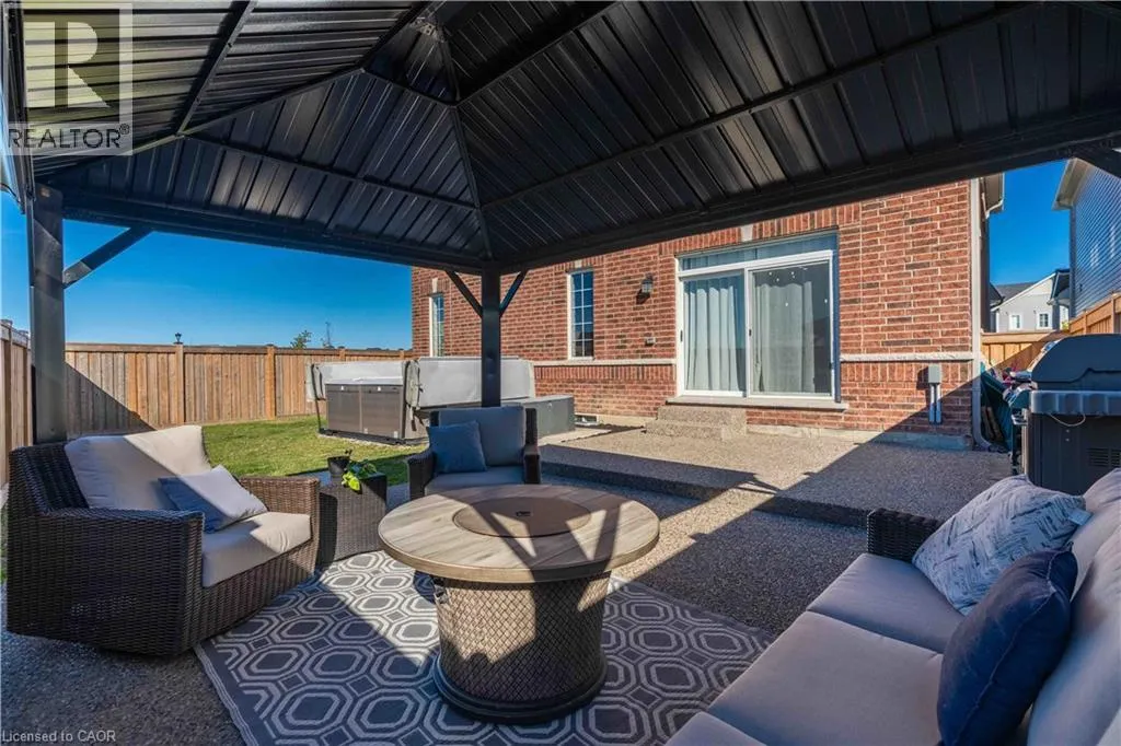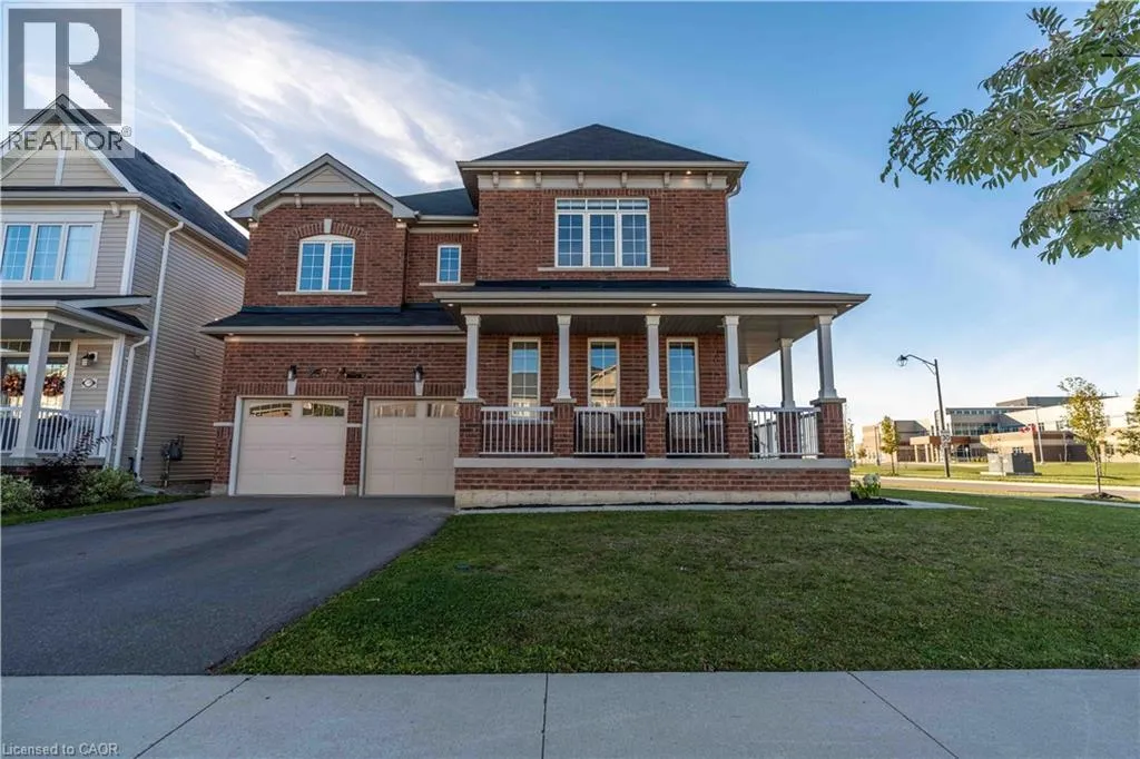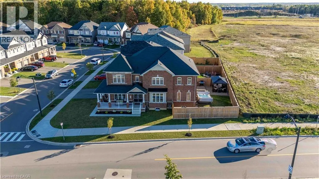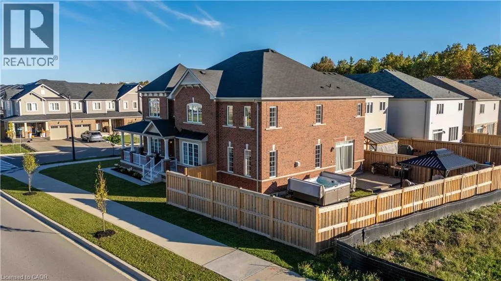 Fletcher Road to Pumpkin Pass to Kinsman Drive. OPEN HOUSE SUN OCT 19TH FROM 2-4PM. EXCITING NEW PRICE - GREAT VALUE! Impressive full-brick exterior, nearly new home (2021), in the heart of Binbrook in prestigious location- premium corner lot measures 57' frontage. Positioned directly across from park & school playground. Boasting over 3200 sqft of luxurious features, this beautiful home provides something for everyone enjoying upscale convenience. Eye-catching curb appeal is enhanced by 26 exterior potlights, a myriad of huge windows to let the warmth of sunlight stream in, covered porch leading to grand double-door entrance. Note the joy of no homes to the north-just the tranquility of greenspace! Inside the glamour continues with soaring 9' ceilings, open concept main level, gleaming hardwood and tile flooring, upscale light fixtures, plenty of recessed lighting, gas fireplace in Family Room, premium KitchenAid stainless appliances in chef's Kitchen complete with peninsula, upgraded extended cabinetry, handy pull-out shelving, tiled backsplash, oversized 8' patio doors & so much more! Custom blinds on main level feature motorized remote control! Upper level boasts luxury Primary bedroom complete with 5-pc ensuite bath and huge walk-in closet, plus a second primary suite also having private bath. 2 other bedrooms share a Jack 'n Jill bath. Note that the larger bedroom also features soaring 10' ceilings as an added delight. Completing this level is a spacious laundry with additional storage! Basement boasts 4 Egress windows -awaits your finishing touches. Outdoors, enjoy private, fully fenced/gated backyard oasis, large exposed aggregate patio, relaxing 9-person Hydrapool self-cleaning hot tub,(2023) & refreshing gazebo (2024) gathering area. This home seamlessly blends space, style, convenience and lifestyleâready for your family to move in & enjoy. Just moments to shops, schools & amenities, minutes to Red Hill Parkway the LINC. Rarely does a property like this become available-make it yours today! (id:27476)