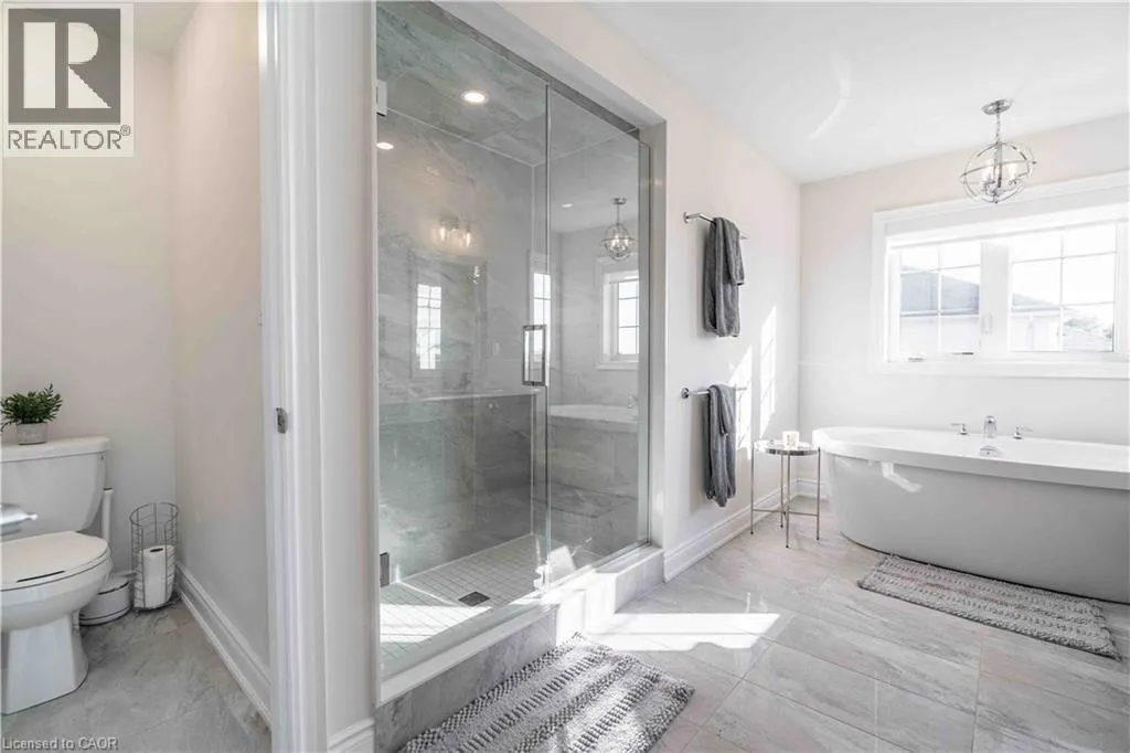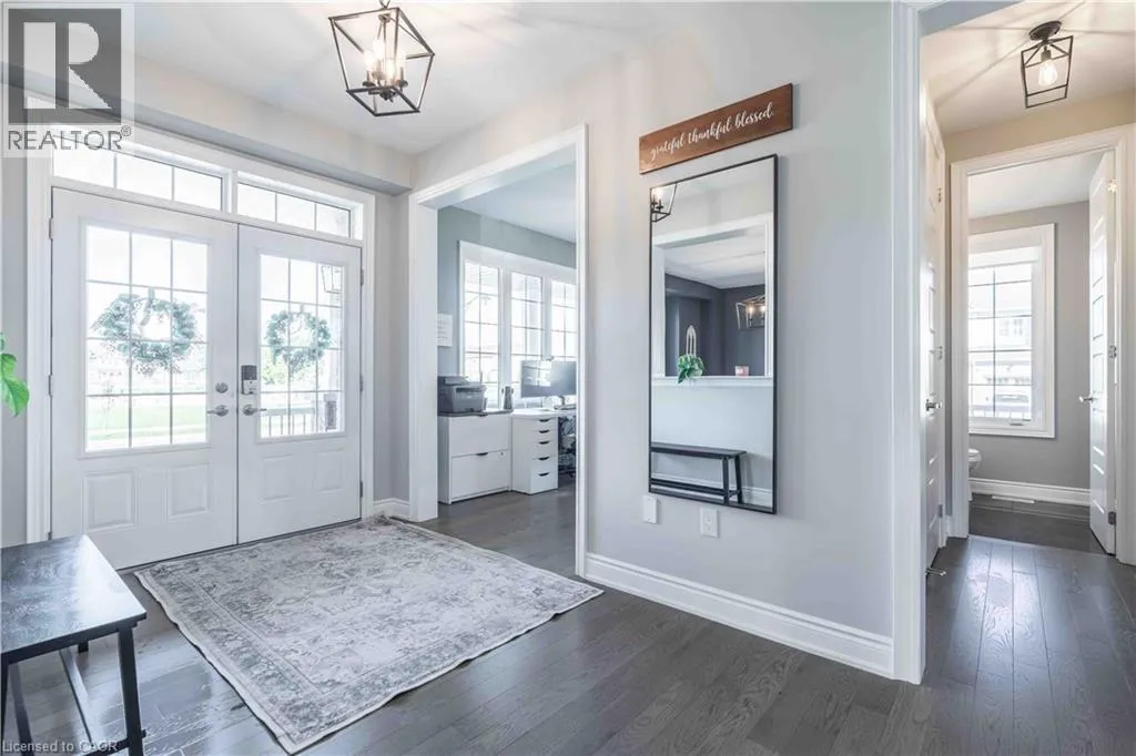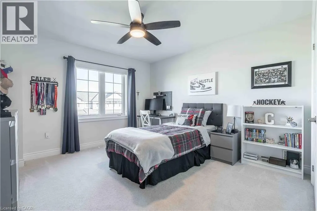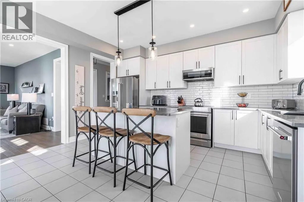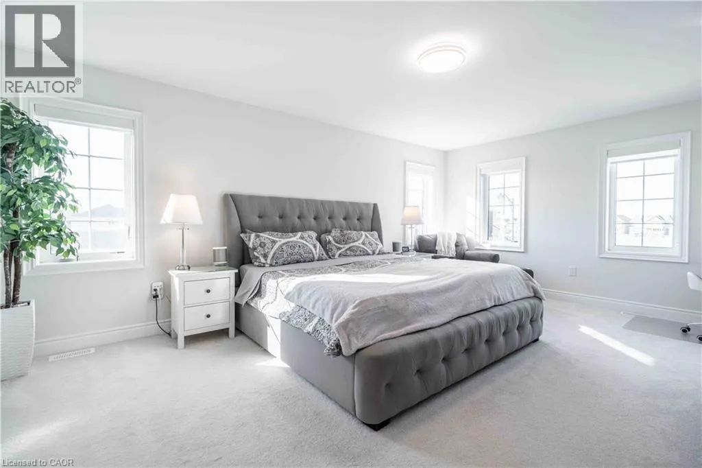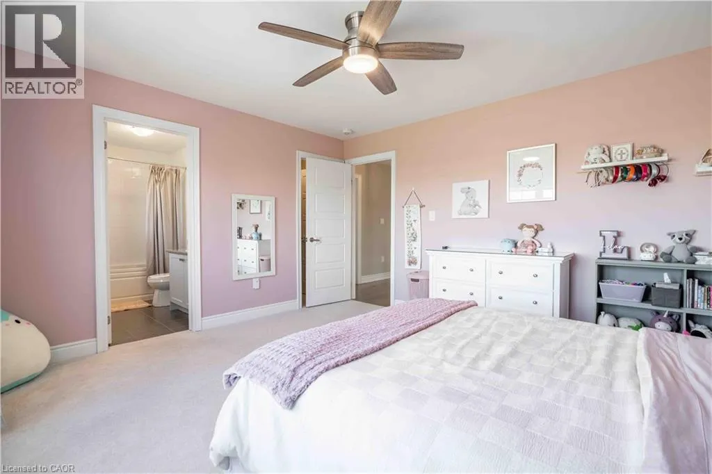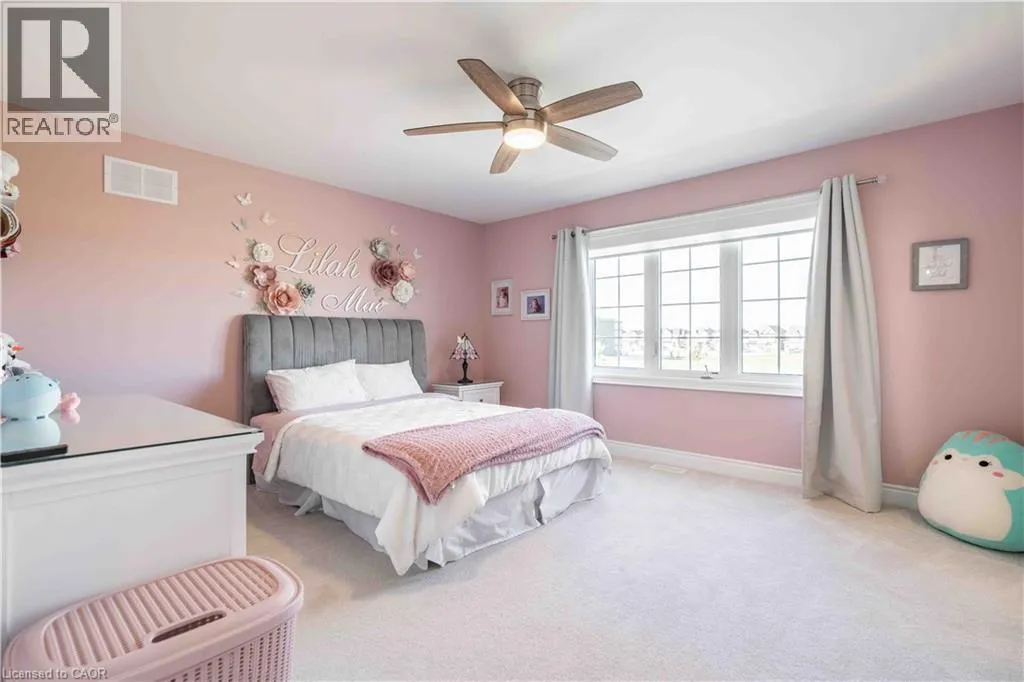 Fletcher Road to Pumpkin Pass to Kinsman Drive. OPEN HOUSE SUN OCT 19TH FROM 2-4PM. EXCITING NEW PRICE - GREAT VALUE! Impressive full-brick exterior, nearly new home (2021), in the heart of Binbrook in prestigious location- premium corner lot measures 57' frontage. Positioned directly across from park & school playground. Boasting over 3200 sqft of luxurious features, this beautiful home provides something for everyone enjoying upscale convenience. Eye-catching curb appeal is enhanced by 26 exterior potlights, a myriad of huge windows to let the warmth of sunlight stream in, covered porch leading to grand double-door entrance. Note the joy of no homes to the north-just the tranquility of greenspace! Inside the glamour continues with soaring 9' ceilings, open concept main level, gleaming hardwood and tile flooring, upscale light fixtures, plenty of recessed lighting, gas fireplace in Family Room, premium KitchenAid stainless appliances in chef's Kitchen complete with peninsula, upgraded extended cabinetry, handy pull-out shelving, tiled backsplash, oversized 8' patio doors & so much more! Custom blinds on main level feature motorized remote control! Upper level boasts luxury Primary bedroom complete with 5-pc ensuite bath and huge walk-in closet, plus a second primary suite also having private bath. 2 other bedrooms share a Jack 'n Jill bath. Note that the larger bedroom also features soaring 10' ceilings as an added delight. Completing this level is a spacious laundry with additional storage! Basement boasts 4 Egress windows -awaits your finishing touches. Outdoors, enjoy private, fully fenced/gated backyard oasis, large exposed aggregate patio, relaxing 9-person Hydrapool self-cleaning hot tub,(2023) & refreshing gazebo (2024) gathering area. This home seamlessly blends space, style, convenience and lifestyleâready for your family to move in & enjoy. Just moments to shops, schools & amenities, minutes to Red Hill Parkway the LINC. Rarely does a property like this become available-make it yours today! (id:27476)