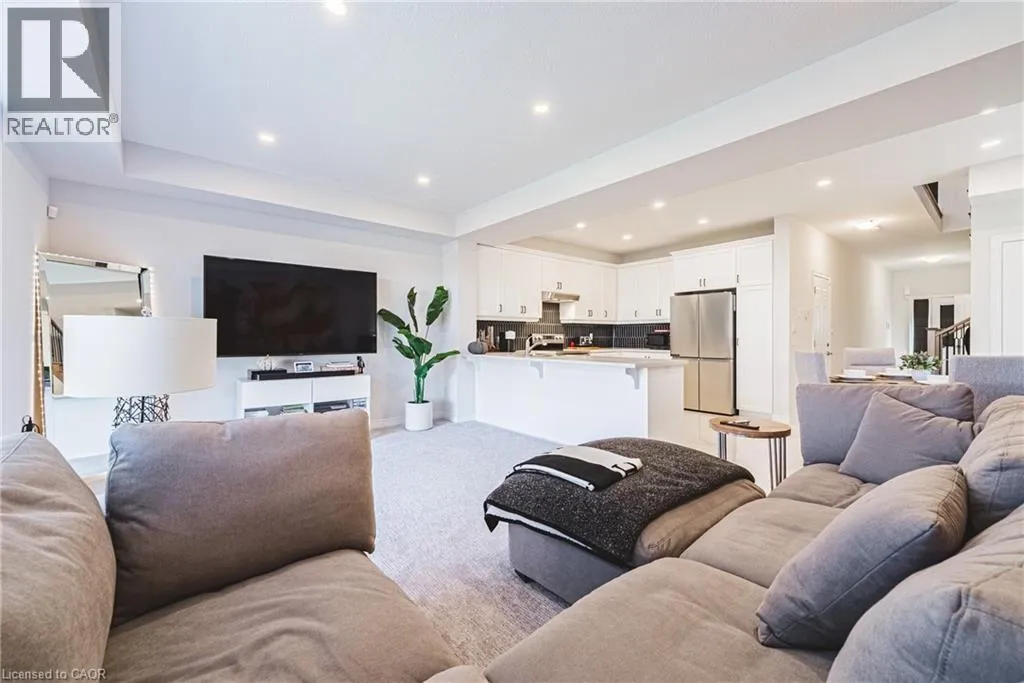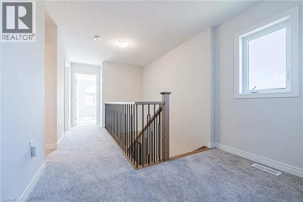 HWY 56 & ZOE LANE Stunning end-unit freehold townhouse in family friendly Binbrook community. Loaded with upgrades including high end ceramics, wood staircase, pot lights and the list goes on. Spacious main level with kitchen and dinette open into living room space with light drenched patio doors walking out to oversized rear lot. Premium cabinetry with new stainless steel appliances showcase the kitchen. Open ceiling staircase with large side window lead to 3 generously sized bedrooms and luxurious ensuite bathroom. Second full visitor bath is ideal for growing families. No side neighbor to west side gives privacy to massive backyard and side lot, which could potentially facilitate a pool. Loads of potential inside and out on this gorgeous home. (id:27476)