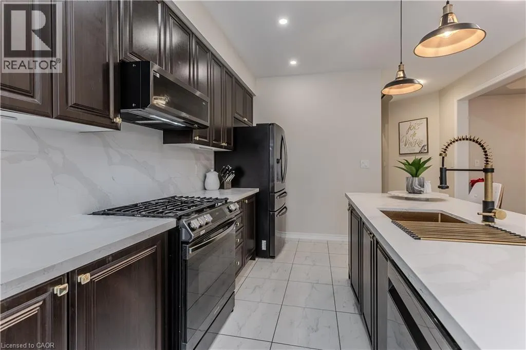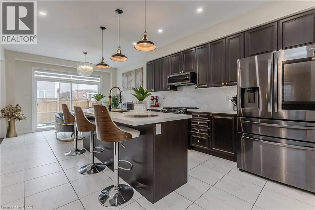 Fletcher Rd to McWatters St Welcome to a beautifully upgraded family home set in a warm, family-friendly neighbourhood surrounded by parks, walking paths, schools, shops, and all the conveniences growing families appreciate. This detached 2-storey offers a bright, functional layout with modern finishes and thoughtful details designed for everyday comfort and effortless entertaining. Curb appeal shines with a brick and siding facade, an upgraded double garage door (2025), and a stylish front door installed approximately two years ago. Step inside to a bright, welcoming entry enhanced by pot lighting with mobile app control and hardwood flooring that flows seamlessly throughout the main level. The open-concept main floor is ideal for hosting and family connection. The dining room features a tray ceiling that adds character and definition to the space. The upgraded kitchen is a true highlightâcomplete with quartz countertops (2025), a large island with breakfast bar, custom cabinetry, black stainless Samsung smart appliances, a quartz backsplash, upgraded undermount sink with designer faucet, and modern lighting. The walkout leads directly to the backyard, perfect for summer meals and easy supervision of kids at play. The family room is warm and inviting with an oversized window that fills the room with natural light and a cozy fireplace that creates the perfect backdrop for family movie nights or relaxing evenings. A wooden staircase with iron spindles leads to the second level. The second floor offers a spacious primary bedroom with a 5pc spa-inspired ensuite featuring a soaker tub, dual sink vanity, and glass shower enclosure. Three additional well-sized bedrooms, a 4pc main bathroom, and convenient bedroom-level laundry complete this ideal family layout. Outside, the fully fenced yard (2025) provides plenty of green space for kids to play and a gas line for effortless outdoor BBQs. A wonderful opportunity for families seeking comfort, style, and connection to a thriving community. (id:27476)