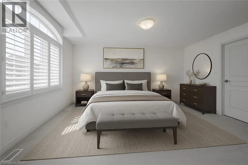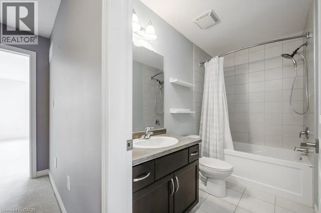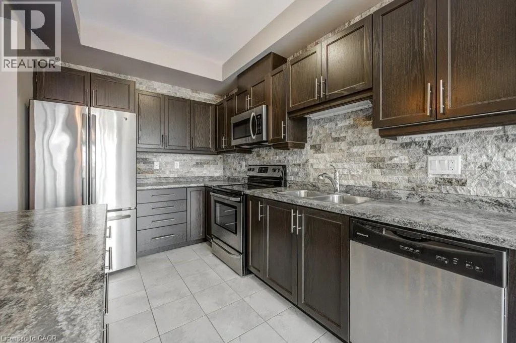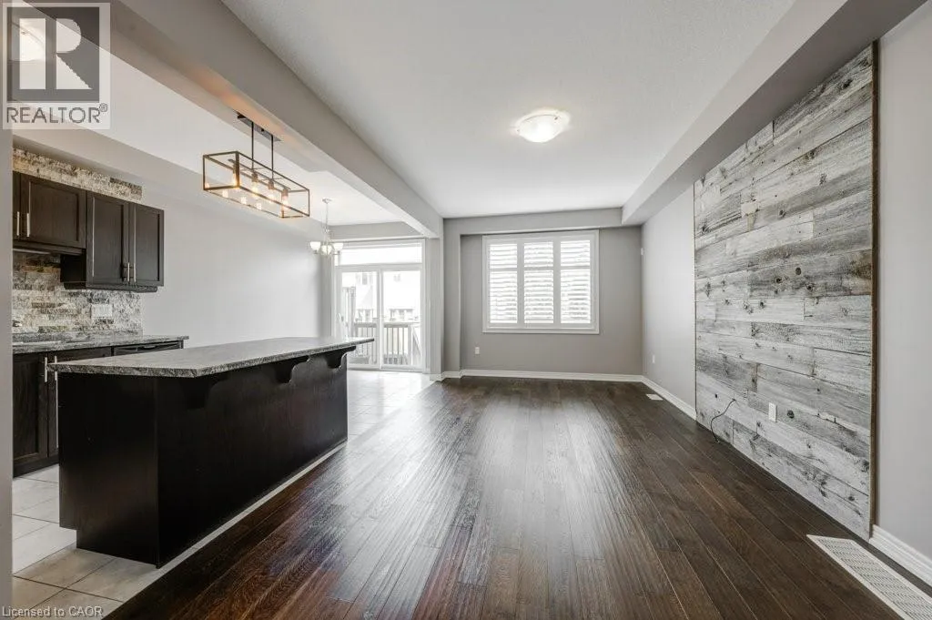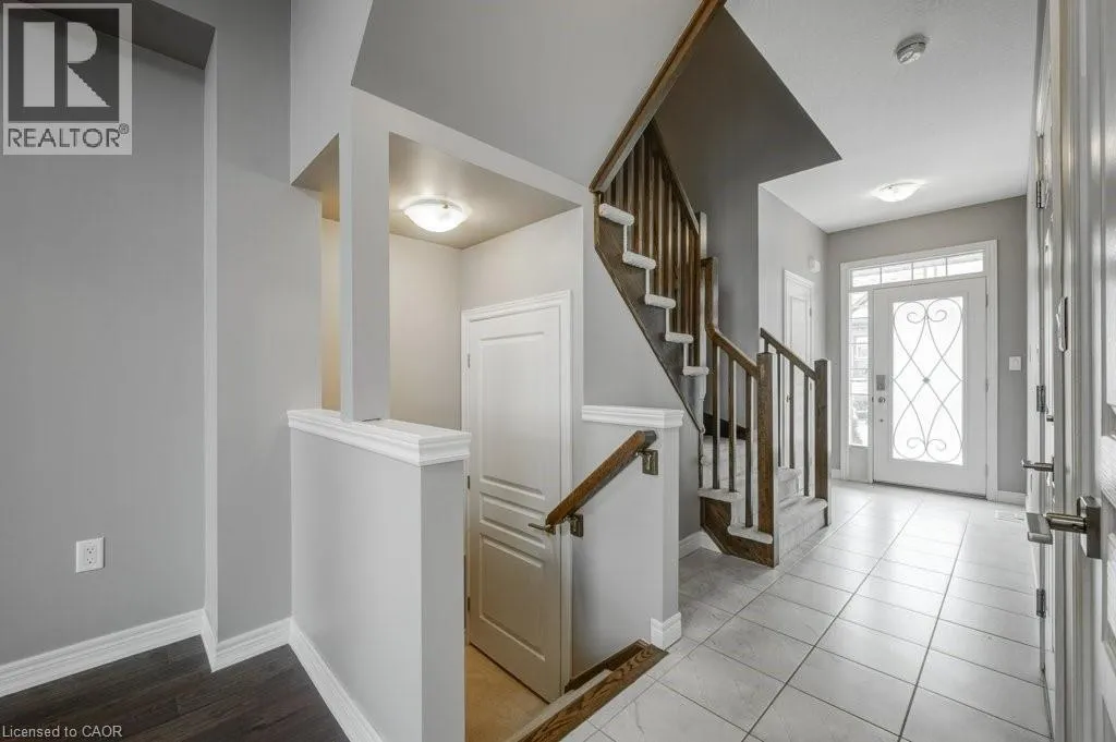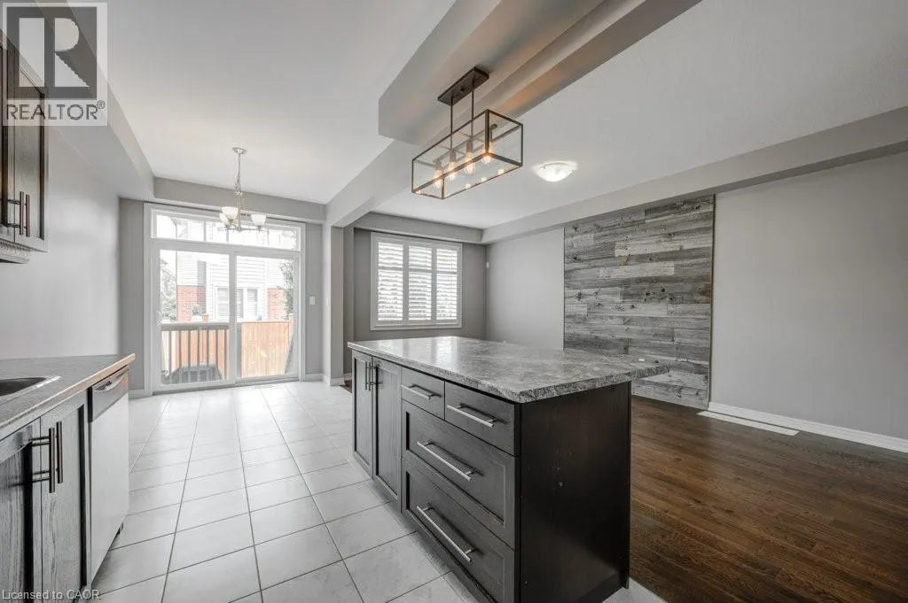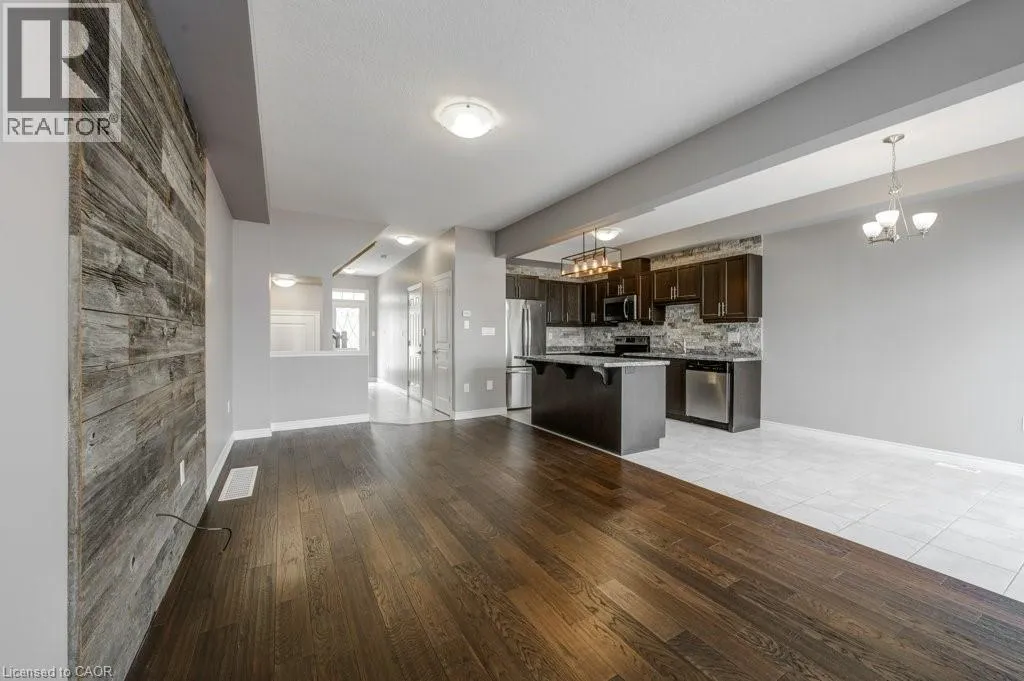 Binbrook Rd to Royal Winter Dr to Festival Way Situated in one of Binbrookâs most established and family-oriented neighbourhoods, this freehold townhouse delivers comfort, functionality, and move-in-ready appeal without the wait or uncertainty of new construction. Offering approximately 1,500 sq. ft. of well-planned living space, this home is ideally suited for growing families, first-time buyers, or anyone looking to put down roots in a welcoming community. The main level features a bright, open layout finished with hardwood and tile flooring throughout. At the heart of the home is a contemporary kitchen equipped with stainless steel appliances, a large centre island with seating, stone backsplash, and modern light fixtures. The dining space easily accommodates a full table and opens effortlessly into the living room, creating a comfortable and connected setting for daily living or hosting guests. The second level offers a spacious primary bedroom complete with a walk-in closet and private 3-piece ensuite. Two additional bedrooms, a full four-piece bathroom, and the convenience of upper-level laundry provide a practical layout designed for everyday ease. An unfinished basement presents excellent future potential. Whether you envision a recreation area, home gym, or added storage space. Outside, enjoy a fully fenced backyard thatâs easy to maintain and perfect for relaxing or entertaining. Located just minutes from schools, parks, and everyday amenities, this home combines the charm of a close-knit community with modern convenience. A solid opportunity in a desirable Binbrook location. *Some photos virtually staged. (id:27476)