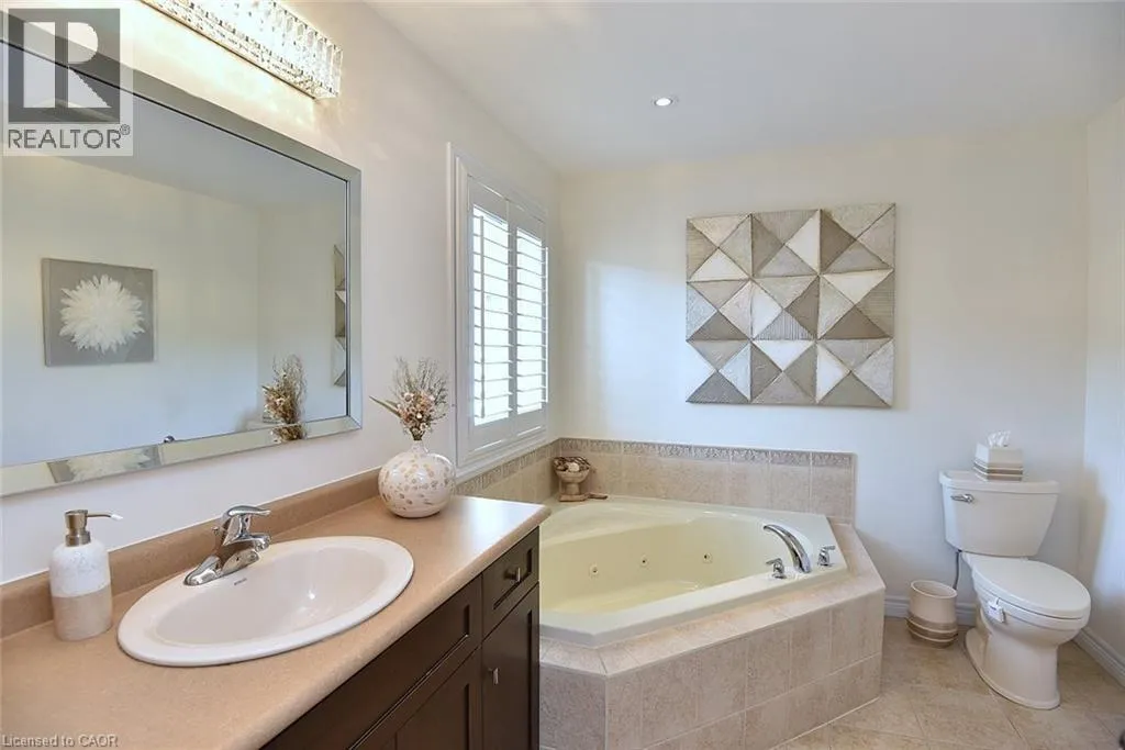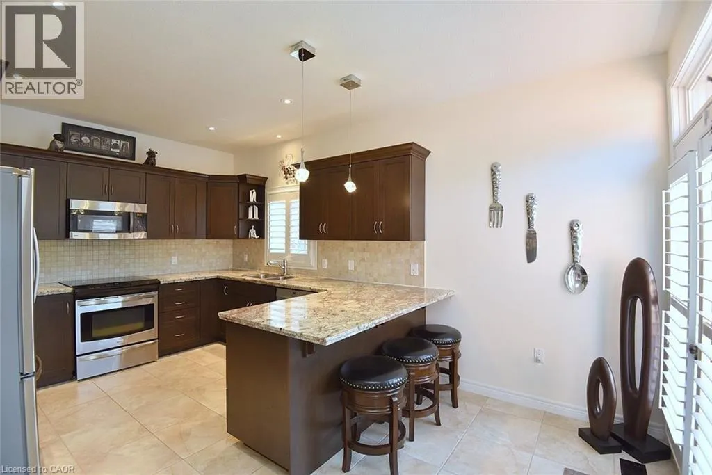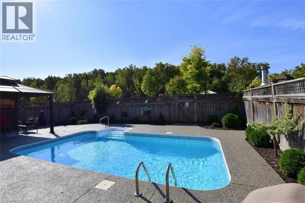 Hwy 56 to Maggie Johnson Dr to Tanglewood Dr to Degrow Cres Dive into summer with the heated saltwater in-ground POOL, the showstopping centerpiece of this exceptional 2009 John Bruce Robinson-built home in desirable Binbrook. Set on a premium 4e5' x 103' with no rear neighbours and direct access to parkland and forest, this backyard retreat also features an exposed aggregate patio and low-maintenance landscaping - the perfect blend for relaxation, and entertaining. This stunning two-storey home offers timeless curb appeal with its elegant combination of stone, brick, and siding. A spacious exposed aggregate double driveway leads to a charming covered front porch, creating a warm welcome. Located in a sought-after family-friendly neighbourhood, you're within walking distance to local shops and just 10-15 minutes to Hamilton, Stoney Creek amenities, the Linc, Red Hill, and QEW. Inside, approx 1900 sq. ft. to beautifully finished licing space showcases 9-foot ceilings, crown molding, hardwood floors, upgraded tile and designer lighting. The inviting foyer offers inside access to the two-car garage and flows past a custom oak staircase and convenient two-piece bath into the formal dining room. The chef-inspired kitchen is loaded with premium FEATURES, including Barzotti maple cabinetry, granite countertops, breakfast bar, stainless steel appliances, and a stylish tile backsplash. A French door walkout provides seamless access to the backyard and POOL, ideal for indoor-outdoor entertaining. The adjacent great room impresses with vaulted ceilings, and a cozy natural gas fireplace. Upstairs, the spacious primary suite features a walk-in closet and luxurious four-piece Jacuzzi ensuite with separate shower. Two additional bedrooms and a four-piece main bath complete the level. The basement has excellent potential for future customization - it does includes laundry and a bathroom rough-in. With standout FEATURES including the POOL, premium park-backing lot, and no neighbours in front, this home offers it all, don't miss it! RSA (id:27476)