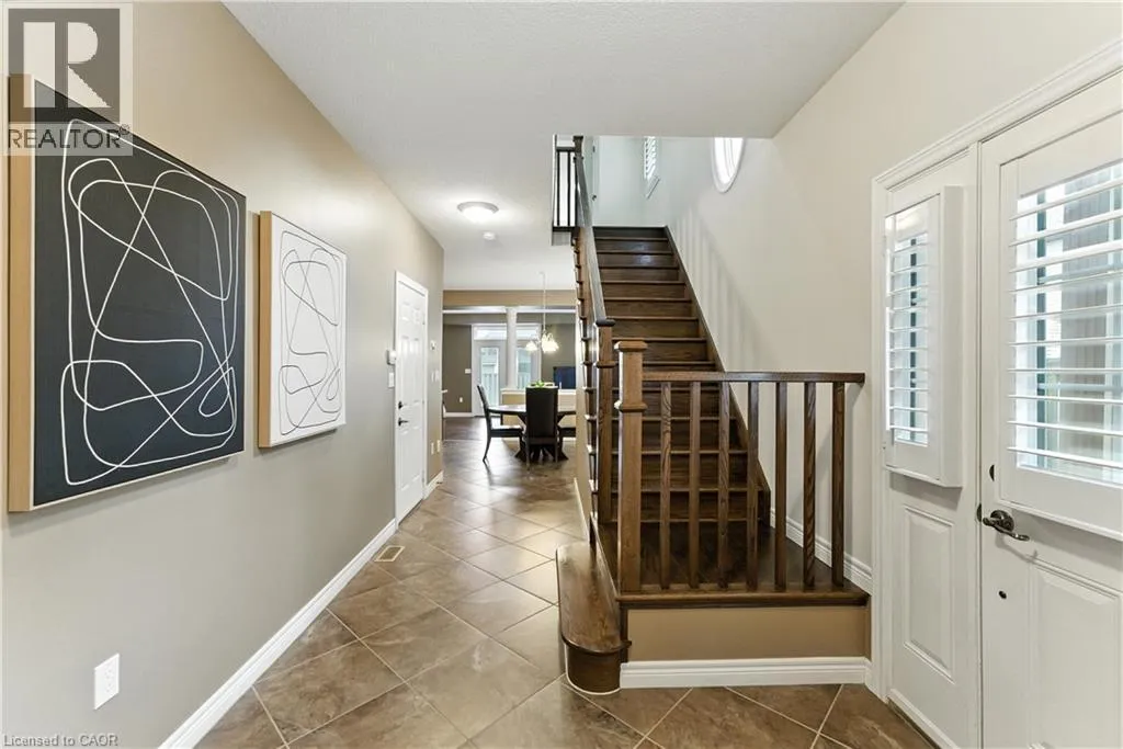 Hwy 56 to Fall Fair Way Welcome to this spacious 3 bedroom, 2.5 bathroom end-unit townhouse located in the heart of Binbrook, built in 2011 by John Bruce Robinson Construction, a builder known for quality and craftsmanship. Lovingly cared for by the original owner and in pristine condition, this home is move-in ready and truly stands out. This end unit has an oversized lot, perfect for outdoor entertaining, kids, or pets. The open-concept main level is stylish and inviting, featuring, 9ft ceilings, a beautiful kitchen with granite countertops, ceiling-height cabinets, and a breakfast bar. The large kitchen is open to a separate dining room. The French doors from the living room lead to the backyard, seamlessly blending indoor and outdoor living. Stylish hardwood flooring in the living room, hardwood stairs and California shutters on most windows and doors add to the homes elegance and functionality. Upstairs, you'll find three generously sized bedrooms, including a primary suite with walk-in closet and ensuite bath. A full basement provides plenty of potential for additional living space or storage. With its end-unit privacy, oversized yard, pristine condition, quality upgrades, and long-term original ownership, this home is a rare find in a family-friendly neighbourhood close to parks, schools, and all of Binbrook's amenities. (id:27476)