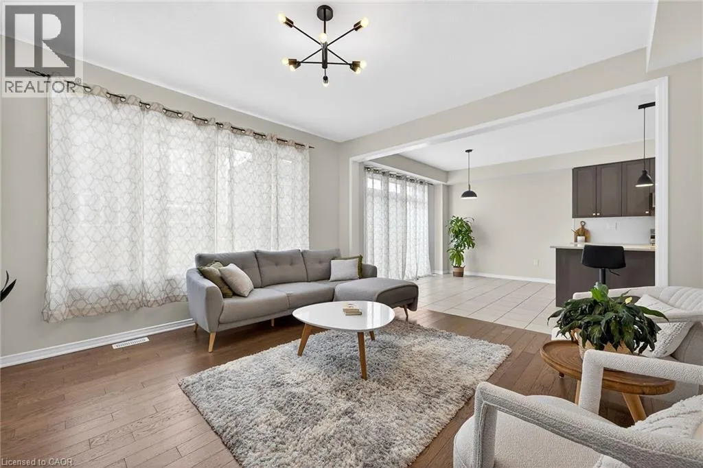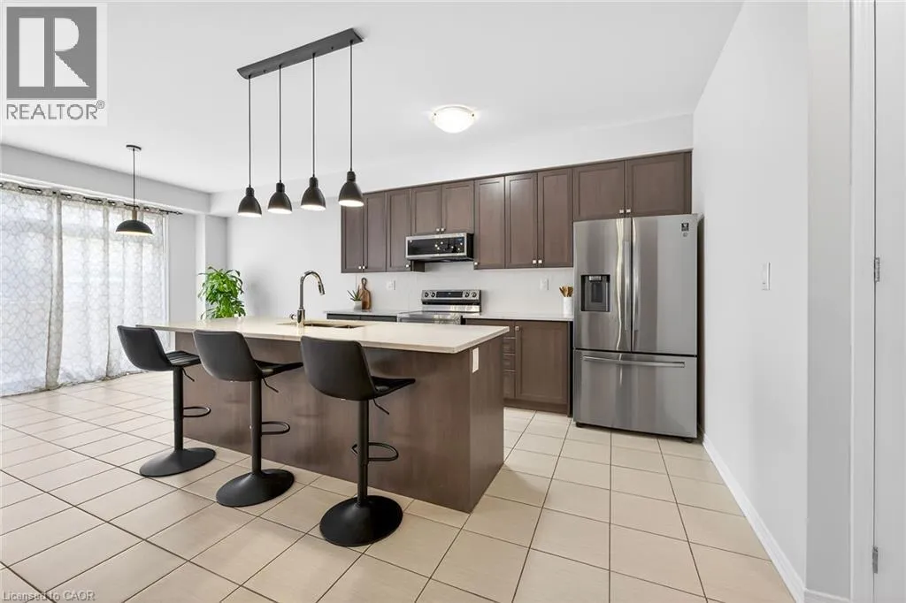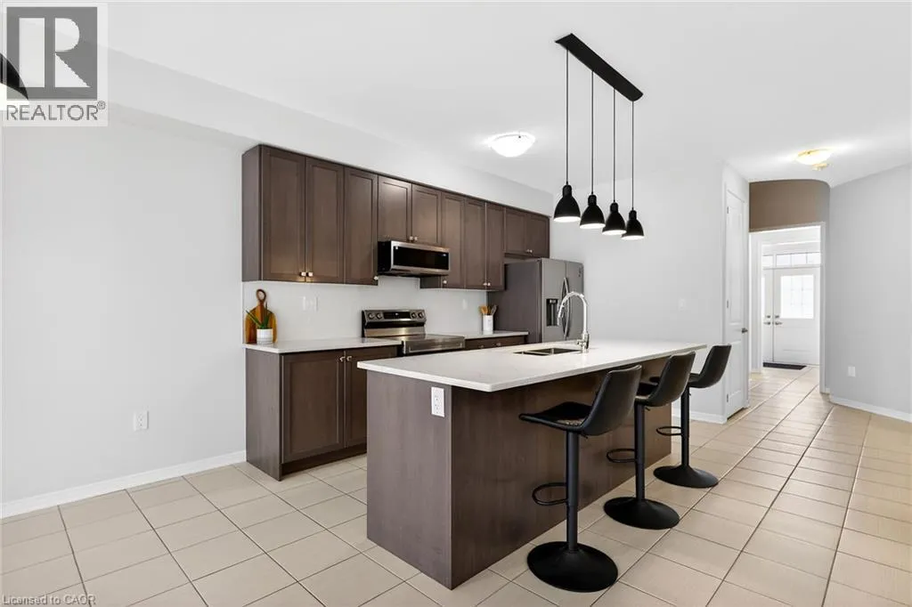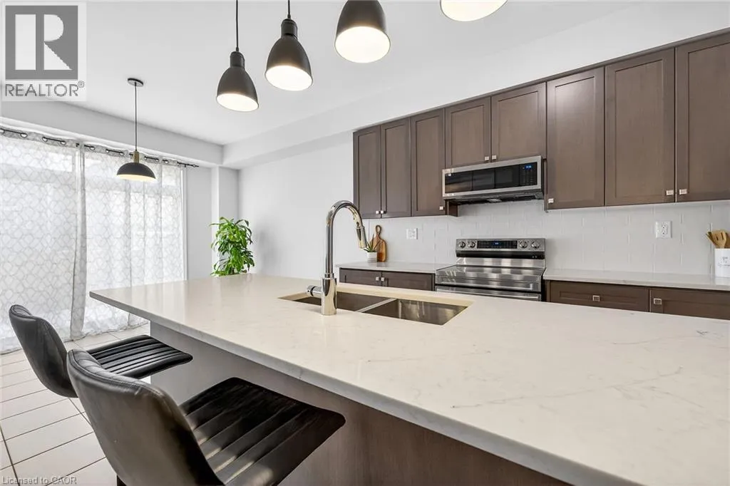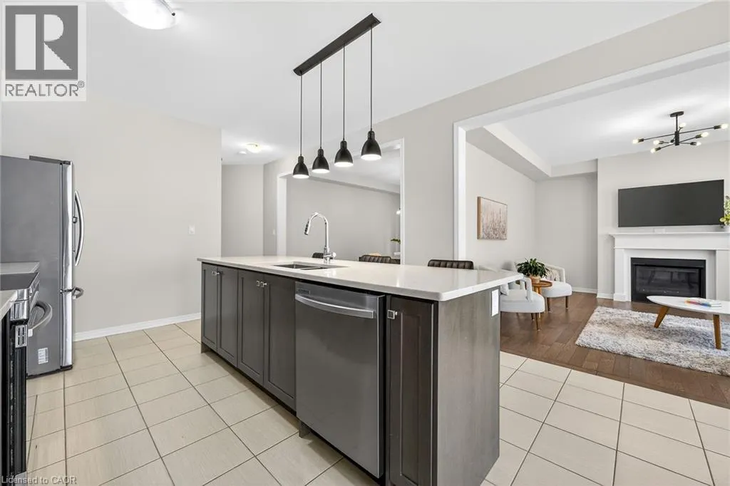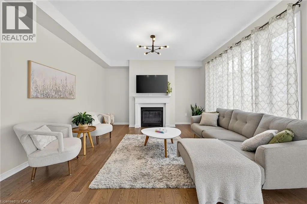 Fletcher Road to Mcwatters Street to Armes Street Welcome to this fabulous upgraded home located in the highly desirable Binbrook community. Offering over 2,400 sq. ft. of above-grade living space, this residence delivers a true upscale feel throughout. The main floor features 9-foot ceilings and a stunning gourmet eat-in kitchen designed to impress, complete with quartz countertops and backsplash, and a large centre island with breakfast bar. The adjoining great room is perfect for entertaining family and friends, highlighted by a gas fireplace and an expansive window overlooking the backyard. Solid oak stairs with wrought iron pickets lead to the second level, which offers four spacious bedrooms and a convenient upper-level laundry room with a laundry tub. The primary bedroom includes a generous walk-in closet and a beautifully appointed ensuite featuring a separate shower and freestanding tub. The third bedroom enjoys semi-ensuite access, ideal for added convenience. The double-car garage provides direct interior access. This immaculately maintained home has been freshly painted and is truly move-in ready. Ideally situated close to parks, schools, trails, shopping, and everyday amenities, with easy access to major routes. A turnkey opportunity in a growing communityâmove in and enjoy. (id:27476)