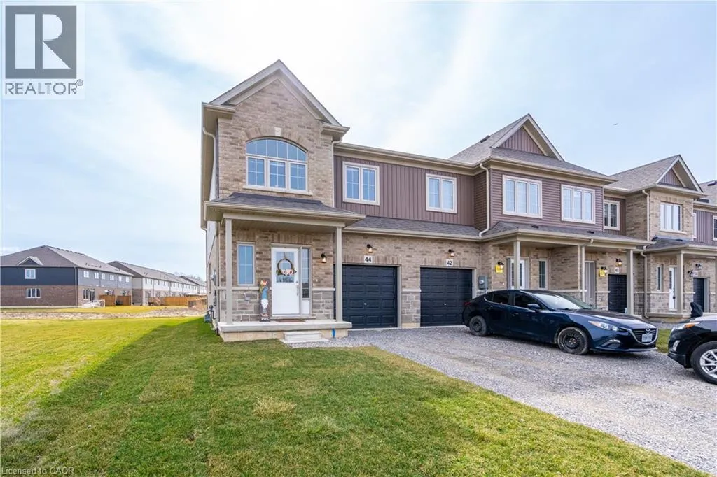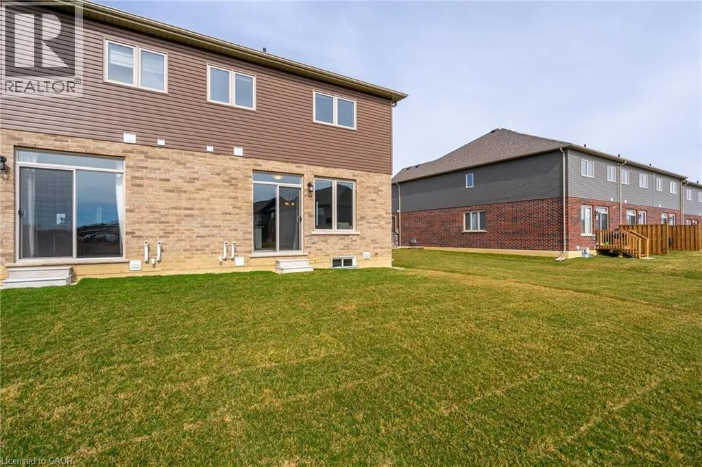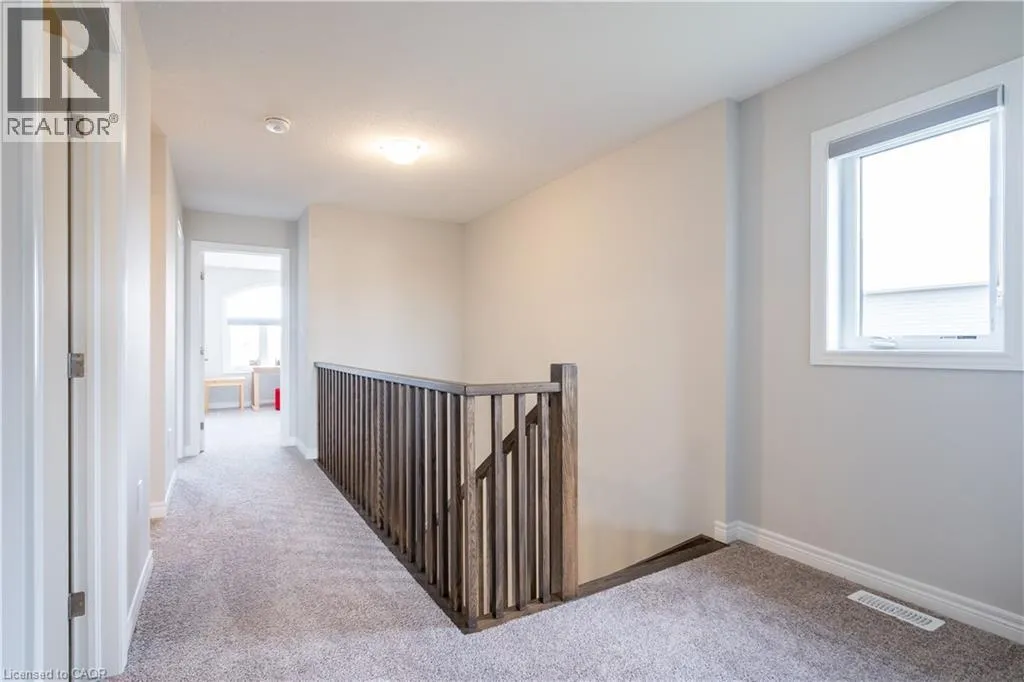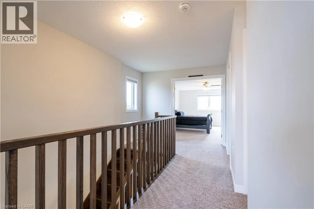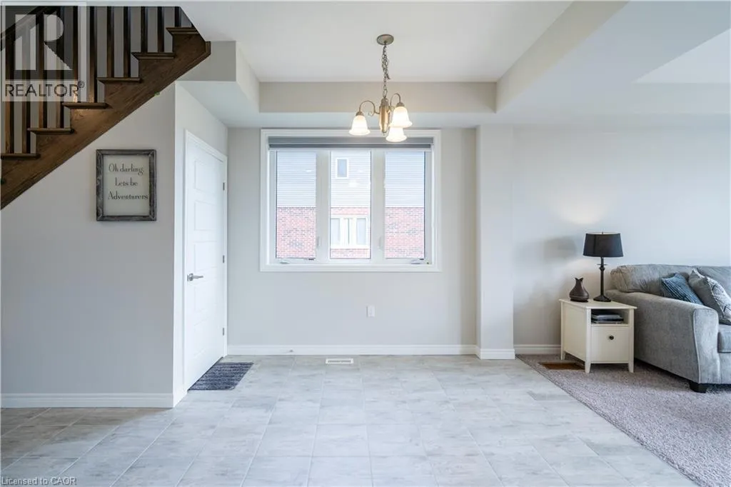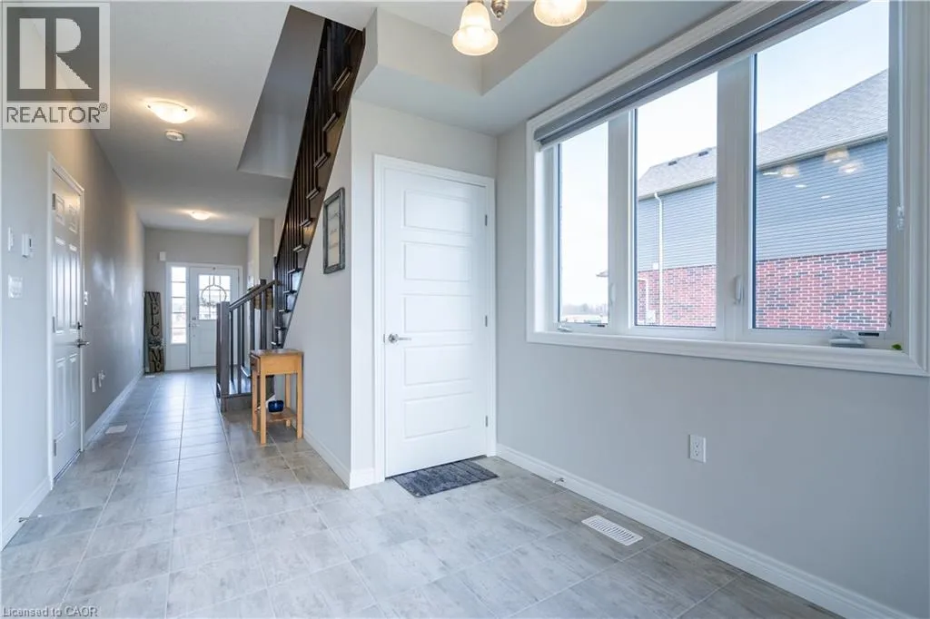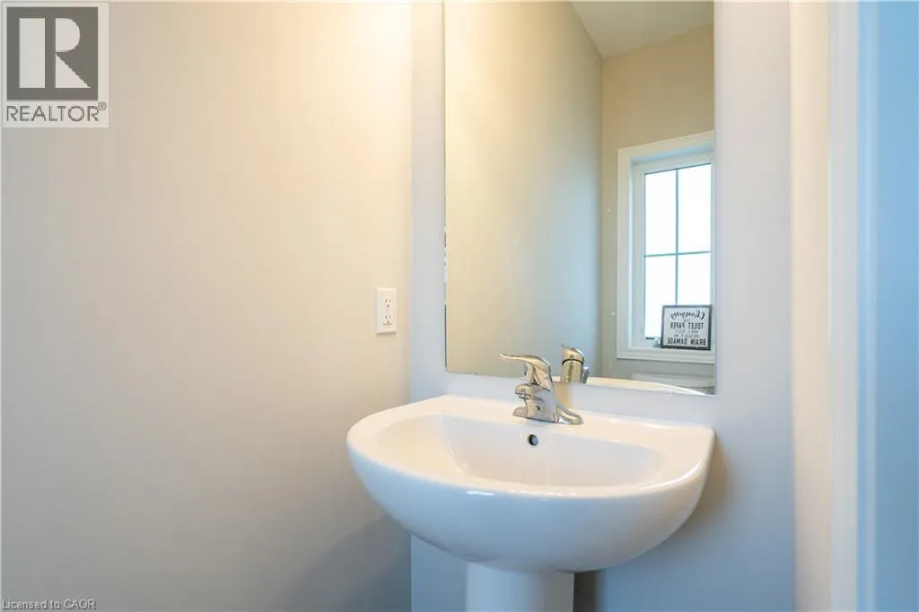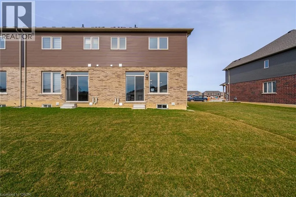 Hwy 56 to Zoe Ln in the Hive community Welcome to this exquisite executive townhome in the beautiful Hive community. This three-bedroom, 2.5-bathroom end unit townhome is available for rent immediately! With over 1750 square feet, this two-storey home boasts numerous upgrades, including quartz countertops, a solid oak staircase, upgraded doors and much more! The upper level features a spacious primary bedroom with a luxurious ensuite. Additionally, there are two generously sized bedrooms, a 4-piece main bathroom, and the convenience of bedroom-level laundry. The unspoiled basement offers ample storage space, and parking is never an issue with an attached one-car garage and one car driveway. Conveniently located within a 2-3 minute walk to Freshco and Binbrook Gym, as well as restaurants, parks, and various amenities. Tenants pay utilities, water heater rental, and HRV rental. Book your showing today! The backyard has been fenced, and the driveway has asphalt (not seen in photos, photos are before current tenant moved in. (id:27476)