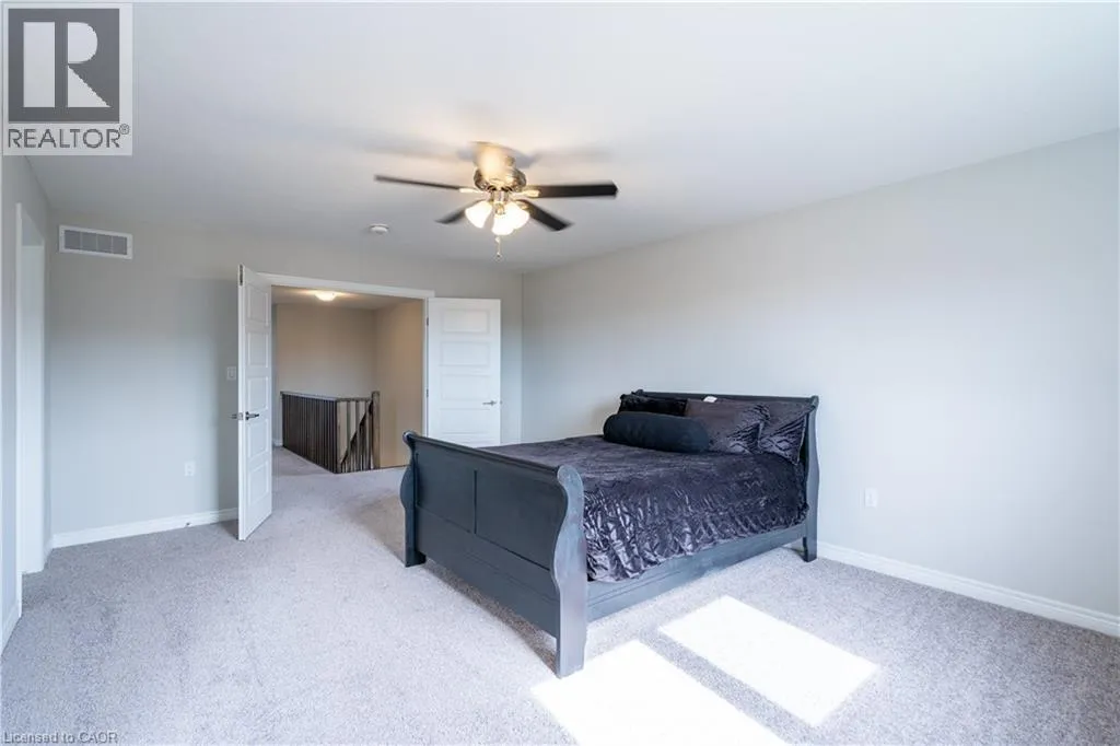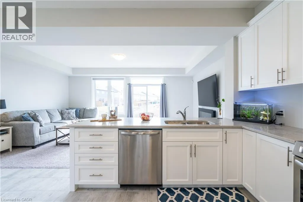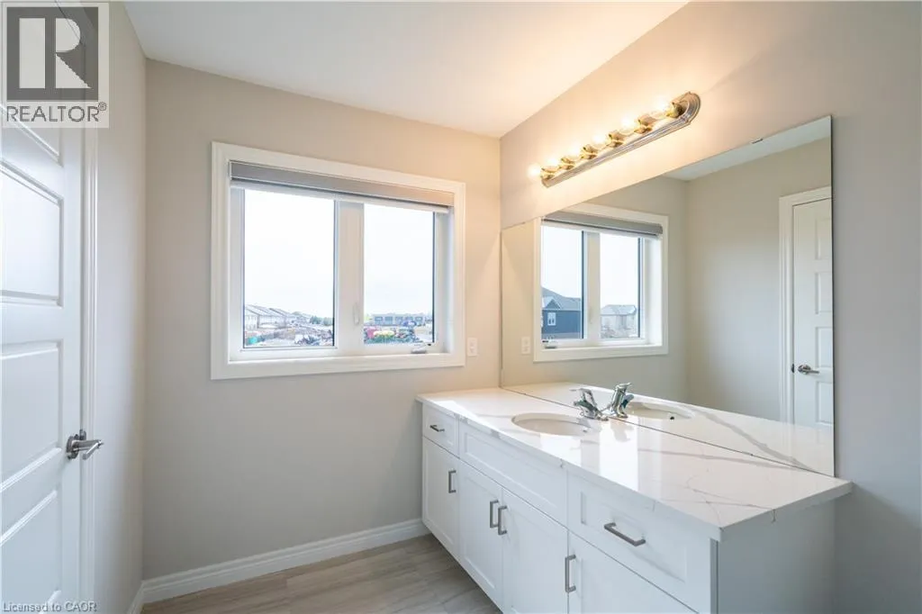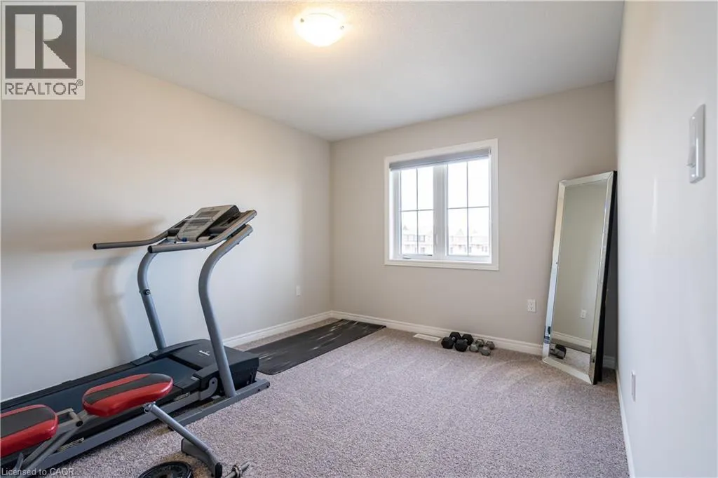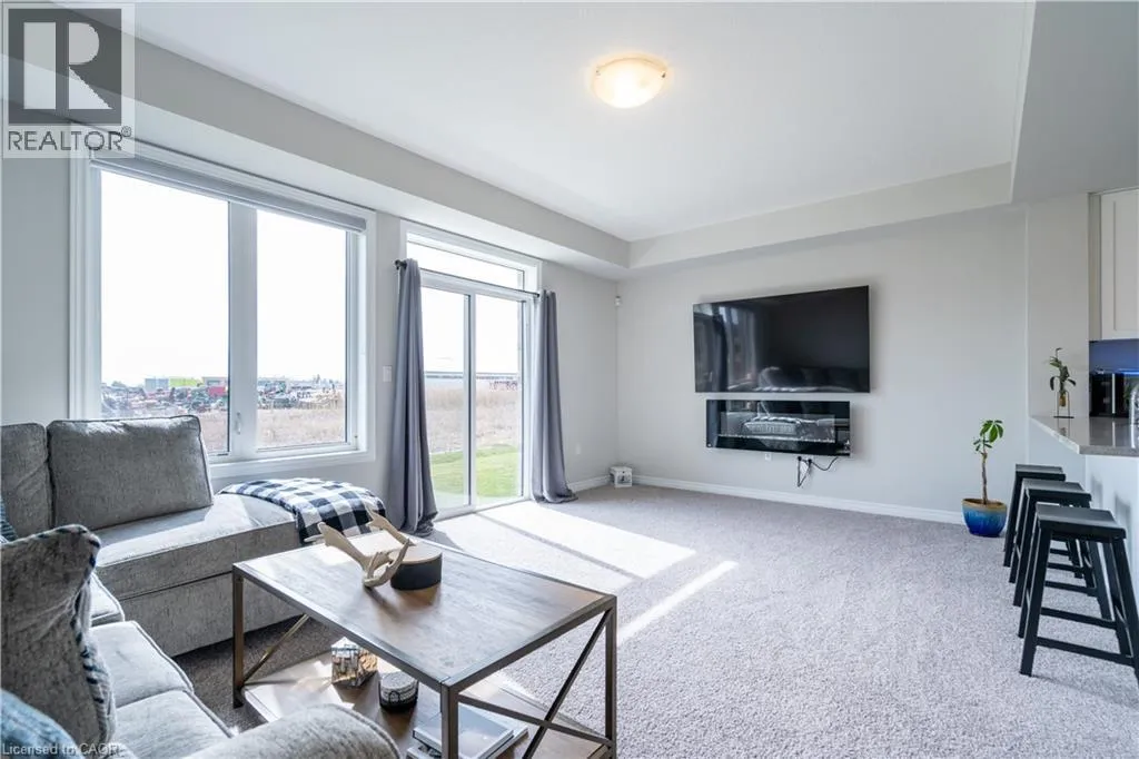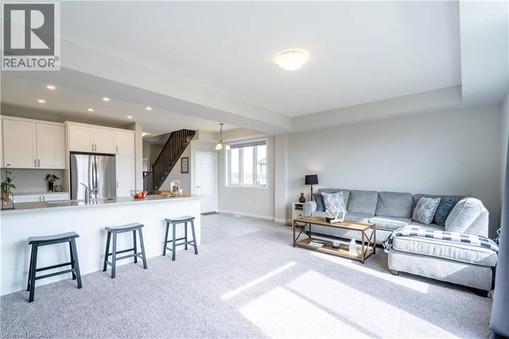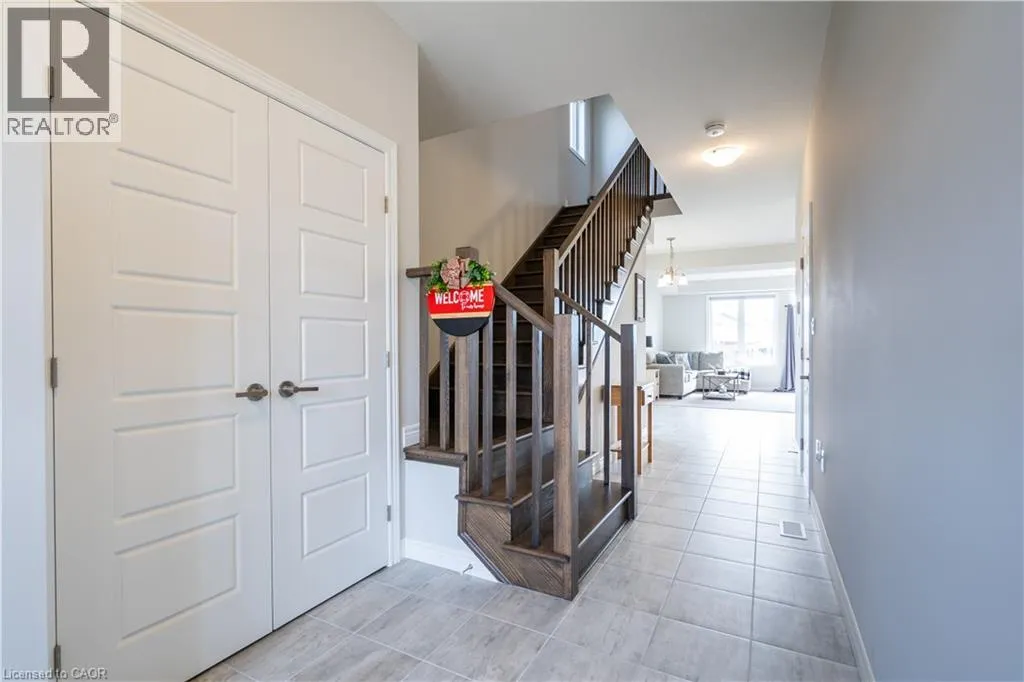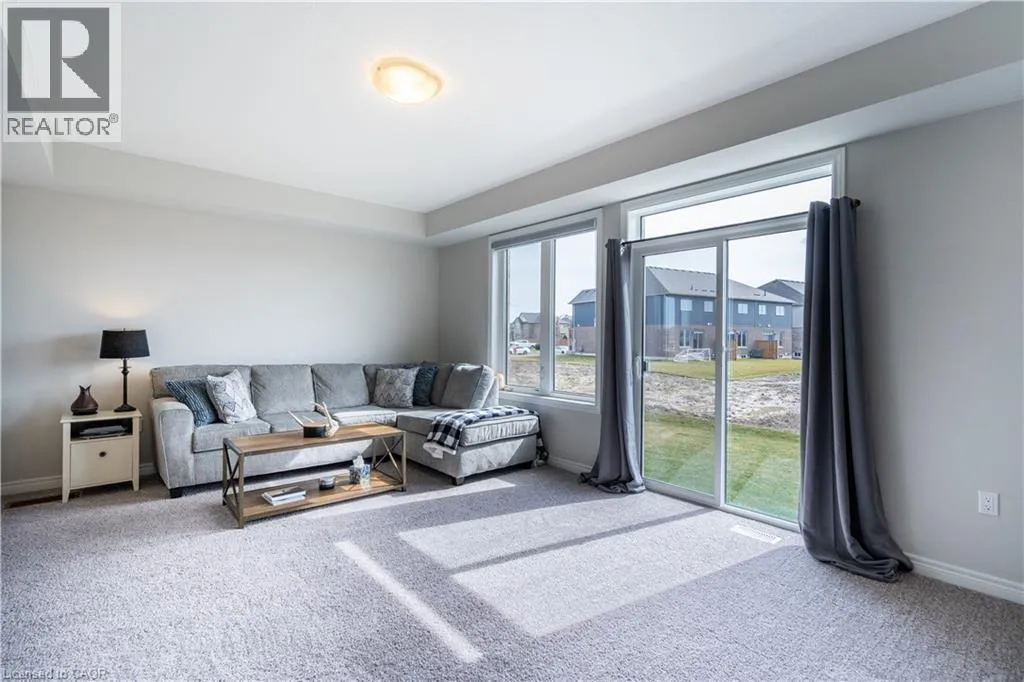 Hwy 56 to Zoe Ln in the Hive community Welcome to this exquisite executive townhome in the beautiful Hive community. This three-bedroom, 2.5-bathroom end unit townhome is available for rent immediately! With over 1750 square feet, this two-storey home boasts numerous upgrades, including quartz countertops, a solid oak staircase, upgraded doors and much more! The upper level features a spacious primary bedroom with a luxurious ensuite. Additionally, there are two generously sized bedrooms, a 4-piece main bathroom, and the convenience of bedroom-level laundry. The unspoiled basement offers ample storage space, and parking is never an issue with an attached one-car garage and one car driveway. Conveniently located within a 2-3 minute walk to Freshco and Binbrook Gym, as well as restaurants, parks, and various amenities. Tenants pay utilities, water heater rental, and HRV rental. Book your showing today! The backyard has been fenced, and the driveway has asphalt (not seen in photos, photos are before current tenant moved in. (id:27476)