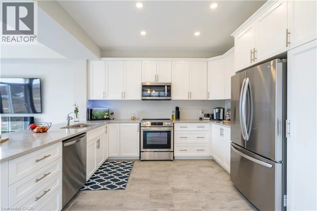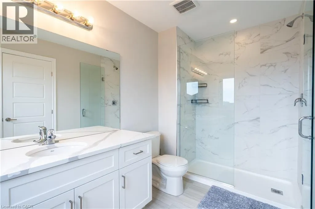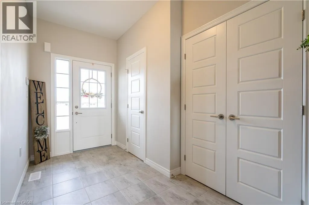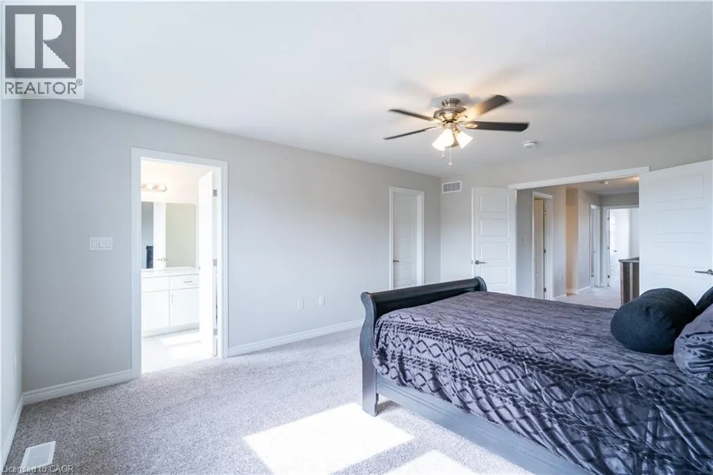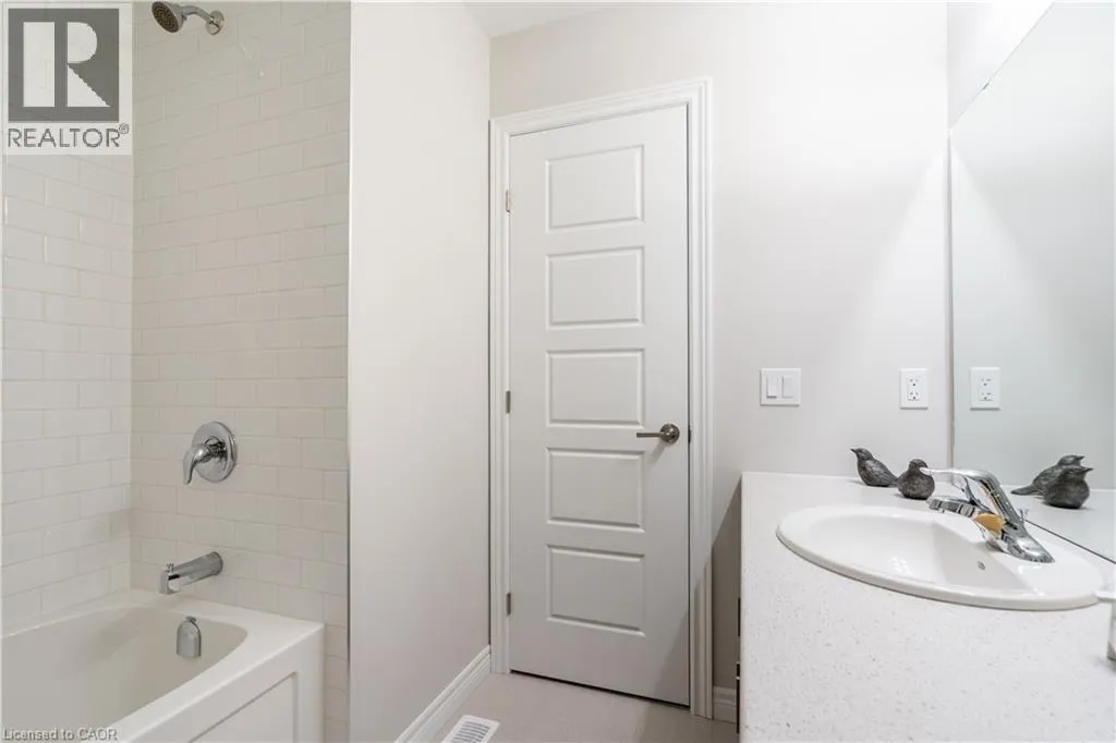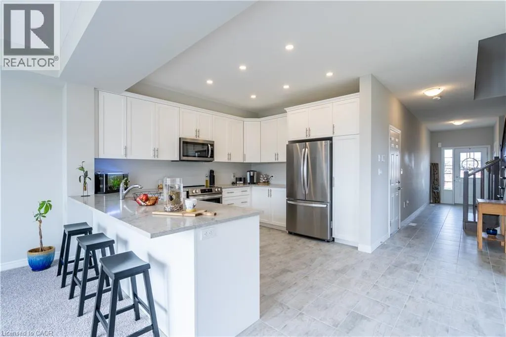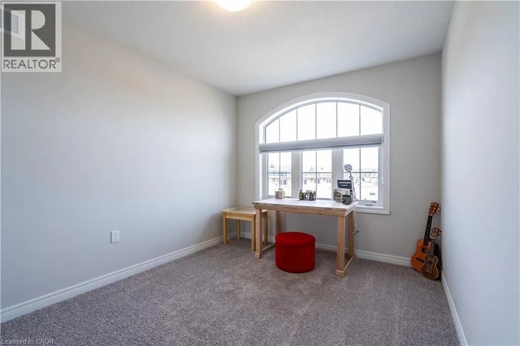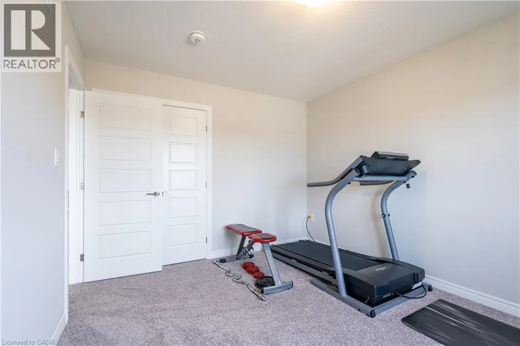Hwy 56 to Zoe Ln in the Hive community Welcome to this exquisite executive townhome in the beautiful Hive community. This three-bedroom, 2.5-bathroom end unit townhome is available for rent immediately! With over 1750 square feet, this two-storey home boasts numerous upgrades, including quartz countertops, a solid oak staircase, upgraded doors and much more! The upper level features a spacious primary bedroom with a luxurious ensuite. Additionally, there are two generously sized bedrooms, a 4-piece main bathroom, and the convenience of bedroom-level laundry. The unspoiled basement offers ample storage space, and parking is never an issue with an attached one-car garage and one car driveway. Conveniently located within a 2-3 minute walk to Freshco and Binbrook Gym, as well as restaurants, parks, and various amenities. Tenants pay utilities, water heater rental, and HRV rental. Book your showing today! The backyard has been fenced, and the driveway has asphalt (not seen in photos, photos are before current tenant moved in. (id:27476)