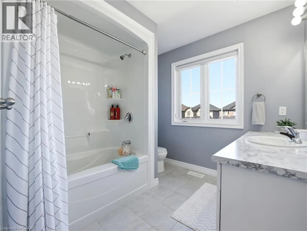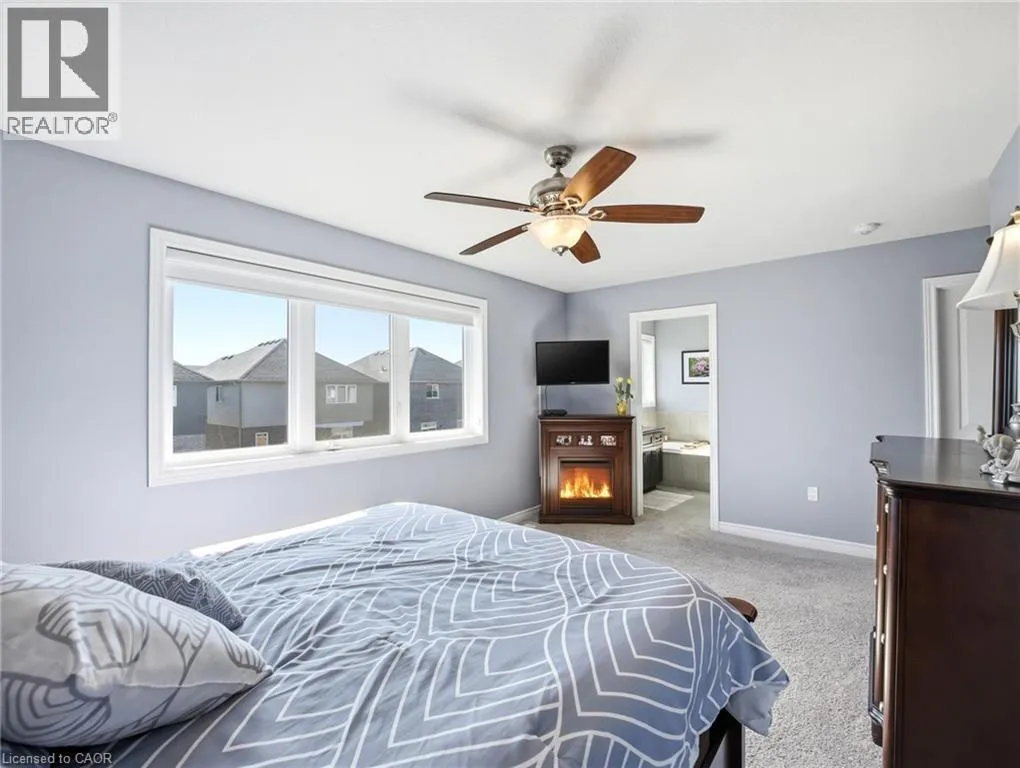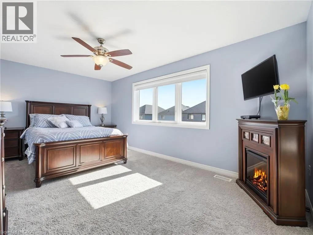 West on Fall Fair Way from Hwy 56, right on Daw Ave, left on Festival Way Stunning 4 bed, 3 bath detached home built only in 2020 by reputable John Bruce Homes! Offering ~2,000 sq. ft. of above grade living space with tasteful finishes designed for modern family living. From the moment you arrive, the home impresses with its upgraded elevation featuring contemporary stucco and stone finishes, a new asphalt driveway with interlocking stone and exceptional curb appeal. Step inside to discover an open and spacious main floor, abundant in natural light with 9-ft ceilings, engineered hardwood flooring, and pot lights throughout - creating a warm and inviting atmosphere. The living room is the perfect place to gather, highlighted by a cozy gas-powered fireplace. The well-appointed kitchen blends style and function with upgraded floor tiles, corner cabinetry with cupboard valences, an over-the-range microwave, ample counter space and a convenient breakfast bar ideal for casual dining or entertaining. Upstairs, you will find four generously sized bedrooms; three feature walk-in closets for exceptional storage. Two full bathrooms, including a 4-pce main bathroom and a spacious 4-pce primary ensuite with a relaxing soaker tub and a glass shower, create the perfect retreat at the end of the day. Added convenience of upstairs laundry. The unspoiled basement with upgraded windows offers endless potential and awaits your finishing touches. Outside, enjoy a large fully fenced backyard perfect for entertaining, family gatherings, or relaxing evenings outdoors. Situated on one of the best streets to live on in Binbrook, this home is located in a peaceful, family-friendly neighbourhood just minutes from schools, parks, and shopping, making it an exceptional opportunity you wonât want to miss! (id:27476)