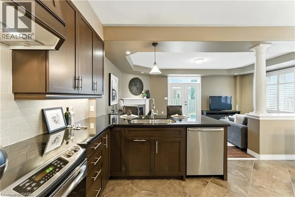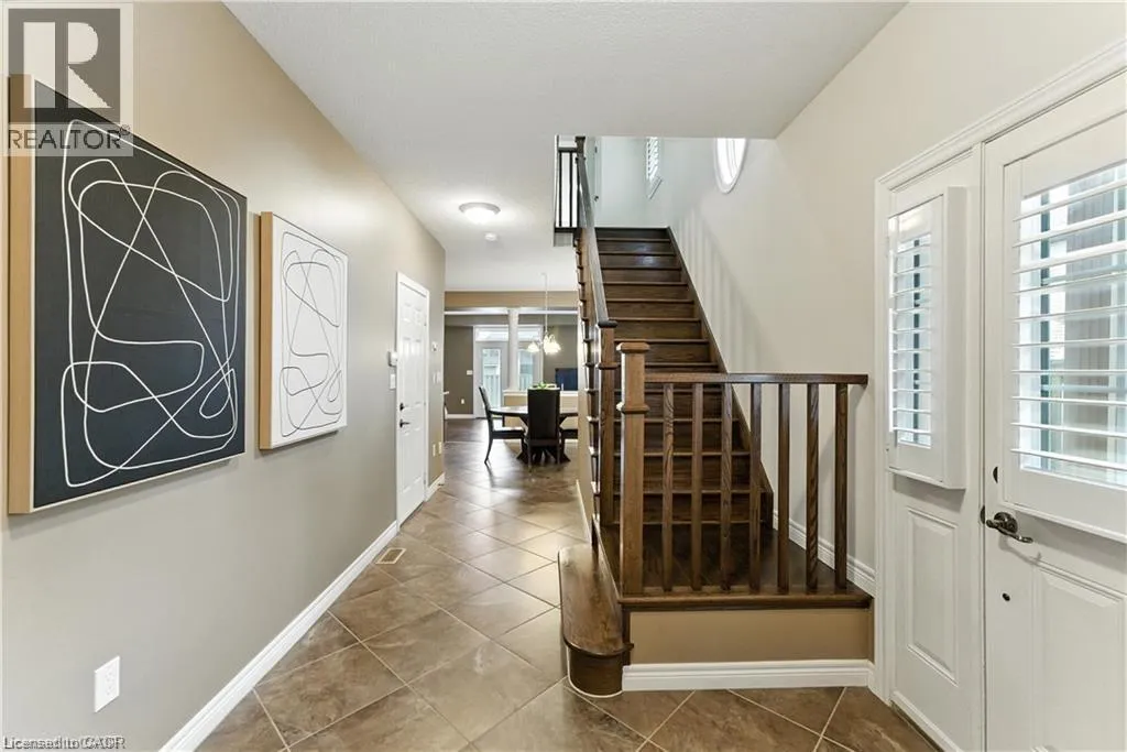 Hwy 56 to Fall Fair Way Welcome to this spacious 3 bedroom, 2.5 bathroom end-unit townhouse located in the heart of Binbrook, built in 2011 by John Bruce Robinson Construction, a builder known for quality and craftsmanship. Lovingly cared for by the original owner and in pristine condition, this home is move-in ready and truly stands out. This end unit has an oversized lot, perfect for outdoor entertaining, kids, or pets. The open-concept main level is stylish and inviting, featuring, 9ft ceilings, a beautiful kitchen with granite countertops, ceiling-height cabinets, and a breakfast bar. The large kitchen is open to a separate dining room. The French doors from the living room lead to the backyard, seamlessly blending indoor and outdoor living. Stylish hardwood flooring in the living room, hardwood stairs and California shutters on most windows and doors add to the homes elegance and functionality. Upstairs, you'll find three generously sized bedrooms, including a primary suite with walk-in closet and ensuite bath. A full basement provides plenty of potential for additional living space or storage. With its end-unit privacy, oversized yard, pristine condition, quality upgrades, and long-term original ownership, this home is a rare find in a family-friendly neighbourhood close to parks, schools, and all of Binbrook's amenities. (id:27476)