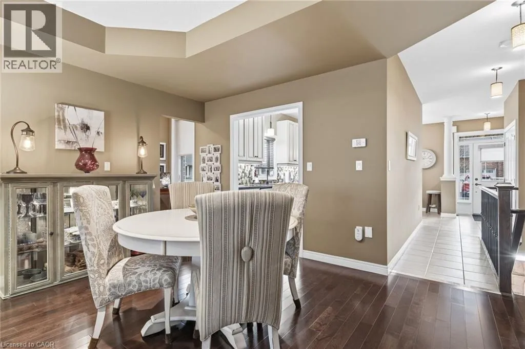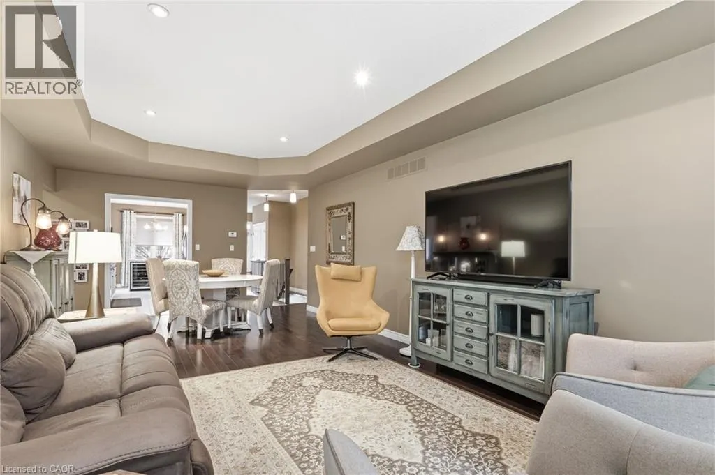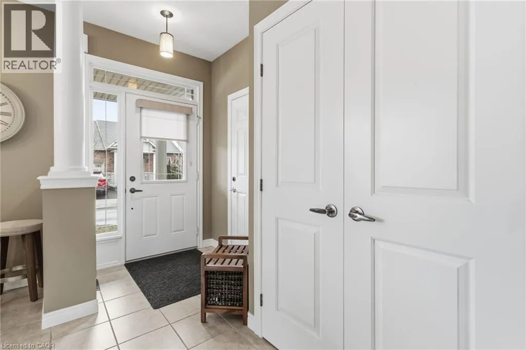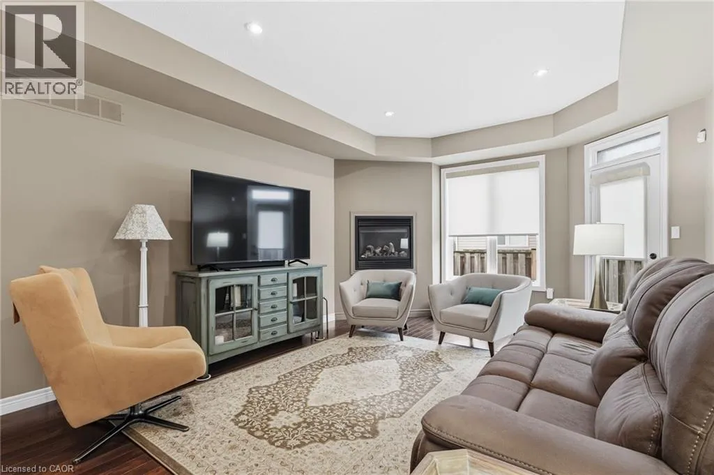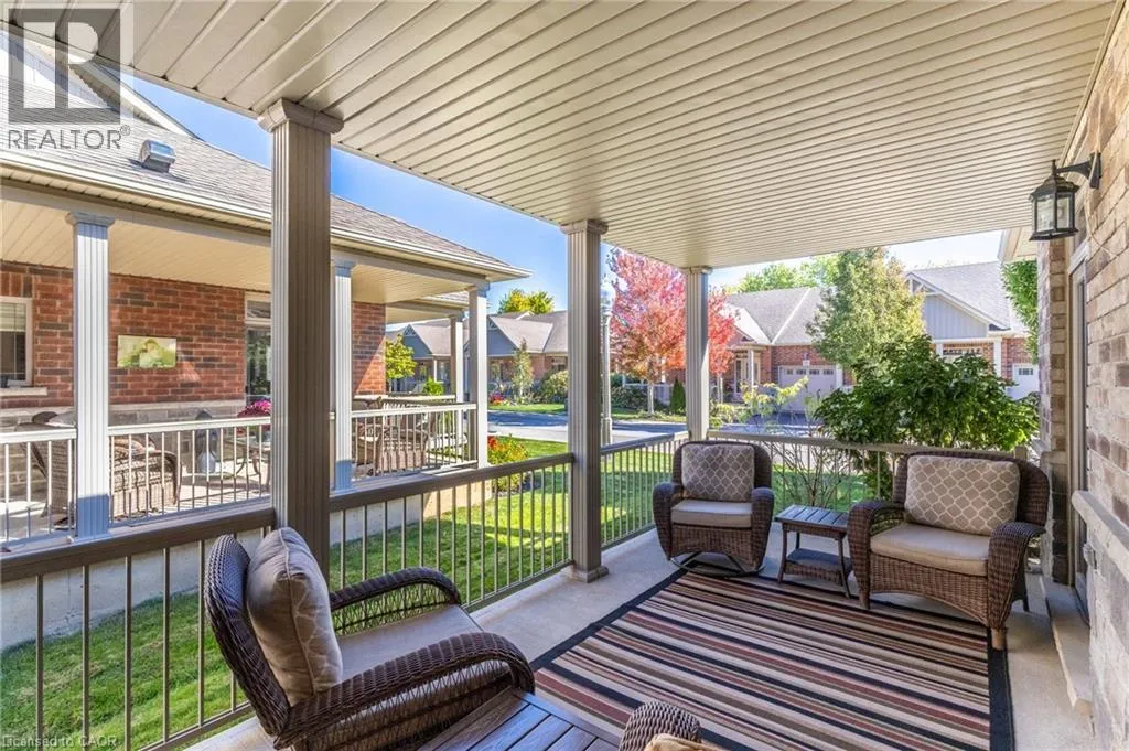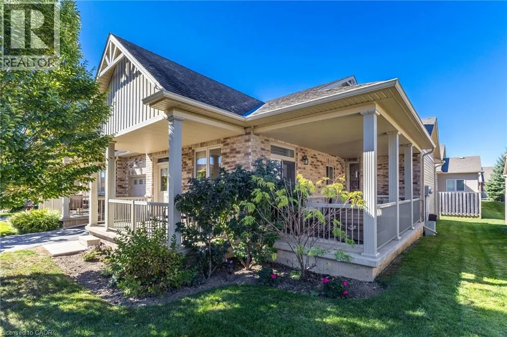 Highway 56 to west on Fall Fair Way, north on Gaddye, west side. Welcome to Unit 7 at 7 Gaddye Lane in the sought-after Binbrook Heights adult-lifestyle community. This rare âSugar Mapleâ bungalow townhome by respected builder John Bruce Robinson offers effortless, low-maintenance living with comfort and style throughout. An inside-entry garage adds everyday convenience and winter ease. The bright, spacious living room features warm hardwood flooring, a cozy corner gas fireplace, and walkout access to the yardâperfect for relaxing or entertaining. The sun-filled dinette flows into a beautifully updated galley kitchen with quartz countertops, stylish backsplash, undermount lighting, and upgraded cabinetry. As an attractive end unit, enjoy added privacy and a generous covered side porch (approx. 21' x 7') off the kitchenâideal for morning coffee or summer dining. The primary bedroom offers double closets and a 4-piece ensuite, while a second bedroom accommodates guests or family. Main-floor laundry enhances convenience. Outside, unwind in a private, low-maintenance yard with patio and landscaped surroundings, plus a covered front porch for added outdoor enjoyment. The unfinished lower level with rough-in bath provides excellent potential for future customization. Exterior maintenance services support a carefree lifestyle. Located in the heart of Binbrook, residents enjoy access to parks, trails, local shops, community amenities, and nearby Binbrook Conservation Area and Lake Niapenco where swimming, kayaking, paddle-boarding, fishing can be your loved hobbies. The community features parks, greenspaces, playgrounds, local shops, the Binbrook Community Centre, library, theatre group, farmersâ market, and the annual Binbrook Fall Fair. Experience the perfect blend of small-town charm, natural beauty, and easy access to Hamiltonâan exceptional place to call home. (id:27476)