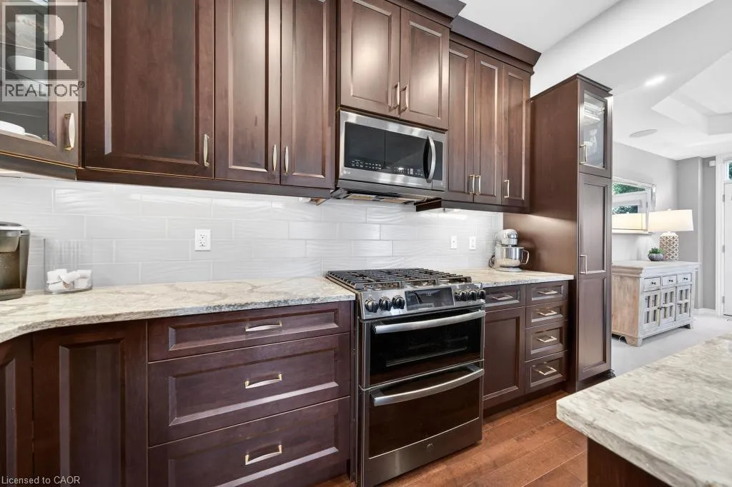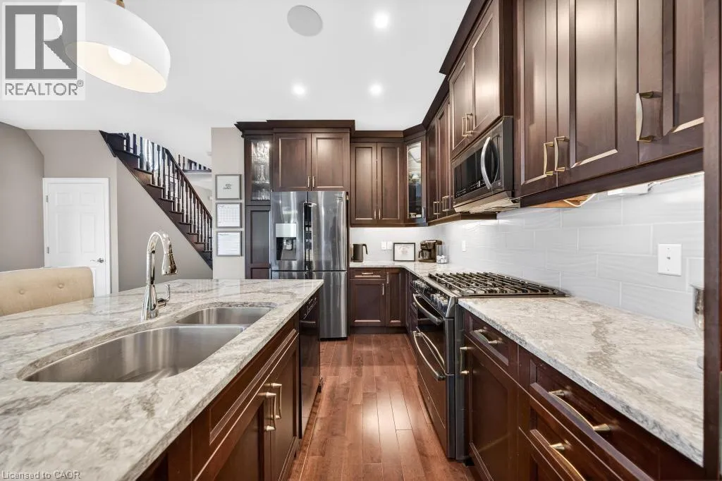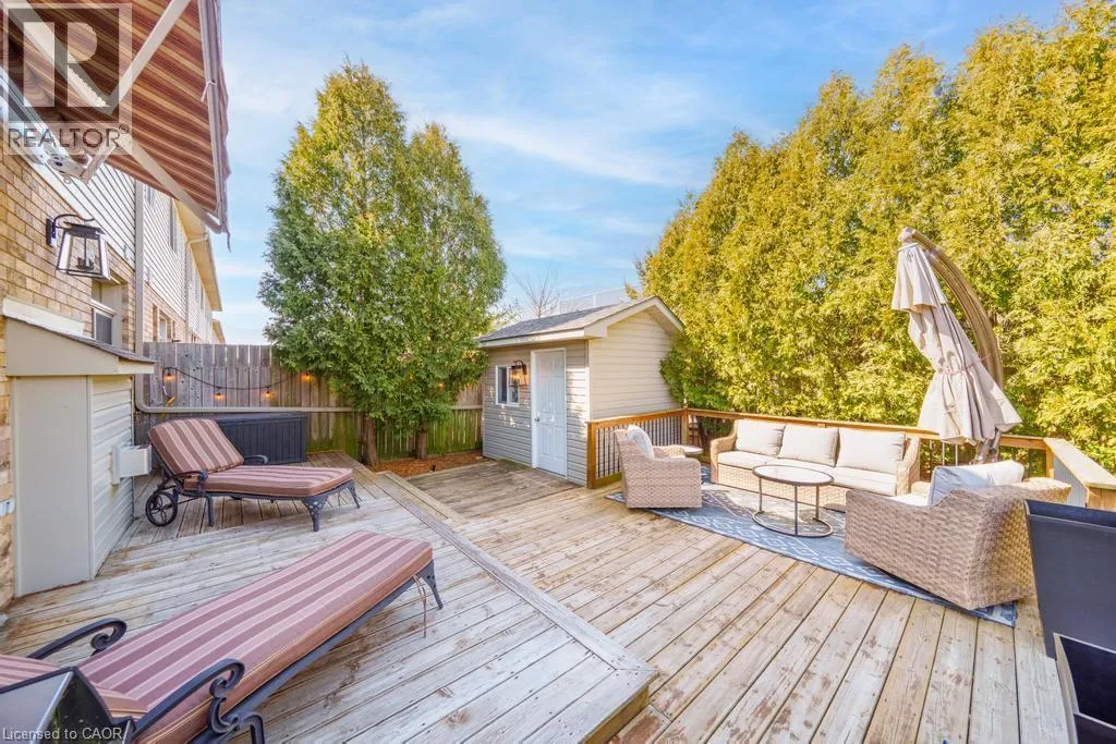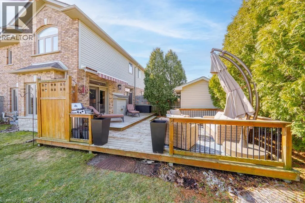 MAGGIE JOHNSON DRIVE TO SOUTH ON TANGLEWOOD DRIVE. Welcome to 173 Tanglewood Drive! This incredible fully freehold, end unit executive townhome is as nice as they come. Starting outside, the home sits across the street from Jackson Heights Park which is fantastic for families, and your view each morning will be relaxing green space and trees! The main level is open, bright and welcoming and features a large entry foyer, 2 piece bath, and inside entry from the garage. Your family will love spending time on this level, particularly in the kitchen with its full height maple cabinets, high end appliances, gas stove, and custom island ordained with Cambria Quartz!!! A separate dining area and sizable family room finish off the main floor, and offer bright windows and 2 sets of french doors to access the private deck and large yard portion. The upstairs boasts 3 bedrooms, one of which is currently being used as a flex room/office, and can be converted to a third bedroom professionally for the new Buyers if desired prior to closing. The Primary bedroom is substantial and features a large jacuzzi tub, and ample closet space. Other features include a large second full bath on this level, and a good sized upstairs laundry. The basement has tremendous potential, and offers a bathroom rough in, and sensible location of furnace/ laundry sink and water heater to accommodate future renovation layout. Other of the numerous features include a full home NUVO Built in speaker system, rainbird irrigation system, telus security system, owned hot water tank, furnace 2018, shed shingles 2026, eavestroughs 2025, gas line to bbq and all appliances 2018! There is nothing left to do here except move in and enjoy! Come see this beautiful home today, and see if it could offer you and your family the Happily Ever After you've always dreamed of! (id:27476)
