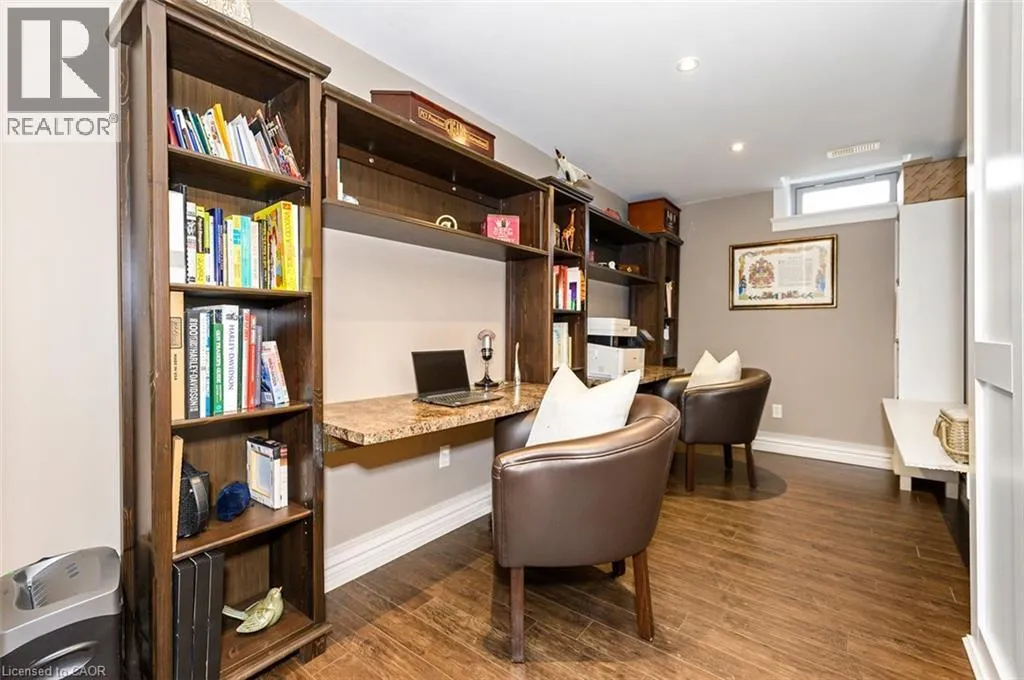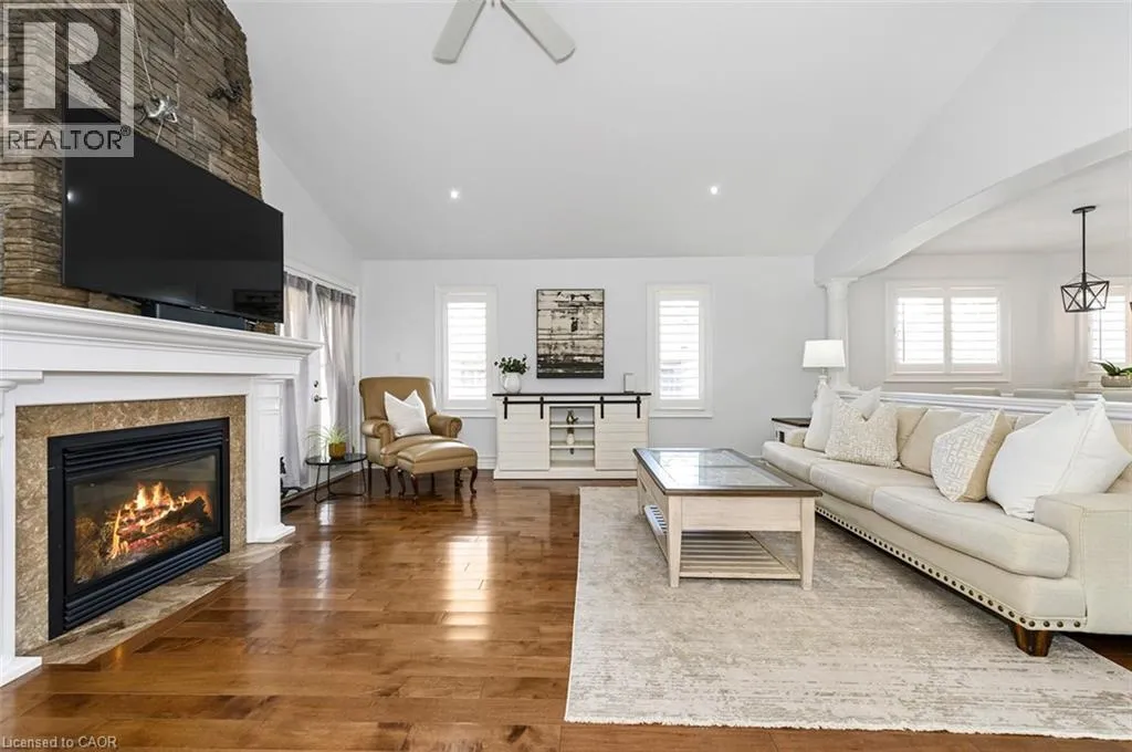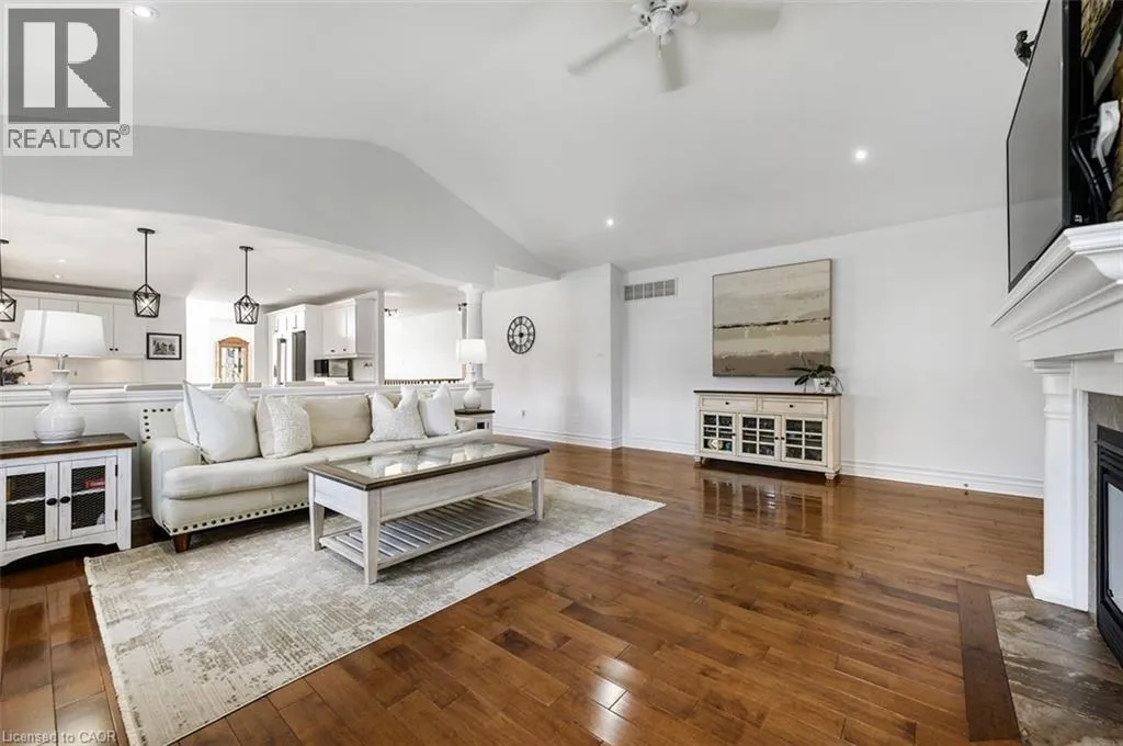 Rare offering of an absolutely gorgeous, impeccably maintained sprawling bungalow with a double car garage and parking for an additional 4 vehicles in the driveway. Set on beautifully landscaped grounds featuring thoughtful hardscaping, an in-ground sprinkler system, and exceptional curb appeal. Offering over 3500 sq ft of fully finished living space, this impressive home delivers comfort, functionality, and elegance throughout. A spacious entryway welcomes you into the sun-filled vaulted dining area that flows seamlessly into the open-concept kitchen, complete with stainless steel appliances, gas stove, quartz countertops, a large peninsula, and centre island overlooking the grand family room with gas fireplace. French doors lead to a charming gazebo, creating the perfect setting for indoor and outdoor entertaining. The main floor features a spacious primary bedroom with walk-in closet and updated ensuite bathroom with glass shower, along with a second generously sized bedroom, a 4-piece bathroom, and convenient main floor laundry. The fully finished lower level offers excellent additional living space including a large rec room, home office, third bedroom, updated 3-piece bathroom, and a versatile fourth room ideal for a gym, office, or playroom, plus abundant storage throughout. This exceptional home truly has it all inside and out, ideally suited for downsizers, empty nesters, or anyone seeking the ease of one-level living, all set on a quiet, tranquil street close to amenities. (id:27476)