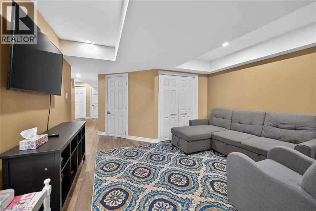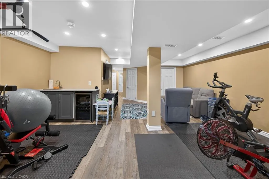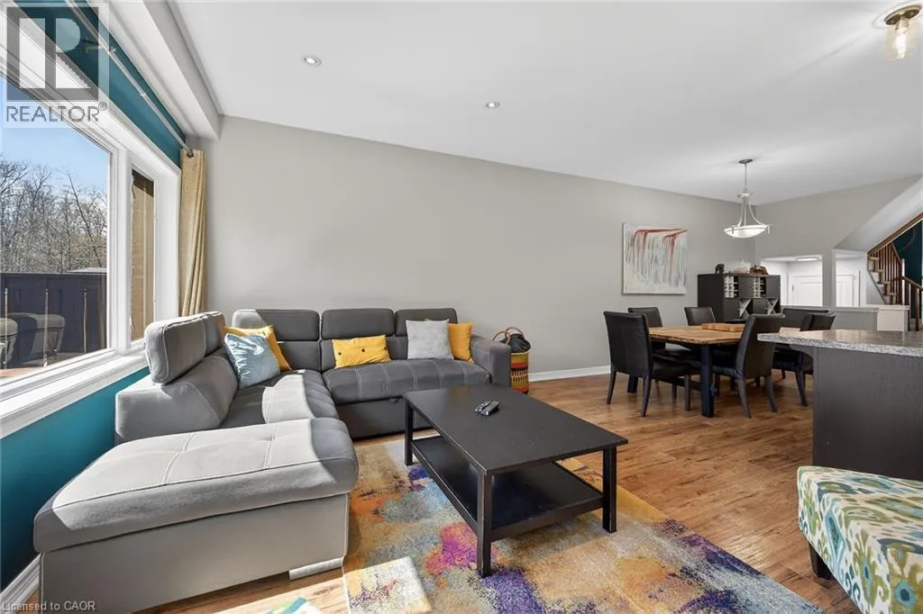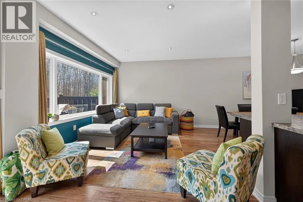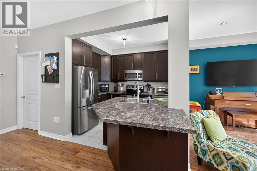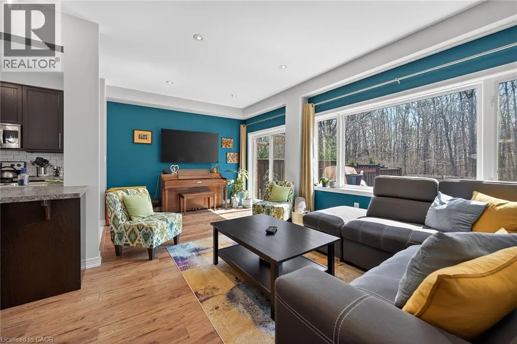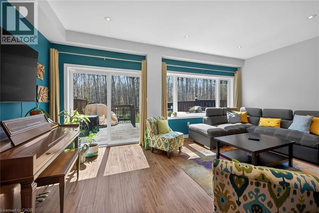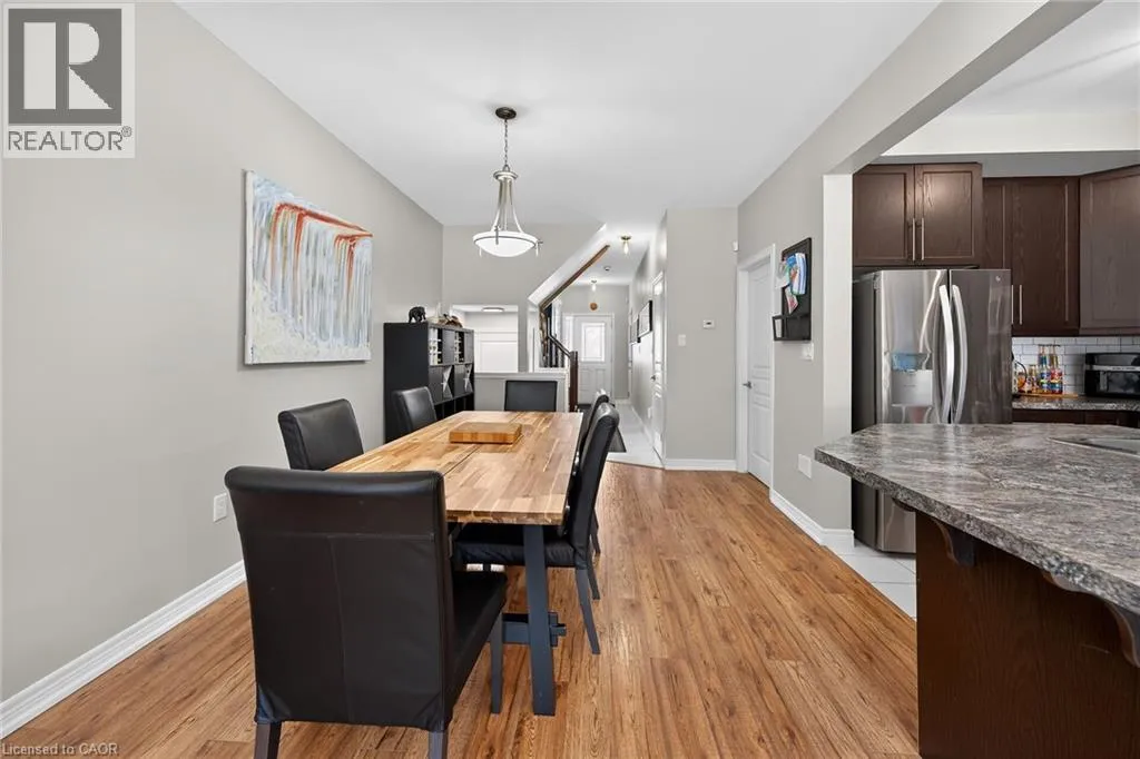Beautifully upgraded 3-bedroom, 4-bathroom townhome with a finished basement and private backyard, located in the heart of Binbrook â a mature, family-friendly community known for its quiet streets, parks, and strong neighborhood feel. Owned by the original owners and well maintained throughout, this home offers a functional and spacious layout ideal for both everyday living and entertaining. The open-concept main floor features seamless flow and access to a fully fenced backyard, perfect for relaxing or hosting guests. The fully finished basement (2023) adds valuable living space, complete with a wet bar, 3-piece bathroom, and ample storage â ideal for a recreation area or extended family use. Step outside to your private backyard backing onto a wooded lot with no rear neighbors, offering peace and privacy. The two-level deck and gas BBQ hookup make it an excellent space for outdoor entertaining. Additional features include commercial-grade laminate flooring, fresh paint throughout, upgraded appliances, main floor laundry, and a large upper-level office space. Conveniently located close to schools, parks, trails, and everyday amenities, this move-in ready home offers a perfect blend of comfort, privacy, and convenience. 3 Bedrooms | 4 Bathrooms | Finished Basement | Private Backyard | Move-In Ready Donât miss this opportunity to own a beautifully maintained home in one of Binbrookâs most desirable communities. (id:27476)