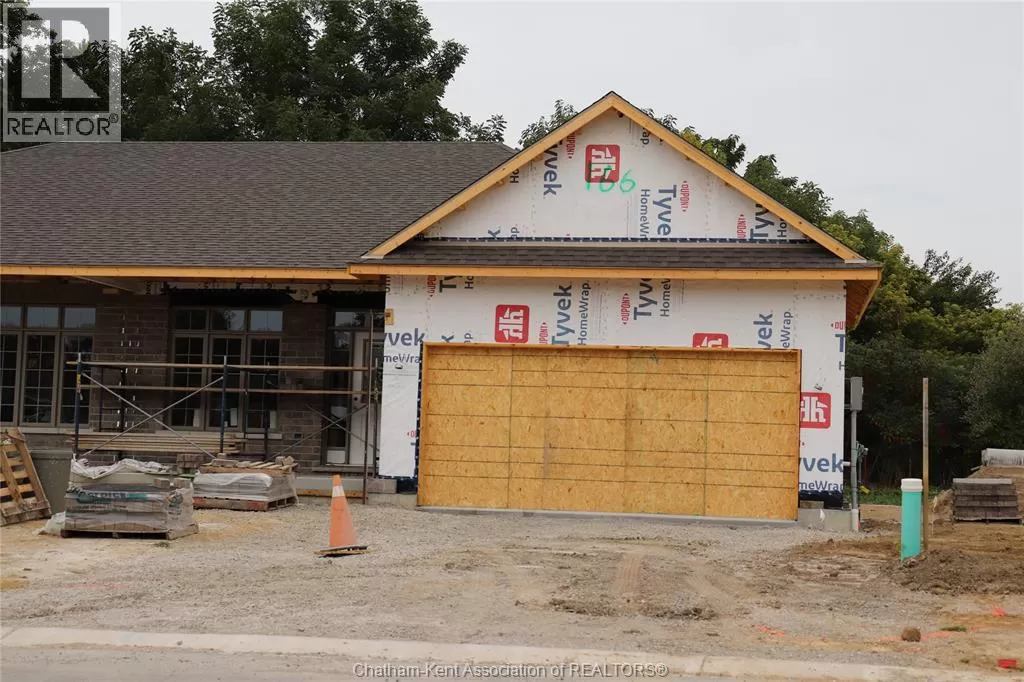 go south on Chatham St South to Lanz Boulevard(between High School and Public School) go east on Lanz Blvd, home on side of Lanz Blvd Under construction at 166 Lanz Boulevard a Ranch style home with a full basement with rough in bath. This home has a large common area including Kitchen, Dining and Living room, including a Primary Bedroom complete with a walk in closet and bath. There is also a 3 piece Bath on main floor. This property backs onto the Harwich Raleigh Public School forested environmental preserve area. This plan is proven for value and comfort for utilities costs and maintenance. Partial Brick with vinyl board and batten exterior. Double car garage, fenced yard and concrete allowance. There is no fixture allowance meaning that all light fixtures, mirrors and bath accessories to be supplied by purchaser to Builder for install. This home has a cabinet, flooring, plumbing and painting allowance in Purchase Price. (id:27476)