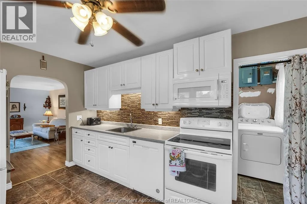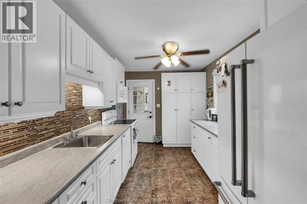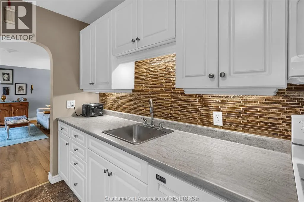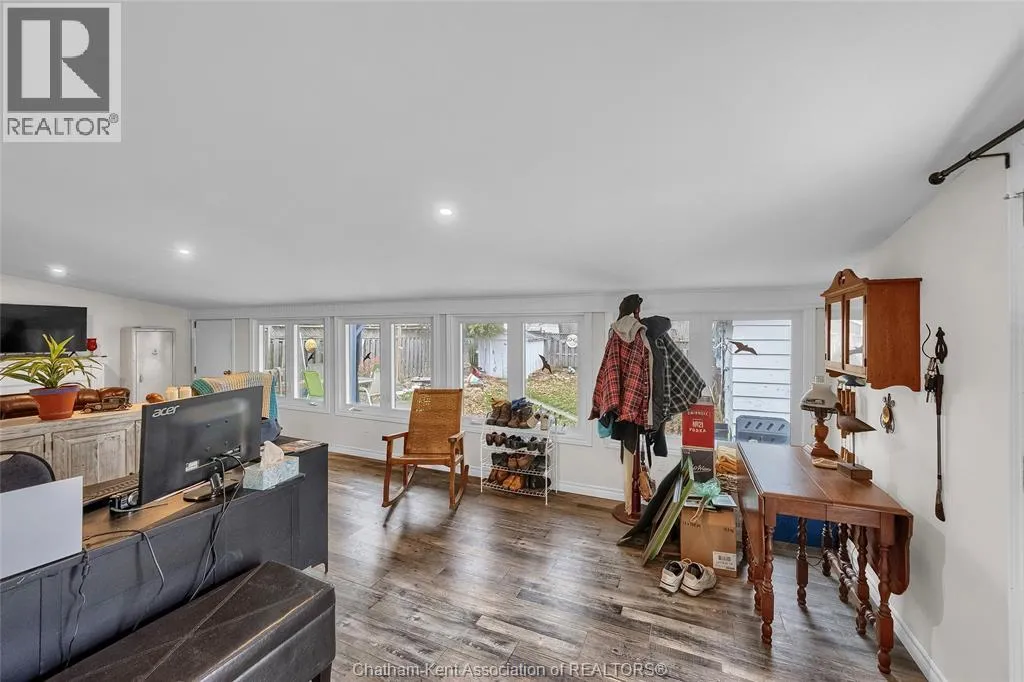 Take Chatham Street South, turn on John Street E, turn south on Elizabeth Street. Property on East side. Comfort, Convenience, and Charm...Experience the best of Blenheim living in this delightful 2-bedroom, 1-bathroom home. Specifically designed for main floor living, this property is the ultimate stress-free choice for a retiree or an excellent entry point for a first-time home buyer. From the moment you arrive, you'll appreciate the extensive list of low-maintenance, worry-free upgrades. These include a concrete drive and updated windows, major mechanical updates (2022): furnace, A/C and humidifier, plus enhanced insulation in the attic (2024). Inside, enjoy a carpet-free environment, an updated kitchen, and a generous open feel between the living and dining areas. Unwind in the large family room addition, at the back of the house with a cozy gas fireplace.  The outdoor space is equally appealing. Enjoy a lovely front wood deck or retreat to your own private oasis in the back. The secluded, partially fenced yard and its serene pond offer a perfect space to relax. Complete with a single detached garage, this home offers superb comfort and convenience in a wonderful community. This home is located in the ""Banana Belt"" that enjoys significantly warmer or milder weather conditions than the region as a whole, particularly in the wintertime. Call now to book a showing and start your new Chapter! (id:27476)