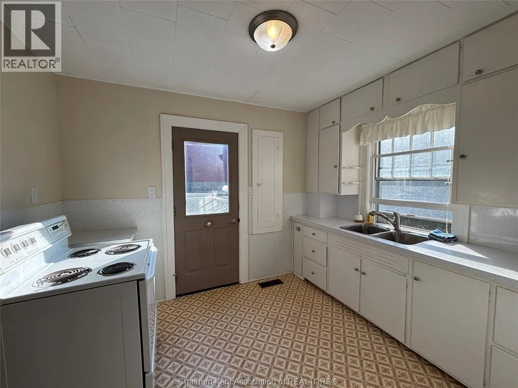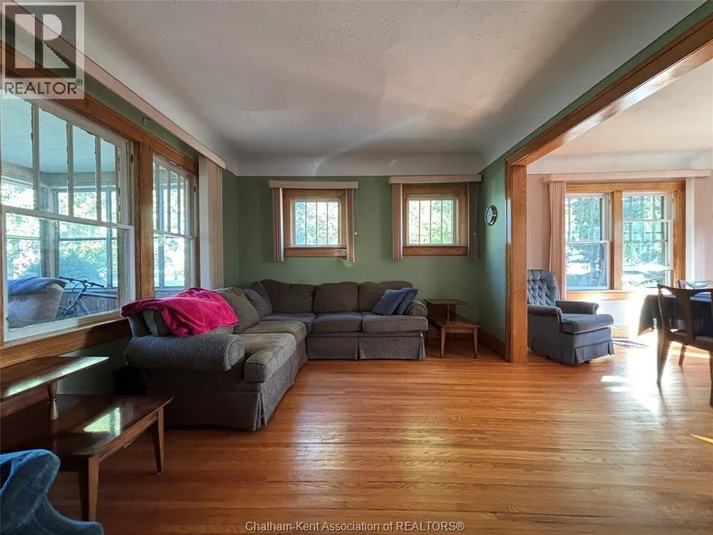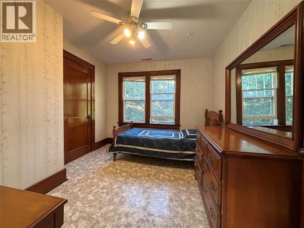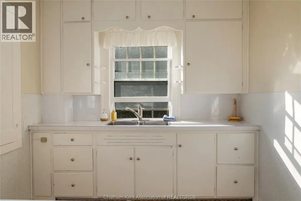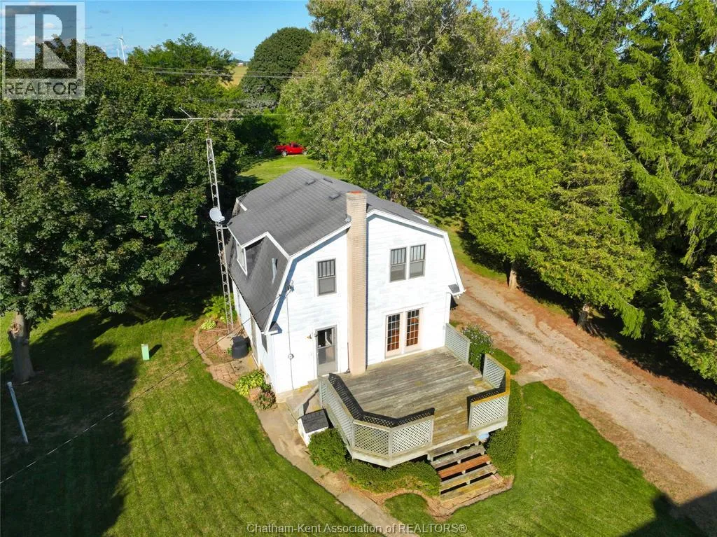 Country living at an affordable price! Just 6 minutes to Erieau and 9 minutes to Blenheim, this charming 3-bedroom, 1-bath home is full of character. Nearly a century old, it features hardwood floors, a beautiful wood staircase, and a welcoming screened-in front porch. All three bedrooms and the bathroom are thoughtfully located on the upper level. The dining room opens to the living room, creating a perfect space for hosting and entertaining. The dining room also features French doors that lead to a deck overlooking the backyard. A spacious unfinished basement provides plenty of storage. This home is set on a lovely lot with mature trees and includes a handy storage shed. This house needs some work but has potential to be the perfect family home. Call or text today to schedule your private viewing. (id:27476)