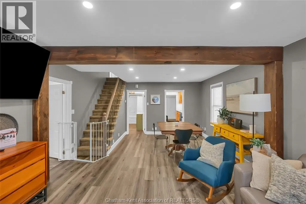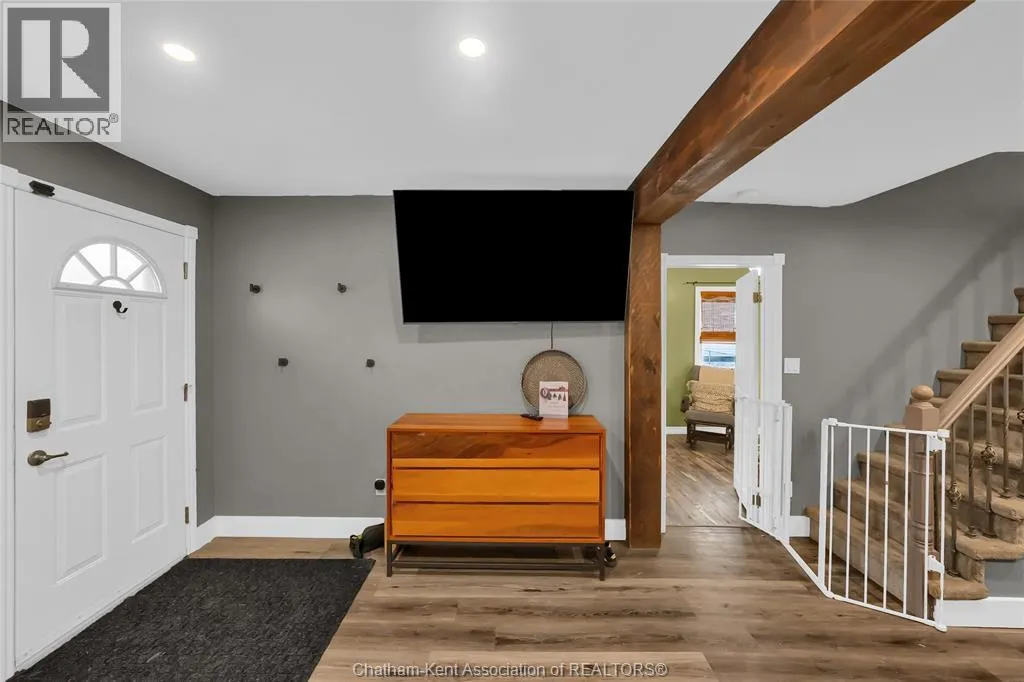 Talbot Street East to Sheldrick Welcome to the perfect home for young families with 3 bedrooms, a 4 piece bathroom, 2 living rooms, a 3 season sunroom, an above ground pool and a workshop! Featuring a cozy living/dining room with wood accents, large windows and vinyl plank flooring, an oak galley kitchen with tons of cabinet space, a main floor bedroom with a dressing area and a triple closet, a spacious updated 4pc bathroom, laundry/utility room with a wash tub, a rear mudroom, a back family room that can also be used as a massive primary bedroom with a walk in closet, and a beautiful sunroom overlooking the fenced back yard. The second floor offers 2 bedrooms with extra deep closets and built-in storage cabinets. Enjoy making summer memories in the above ground pool and tinkering in the workshop with electric heat for year round use! There is also an attached sauna (currently has no heat source) which can be accessed from both inside and outside of the house. Other features include updated forced air gas heating (2020) with central air (2018), all updated electrical, a metal roof, a deep concrete driveway with plenty of space for your vehicles, and a large attic over the family room with pull down stairs to store your seasonal items. The central location in beautiful Blenheim offers quick access to shopping, schools and recreation facilities. Call now to book your viewing! (id:27476)