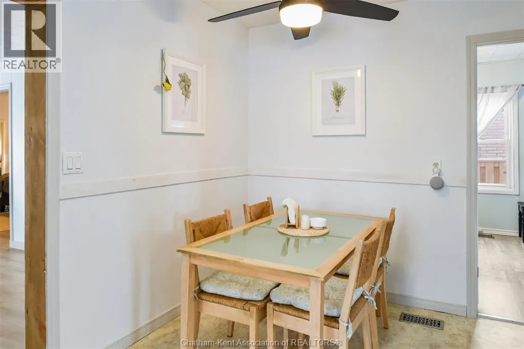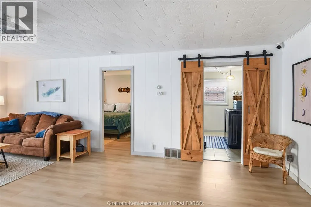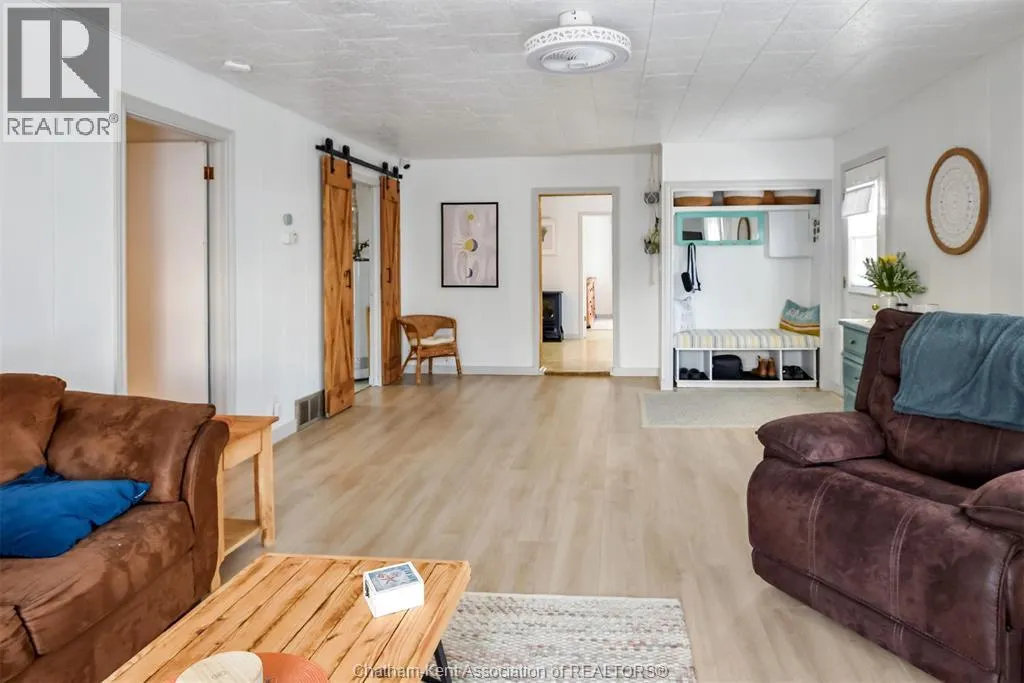 Near the corner of Regent and Parr 129 Parr Street located in the desirable Town of Blenheim offers an excellent starter or retiree home, great lot and location and convenient one floor living. Larger than it looks at 1179 square feet, this home is a must to view. Large living room is nice and bright with patio door access to rear yard and deck. Spacious primary bedroom with full wall of closets, 2nd bedroom is located off the living room and the possibility of a 3rd bedroom if needed from the kitchen area or would be a terrific office space. Separate laundry/pantry and utility area with barn door adds to the character and decor. Eat-in kitchen with white cabinets, dishwasher, 3 pc bath with walk-in shower is nicely updated. Modern decor with fresh colours, new flooring and overall simply put - this a very warm, bright and comfortable home. The site has a concrete drive, large wooden deck across the rear of the home, fenced yard, shed and an awesome sitting area for fall and summer. The neighourhood is well maintained and the location provides for handy proximity to local schools, rec centre, and walking uptown. Forced air gas furnace, central air, hydro breaker panel, vinyl siding and windows, (spray foam insulation 2024 attic and crawl) All features combined, this home really does have plenty to offer and has a great feel inside and out. (id:27476)