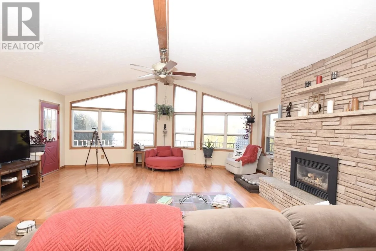 Hwy 17 at Blind River to Woodward Avenue A spacious riverfront retreat with over 3,300 sf living space on the Blind River and in town on all municipal services awaits your enjoyment! Featuring a large yard, semi-circular interlocking brick driveway, 4 bedrooms, 4 full bathrooms, an indoor hot tub & sauna, full walk-out basement with a large recreation room, sun room and workshop area, all plus a double detached garage. Be sure to see the 3D virtual tour on-line and schematic floor plans and more information is available on request. (id:27476)