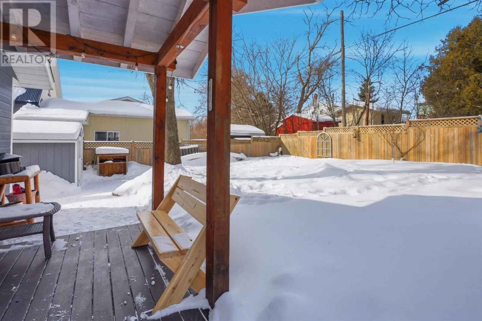 Highway 17 to Hanes Avenue, right on Michigan Avenue, house is on right hand side Presenting a beautifully maintained character home that blends timeless charm with thoughtful modern updates. Offering approximately 1800 square feet across two levels plus a finished third floor loft, this inviting property features nine foot ceilings, abundant natural light, and glimpses of Lake Huron from many windows. The updated kitchen showcases vaulted ceilings with exposed beams and a large island added in 2021, while a welcoming three season front porch provides both charm and practicality. Upstairs offers two bedrooms, a spacious laundry area, and a versatile bonus space ideal for a home office or additional bedroom. The third floor loft serves as a peaceful primary retreat complete with walk in closet, ensuite bath, and beautiful lake views. Recent updates include furnace and shingles (2018), electrical (2019), CanExel siding and air conditioning (2024), plus a smart thermostat. The dry basement provides excellent storage and workspace. Outside, enjoy a fully fenced and landscaped yard with mature trees, perennial gardens, large driveway, and shed. Ideally located within walking distance to the marina, Sellerâs Beach, Boom Camp trails, schools, and downtown amenities, this home offers comfort, character, and a sought after Lake Huron lifestyle. (id:27476)