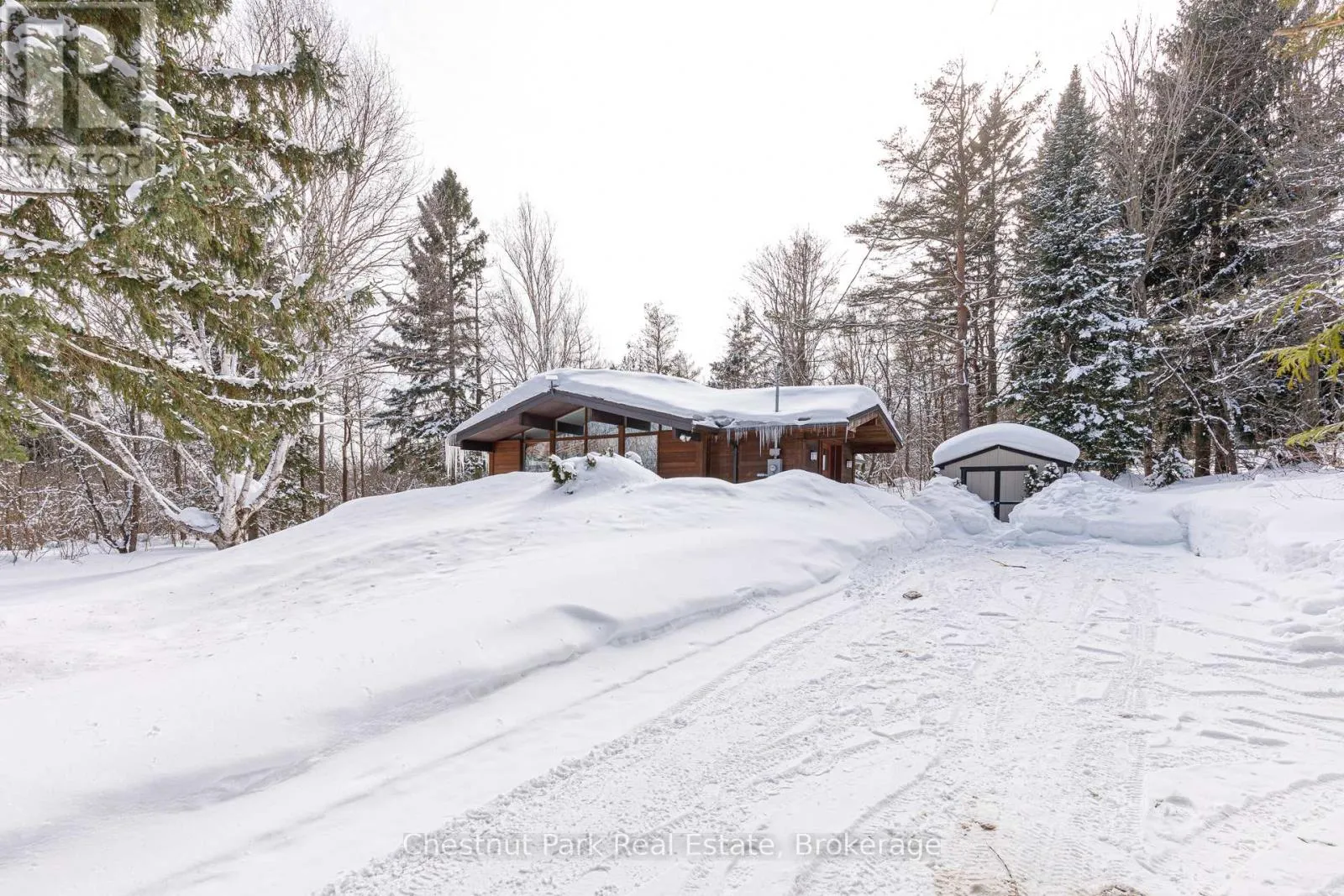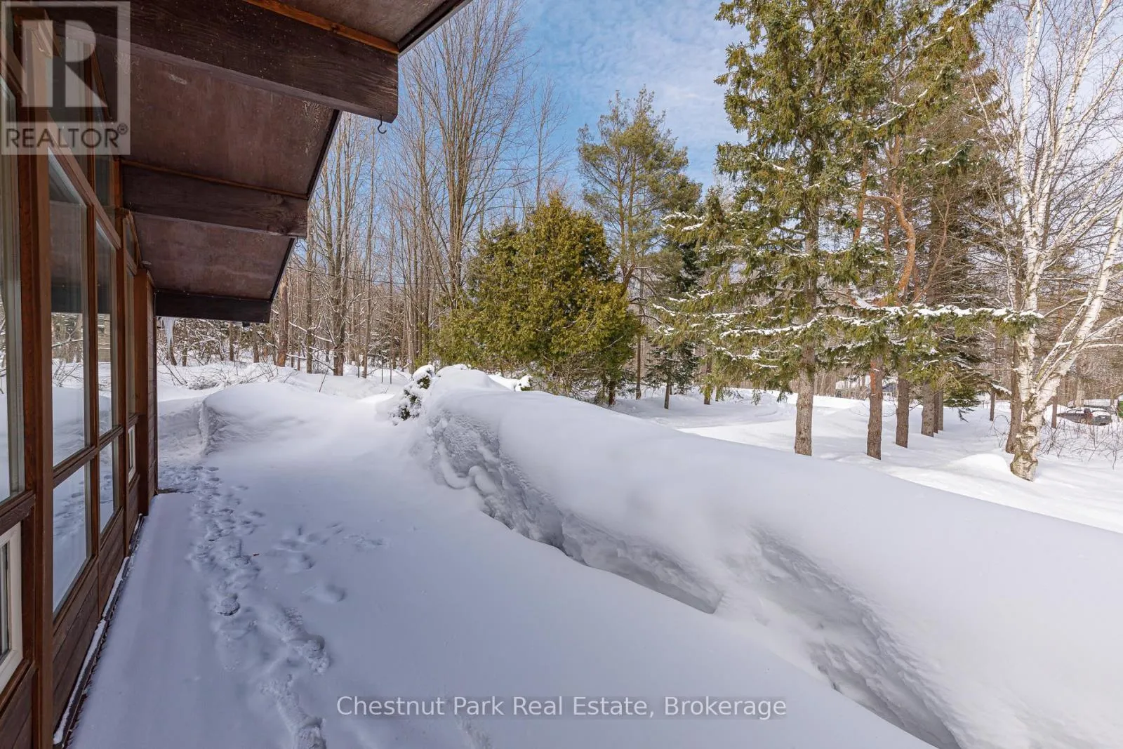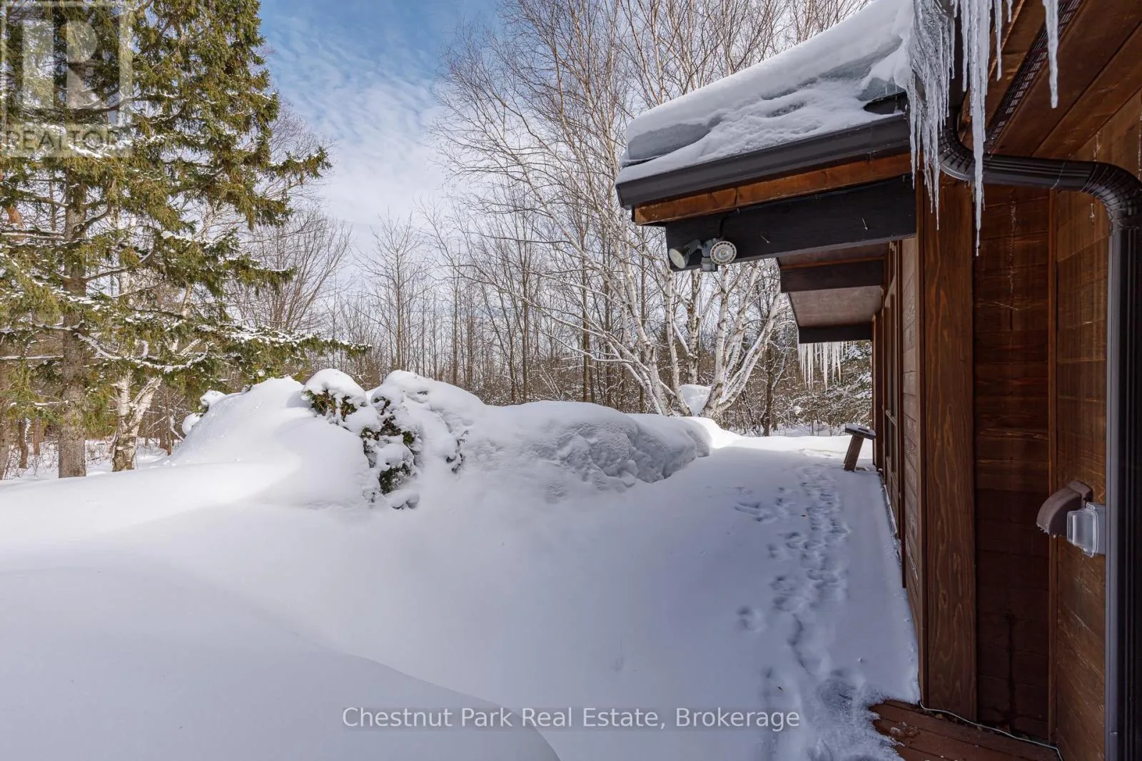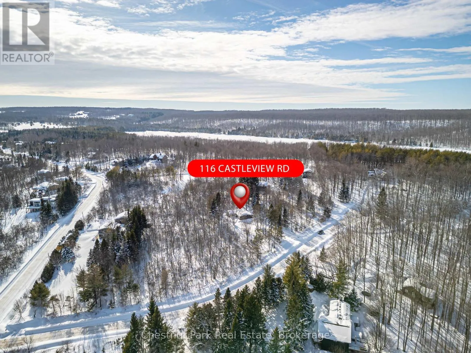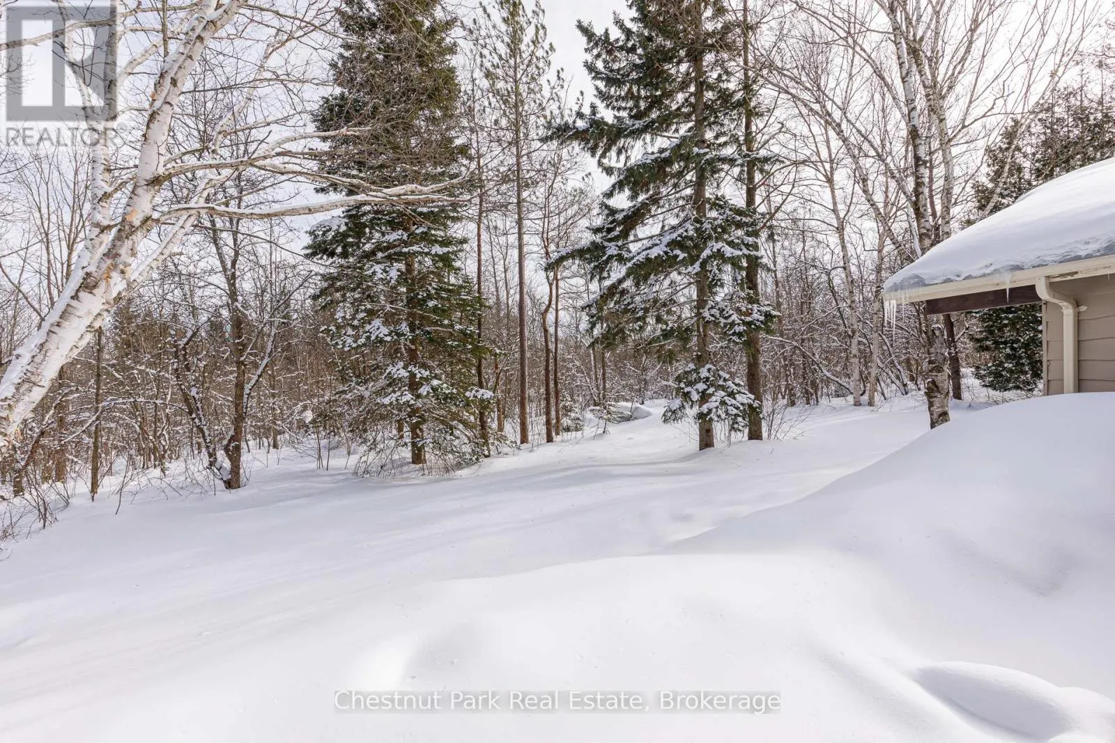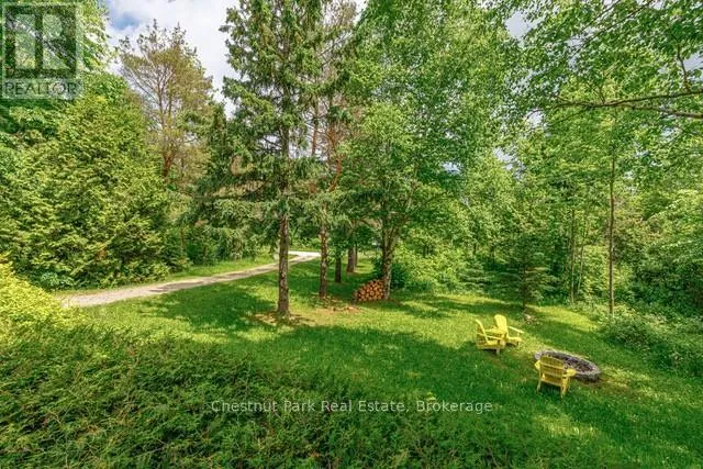 Cross Streets: Castleview and Northmount. ** Directions: Grey Road 19 to Northmount Road to Castleview Road to #116 on the left. FOUR SEASON CASTLE GLEN CHALET - PEACEFUL PERFECTION. Tranquility and peace await at this 3 Bedroom idyllic all-season chalet completely surrounded by nature and access to many trails (including the Bruce Trail) and yet just a few minutes' drive to Osler private ski club, Oslerbrook golf club, downtown Collingwood and Blue Mountain Village. Hike, cycle and snowshoe directly from your front door. Lake of the Clouds - a tranquil, serene lake is just a five-minute walk away through the trail, equally beautiful all-year round and especially delightful reflecting the Autumn leaves. Nestled toward the top of Castle Glen and set well back from the quiet dead end road you are guaranteed ultimate privacy. A welcoming mudroom and laundry flows through to the open concept Living/Dining/Kitchen with a cozy wood stove to relax by after a fun day outdoors. Three spacious and comfortable bedrooms make for an ideal family environment. During the Summer months you can unwind in your expansive garden, enjoy al fresco dining with family and friends or gather around the firepit as night falls to enjoy cozy chats and views of the stars. This sought after location offers lazy days never having to leave your home and immersing yourself in the beauty of nature from the bright and expansive windows or you could head to the slopes for action, cross country ski or snow shoe, or during the Summer months enjoy a round of golf at the many local courses including Oslerbrook which is only minutes down the road. Browse the designer shops or stroll along the waterfront in Collingwood/The Village/Thornbury and enjoy the local nightlife with an impressive array of restaurants to choose from the choices are endless in this fantastic 4 Season destination. This would make the perfect full time residence or equally your 2nd home away from home all season chalet. Water is from the reservoir. Sewage system is communal and approx. $3,700 per year. Also listed FOR SEASONAL LEASE MLS X12401967 (id:27476)