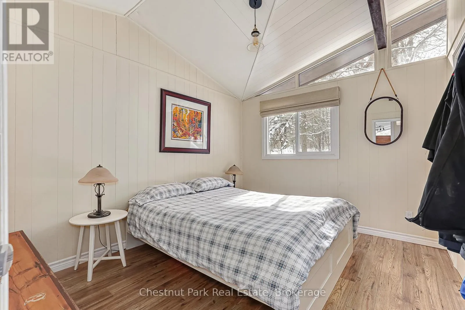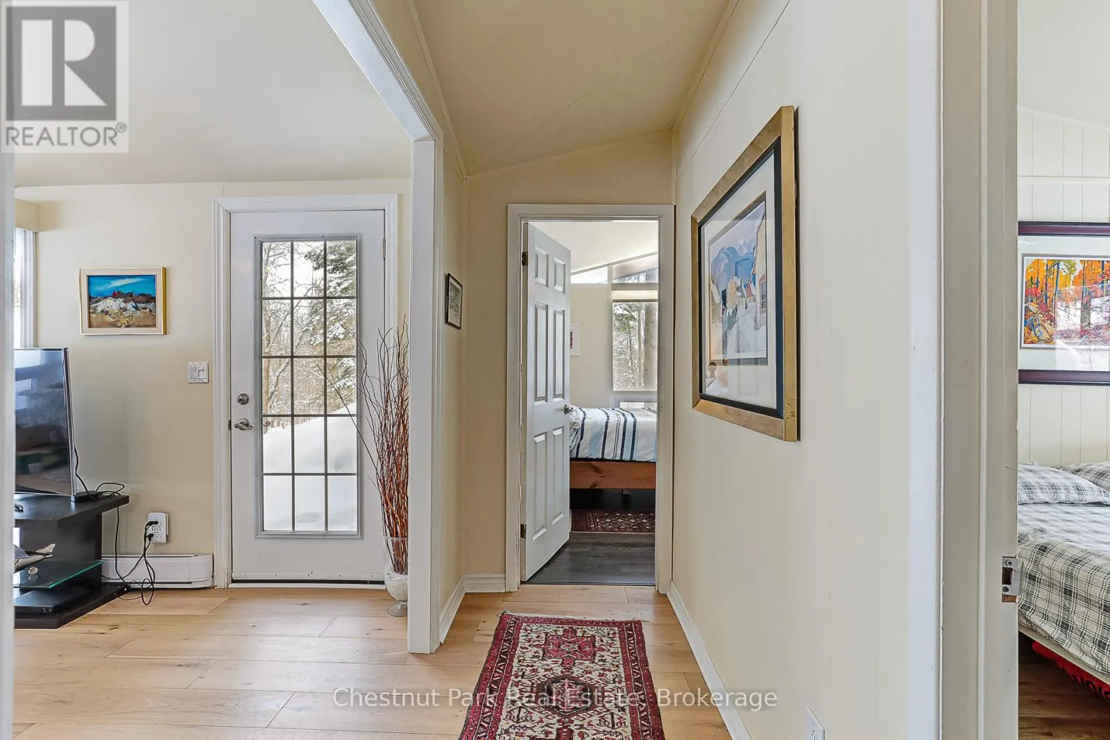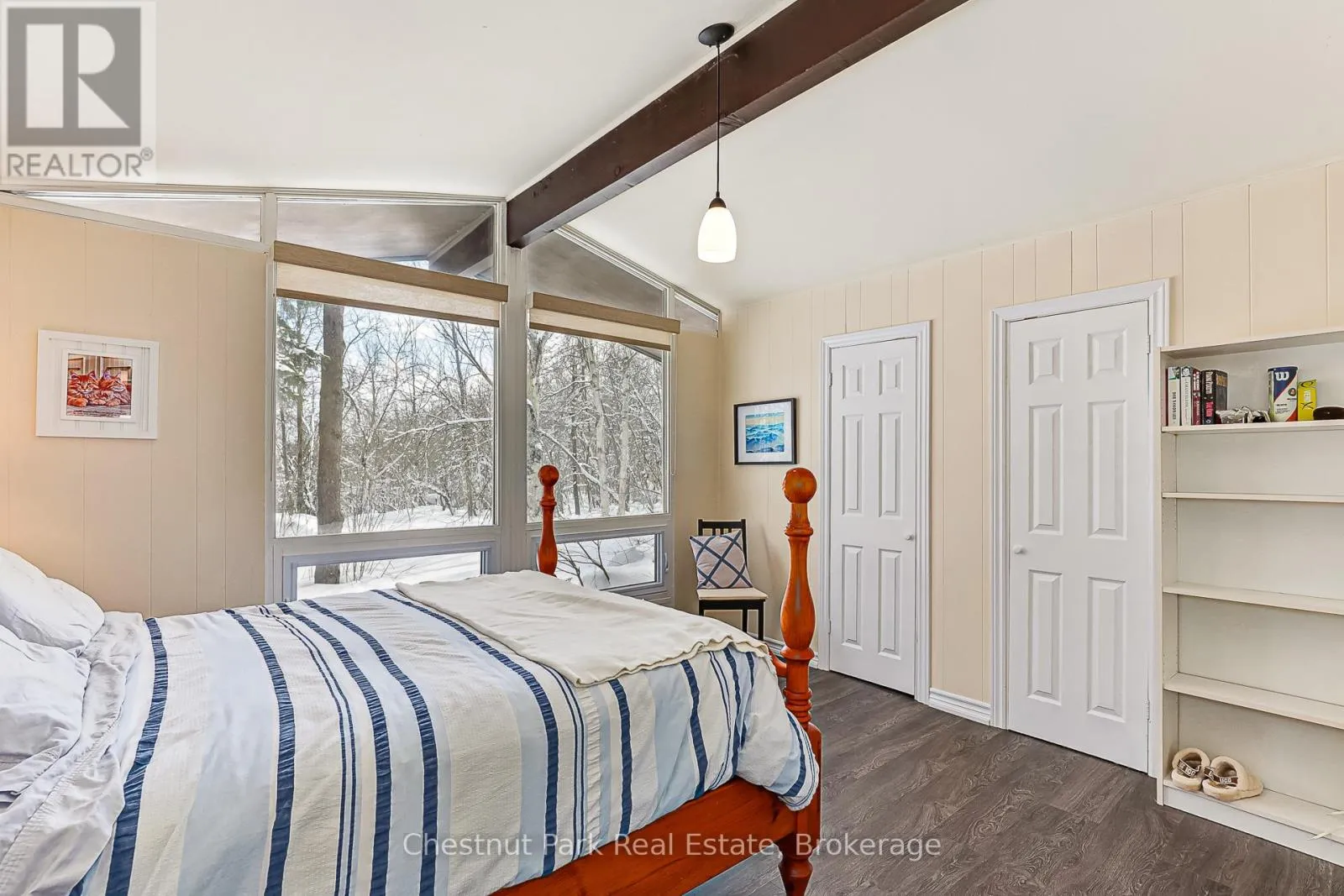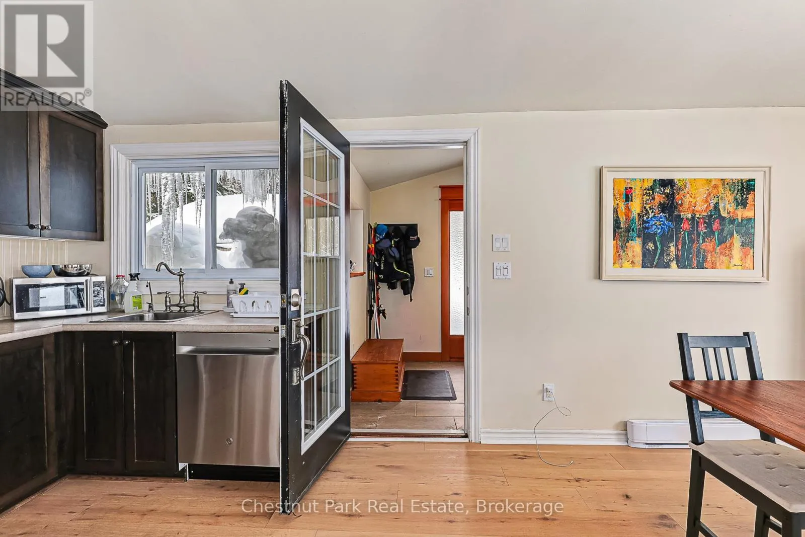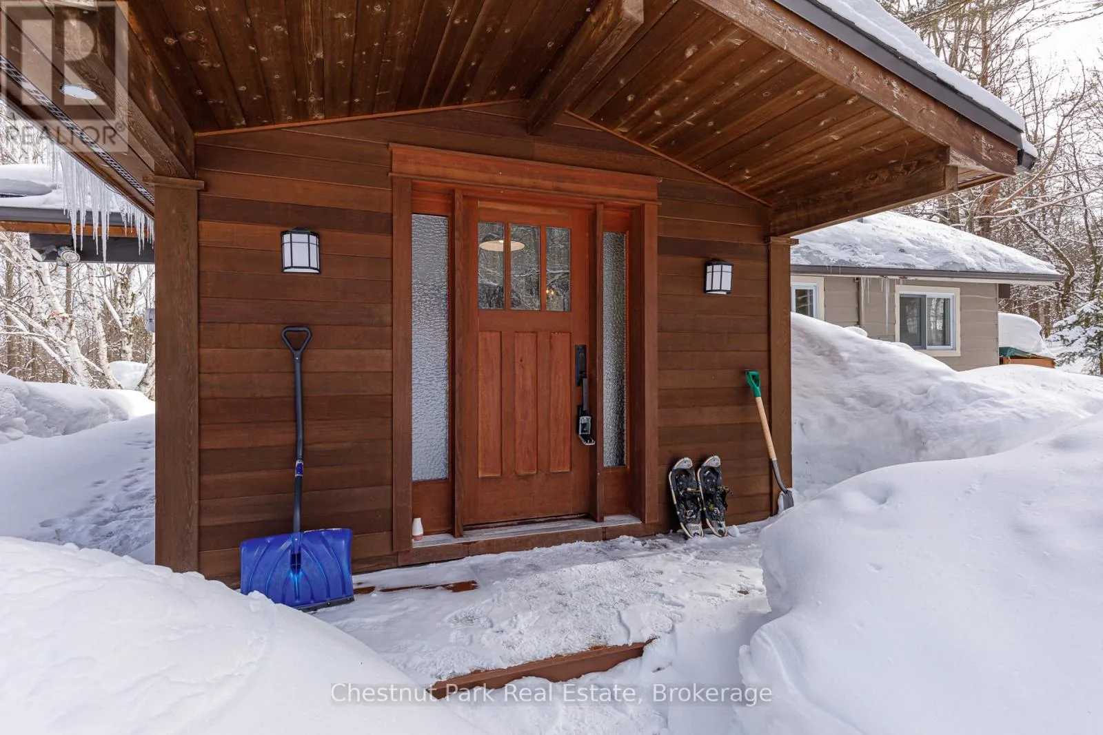 Cross Streets: Castleview and Northmount. ** Directions: Grey Road 19 to Northmount Road to Castleview Road to #116 on the left. FOUR SEASON CASTLE GLEN CHALET - PEACEFUL PERFECTION. Tranquility and peace await at this 3 Bedroom idyllic all-season chalet completely surrounded by nature and access to many trails (including the Bruce Trail) and yet just a few minutes' drive to Osler private ski club, Oslerbrook golf club, downtown Collingwood and Blue Mountain Village. Hike, cycle and snowshoe directly from your front door. Lake of the Clouds - a tranquil, serene lake is just a five-minute walk away through the trail, equally beautiful all-year round and especially delightful reflecting the Autumn leaves. Nestled toward the top of Castle Glen and set well back from the quiet dead end road you are guaranteed ultimate privacy. A welcoming mudroom and laundry flows through to the open concept Living/Dining/Kitchen with a cozy wood stove to relax by after a fun day outdoors. Three spacious and comfortable bedrooms make for an ideal family environment. During the Summer months you can unwind in your expansive garden, enjoy al fresco dining with family and friends or gather around the firepit as night falls to enjoy cozy chats and views of the stars. This sought after location offers lazy days never having to leave your home and immersing yourself in the beauty of nature from the bright and expansive windows or you could head to the slopes for action, cross country ski or snow shoe, or during the Summer months enjoy a round of golf at the many local courses including Oslerbrook which is only minutes down the road. Browse the designer shops or stroll along the waterfront in Collingwood/The Village/Thornbury and enjoy the local nightlife with an impressive array of restaurants to choose from the choices are endless in this fantastic 4 Season destination. This would make the perfect full time residence or equally your 2nd home away from home all season chalet. Water is from the reservoir. Sewage system is communal and approx. $3,700 per year. Also listed FOR SEASONAL LEASE MLS X12401967 (id:27476)