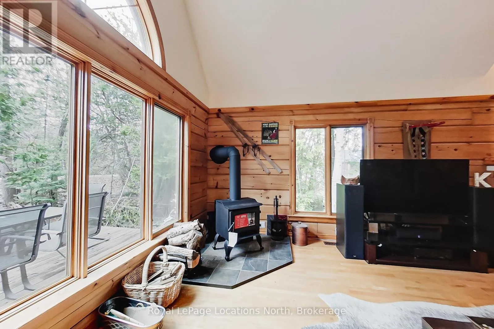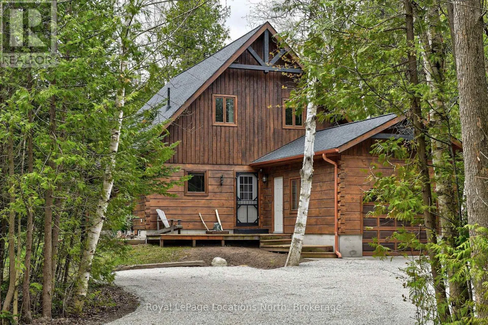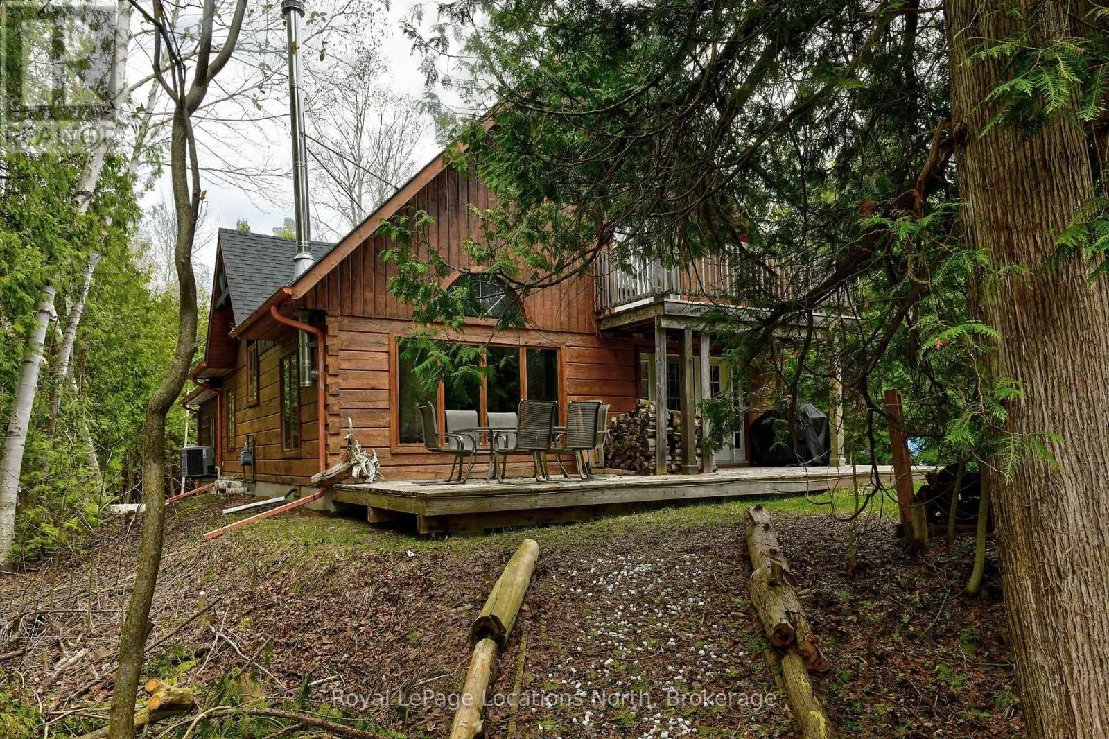 Cross Streets: HWY 26/Eastwind Lane. ** Directions: HWY 26 West to Sign. Discover your ideal family cabin in the woods! This 3-bedroom, 2-bathroom Confederation Log cabin is just minutes from the Georgian Peaks ski hill and Thornbury. It features an open concept layout with a cozy living area, kitchen, and dining space, plus a bedroom and bath on the main floor. Upstairs, find two more bedrooms and a 5-piece bath. Enjoy a wood stove, spacious garage, and a balcony overlooking the Georgian trail. Deeded beach access across the street offers sandy shores with stunning views. Recent upgrades include a new roof (2023), complete exterior refinishing (2023), new furnace (2024), new driveway (2025), hot water tank (2021), upgraded bathroom and kitchen plumbing and light fixtures (2024). This charming cabin is perfect for creating lasting family memories. Close to hiking, biking, golf, skiing and all the area's amenities. (id:27476)