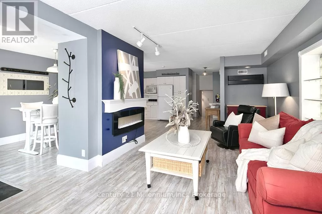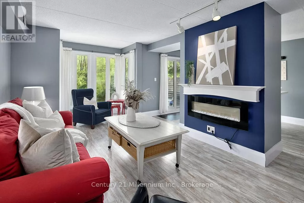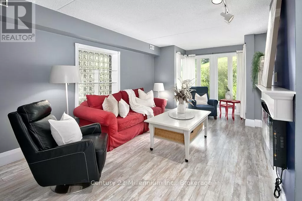 Cross Streets: Grey Road 19 & Jozo Weider Blvd. ** Directions: From Collingwood Drive down Hwy 26 towards Thornbury, Turn Left on Grey Road 19 to Chateau Ridge on Right (#796404) to lockbox on locker #121. A true SKI-IN / SKI-OUT experience! This ground floor, 2-storey Chateau Ridge condo suite is located right near the base of Happy Valley ski run at Blue Mountain Resort. Just strap your skis on at the back door and slide over to the ski lift! Tucked far enough away from the village to enjoy the peace and tranquility of the surrounding mature trees and quiet lifestyle, yet close enough to walk to all of the amenities our area has to offer. Enjoy plenty of natural light with an abundance of windows, and glass brick details plus an open concept kitchen/dining area and a cozy living room with bay window and electric fireplace. This condo offers an abundance of storage within the unit as well as a private ski locker outside. Your exclusive parking space is right out the front door and there's lots of visitor parking as well. A short drive or bike ride to beaches, golf and downtown Collingwood, this location is outstanding for so many reasons. Unit is not currently part of the BMVA, nor was it used for short term rentals, though zoning may potentially allow for short term rentals with certain limitations. (id:27476)