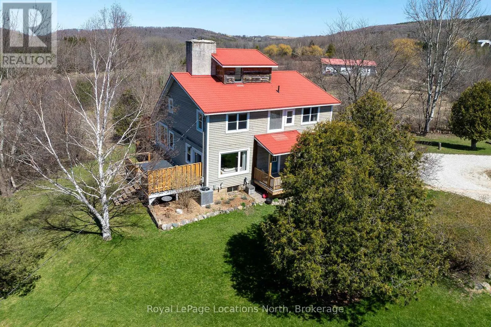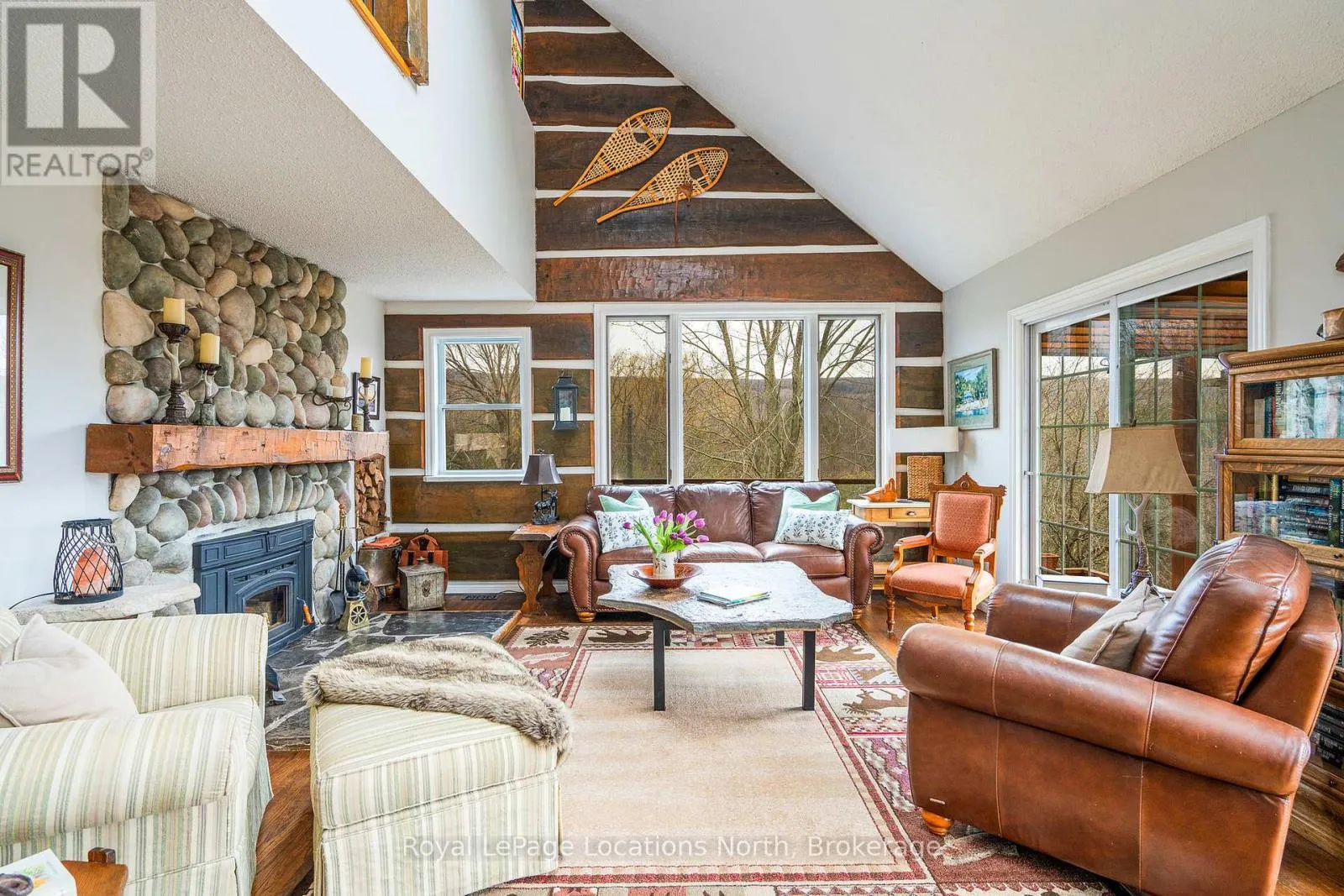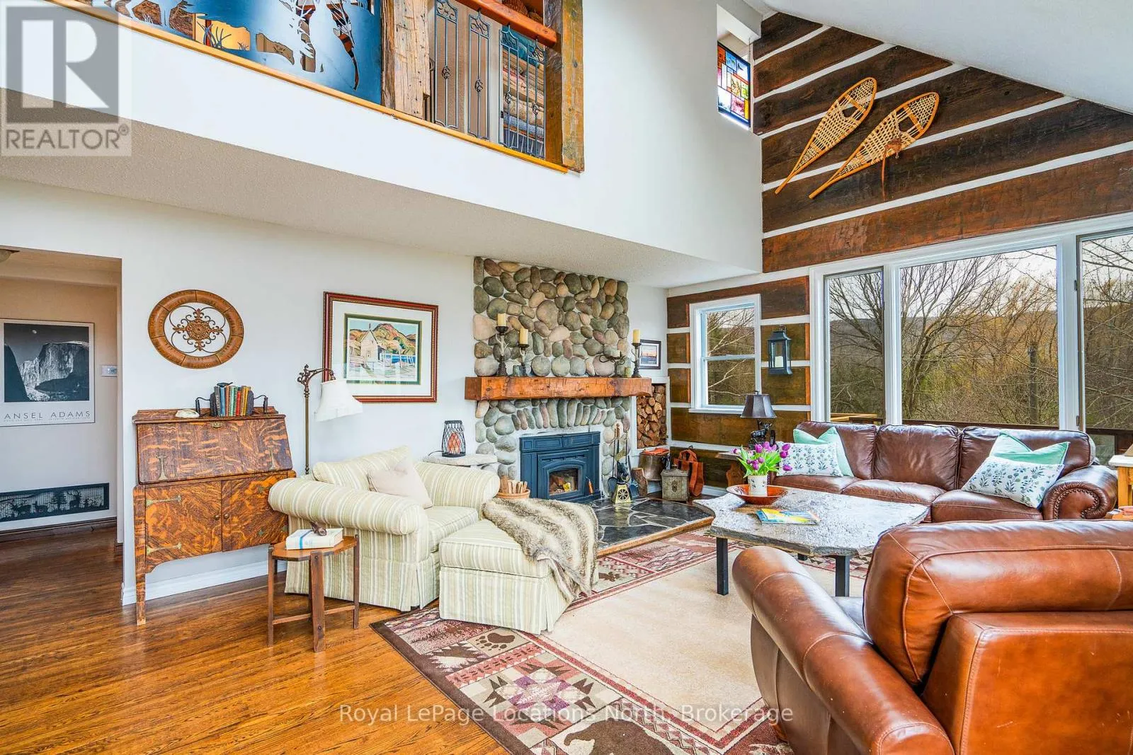 Just north of the Osprey-Blue Mountains TL, on the east side of Pretty River Rd. Tucked away in the heart of the scenic Pretty River Valley, this beautifully maintained country home offers a rare blend of privacy, character, and year-round outdoor adventure. Set on a full acre and surrounded by the Pretty River Provincial Park, its a nature lovers dream with hiking and biking right at your doorstep. Easy drive to Devil's Glen or Osler Bluff ski clubs, Highlands Nordic and Duntroon Highlands golf. The home itself radiates warmth and comfort, featuring 5 bedrooms, multiple living spaces, and spectacular views from every room. Vaulted ceilings, a wood stove, and expansive windows create a cozy yet open feel, while recent updates including a new UV system and iron filter ensure peace of mind. Enjoy serene mornings by the pond, valley views from the hot tub, and a loft space ideal for a studio or quiet retreat. A truly special property that must be experienced in person to be fully appreciated. (id:27476)
