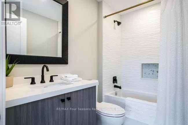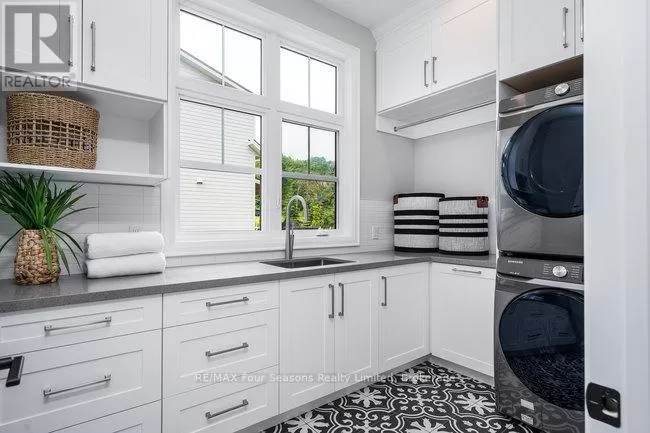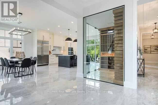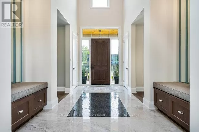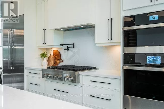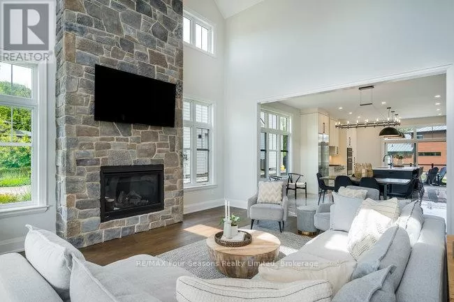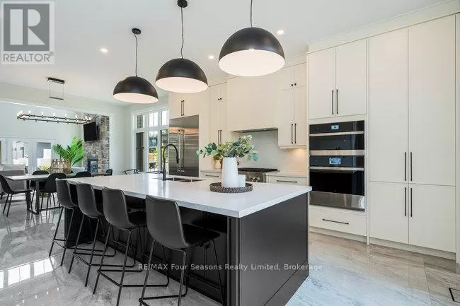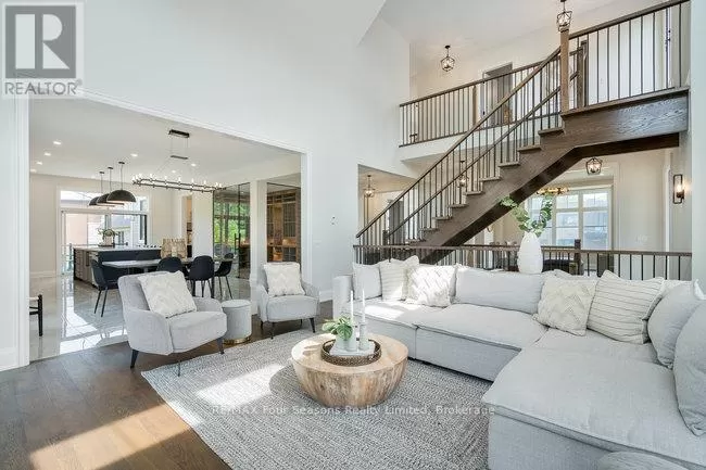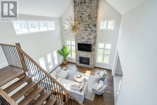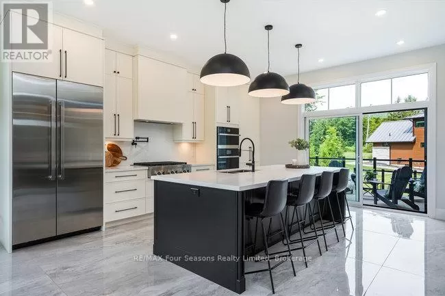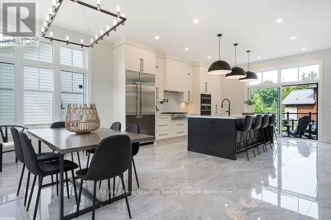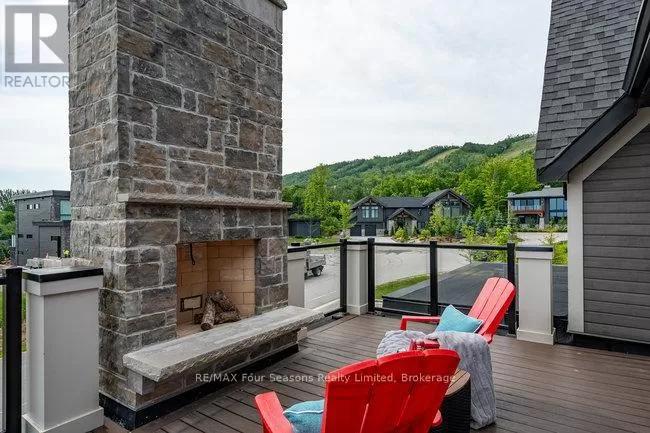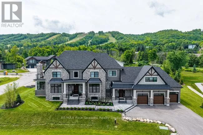 Cross Streets: Grindelwald & Courchevel. ** Directions: Highway 26 West, turn onto Grey Rd. 19 in Craigleith, turn right on Sleepy Hollow Rd., turn right on Arnot Cres., turn left onto Courcheval, turn left onto Grindelwald (property on corner of Grindelwald and Courchevel ). Nestled in the prestigious Nipissing Ridge III community, this custom masterpiece delivers a stunning fusion of modern luxury and refined mountain living, offering 5,678 sq. ft. of finished living space above grade plus 3,180 sq. ft. of unfinished basement space awaiting your personal touch. Ideally located within walking distance to both Alpine and Craigleith Ski Clubs and a short drive to the Village at Blue Mountain, this exceptional turnkey home is being offered fully furnished and is designed to impress with soaring ceilings10 feet on the main floor and 9 feet on the second floor and basementand a dramatic 26-foot great room anchored by a floor-to-ceiling stone fireplace. Exquisite finishes include oak hardwood and porcelain tile flooring, quartz countertops, custom cabinetry by Selba, and a chef-inspired gourmet kitchen equipped with JennAir Noir luxury appliances, a 630-bottle wine room, dining nook, and walk-in pantry. The main level also boasts a formal dining room, office/study with an onyx-faced gas fireplace, a ski/mudroom, laundry, and direct access to an oversized three-car garage. The second floor hosts a lavish primary suite featuring double walk-in closets, a Romeo and Juliet balcony, and a sumptuous five-piece ensuite, complemented by three additional bedrooms each with private ensuites. A separate fifth bedroom/guest suite above the garage includes its own private entrance, kitchenette, and full bath, ideal for visitors or extended family. Entertain outdoors on the rooftop terrace complete with a wood-burning Rumford fireplace and spectacular views of the escarpment and Craigleith and Alpine ski hills. Perfectly set between the Niagara Escarpment and Georgian Bay, this residence offers an unrivaled blend of elegance, comfort, and year-round adventure, making it the ultimate luxury retreat. Truly, a must see! (id:27476)