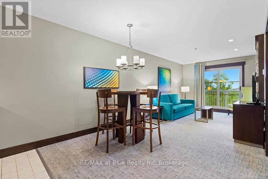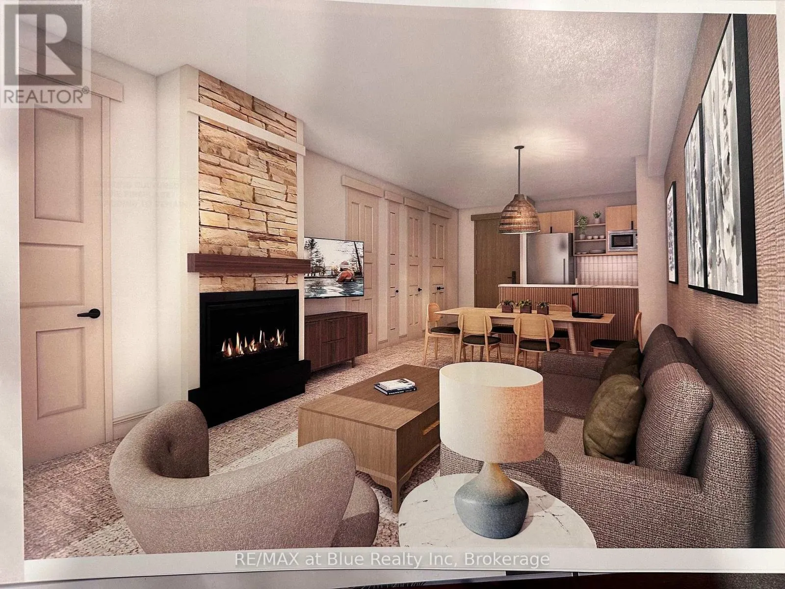 Cross Streets: Mtn Rd. & Jozo Weider. ** Directions: Mtn Rd. to Jozo Weider. MOSAIC AT BLUE RESORT CONDOMINIUM - Beautiful one bedroom one bathroom fully furnished resort condominium located in The Village at Blue Mountain in the boutique-style condo-hotel known as Mosaic at Blue. Steps away from the Silver Bullet chairlift and Monterra Golf Course. Enjoy all the shops and restaurants in Ontario's most popular four season resort. Suite comes fully equipped with a kitchenette with two burners, dining area, pullout sofa, fireplace, appliances, window coverings, lighting fixtures and everything else down to the cutlery. Mosaic at Blue's amenities include a year round outdoor heated swimming pool, hot tub, owner's ski locker room, two levels of heated underground parking, exercise room and private owner's lounge to meet and mingle with other homeowners. Ownership at Blue Mountain includes an optional fully managed rental pool program to help offset the cost of ownership while still allowing liberal owner usage. The condo can also be kept for exclusive usage as a non-rental. 2% Village Association entry fee is applicable. HST is applicable but can deferred by obtaining a HST number and enrolling the suite into the rental pool program. In-suite renovations scheduled for all condominiums in Mosaic sometime in either fall 2025 or spring 2026.This suite will be completely refurbished in the fall of 2025. The Seller has paid the first two payments of $19,706.88 leaving a balance of $59,120 of eight payments remaining. The buyer to pay the remaining payments. Proposed refurbishment renderings included in the photos of this listing are one-bedroom renderings. All Mosaic suites will be refurbished similarly. (id:27476)