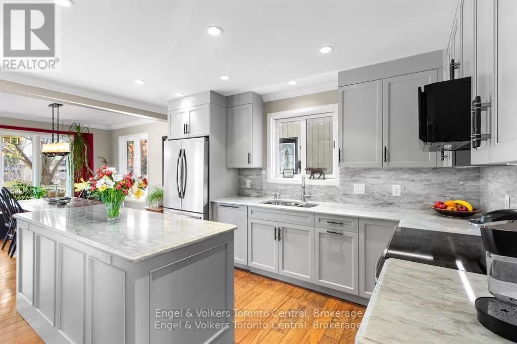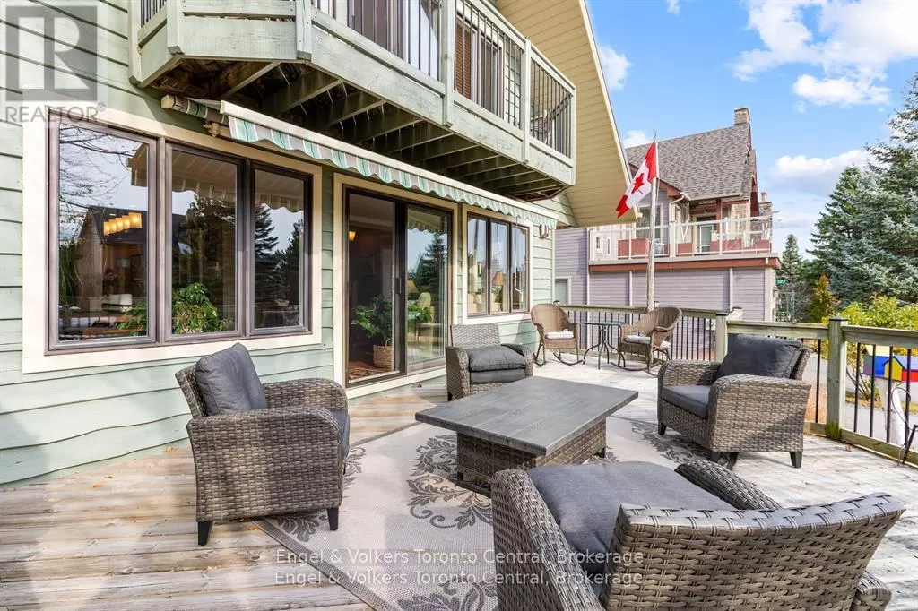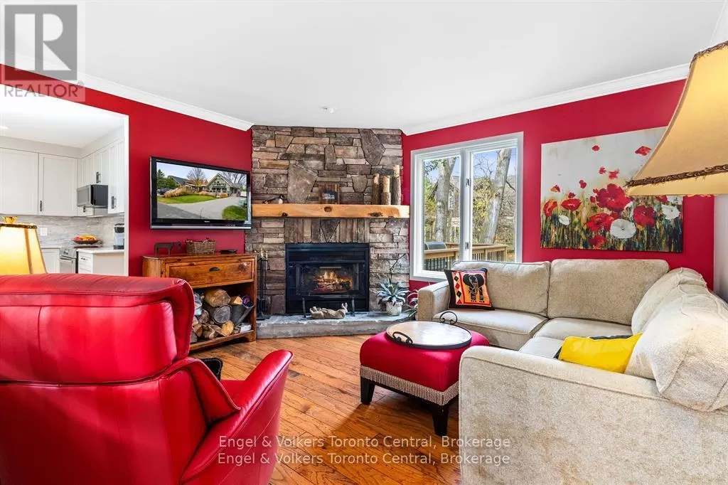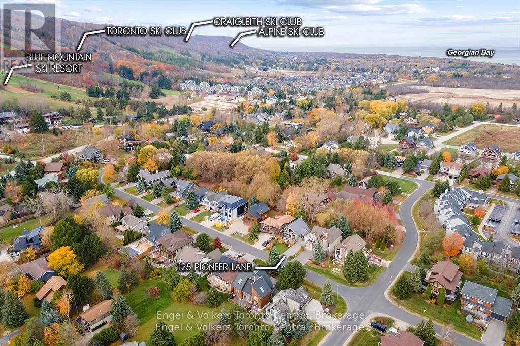Cross Streets: Heritage Drive and Pioneer Lane. ** Directions: Heritage Drive to Pioneer Lane #125. Discover the perfect apres-ski retreat. Stunning, new kitchen with all new appliances included. This 4-bedroom, 2-bathroom chalet is ideally positioned for year-round mountain enjoyment! Captivating views of Blue Mountains ski slopes, this four season home truly brings "location, location, location" back into focus. Step inside to a warm and inviting atmosphere, highlighted by a cozy fireplace ideal for unwinding after a day on the slopes. Gather around for relaxation and conversation in the open-concept living space, designed to bring friends and family together. Fenced yard, irrigation system and handy attached storage shed. Great summer base camp, easy walk to the village where there is something going on year round. Whether it's winter skiing or summer hikes & bikes, this property is your gateway to Blue Mountain adventures all year long. Don't miss out on this prime mountain retreat! (id:27476)