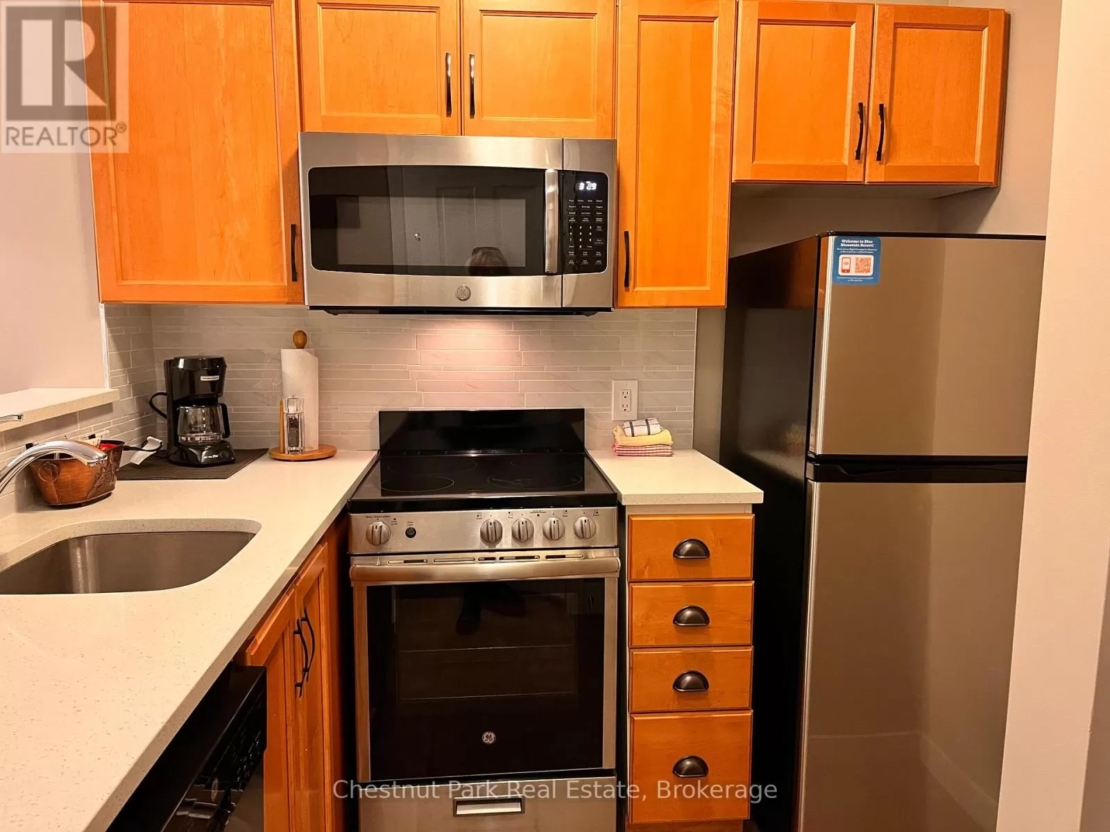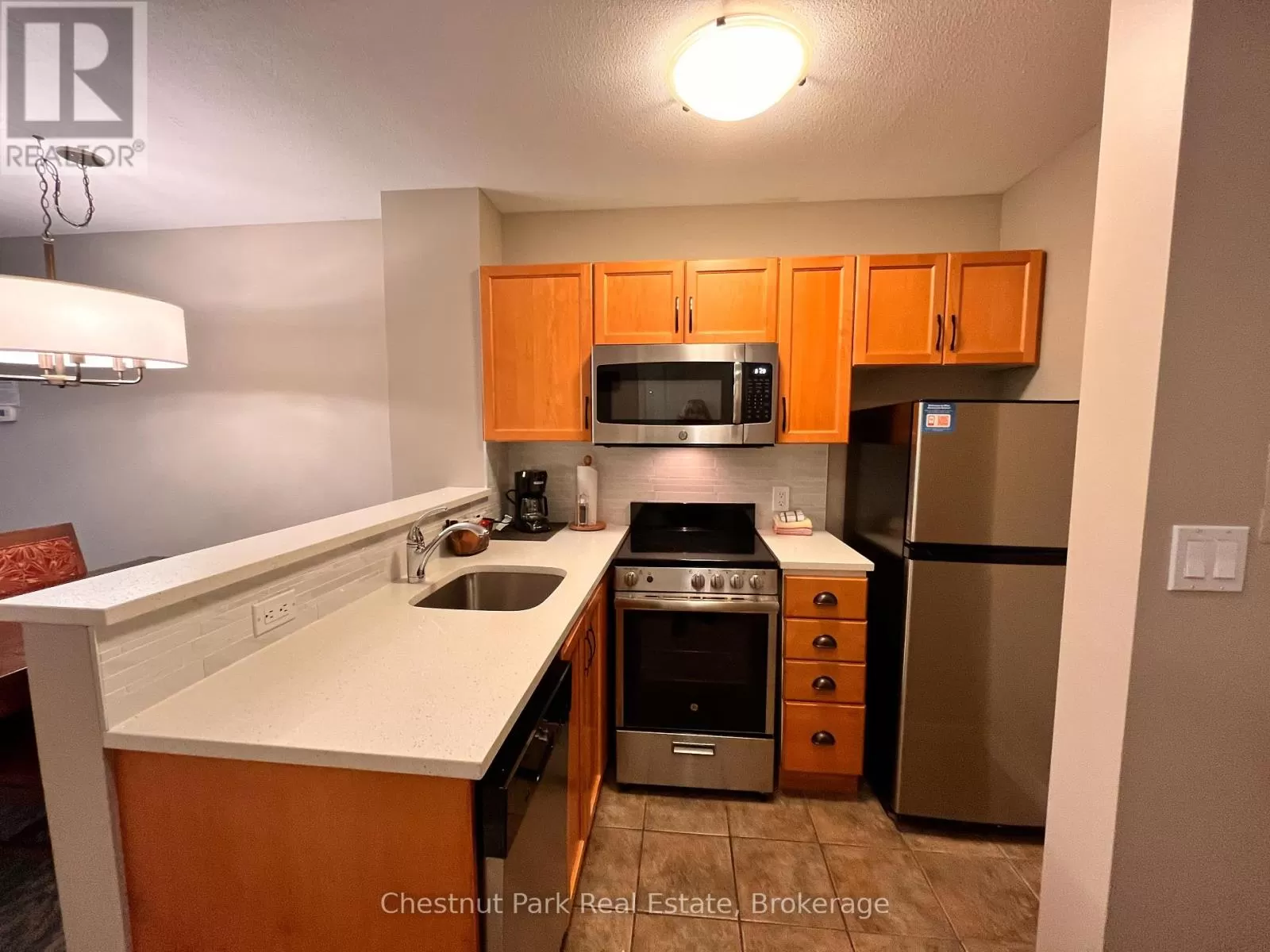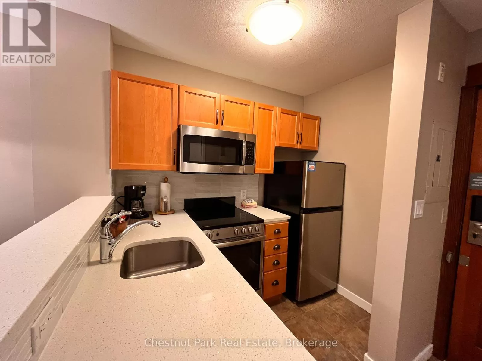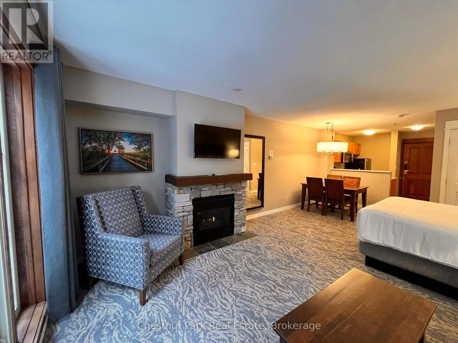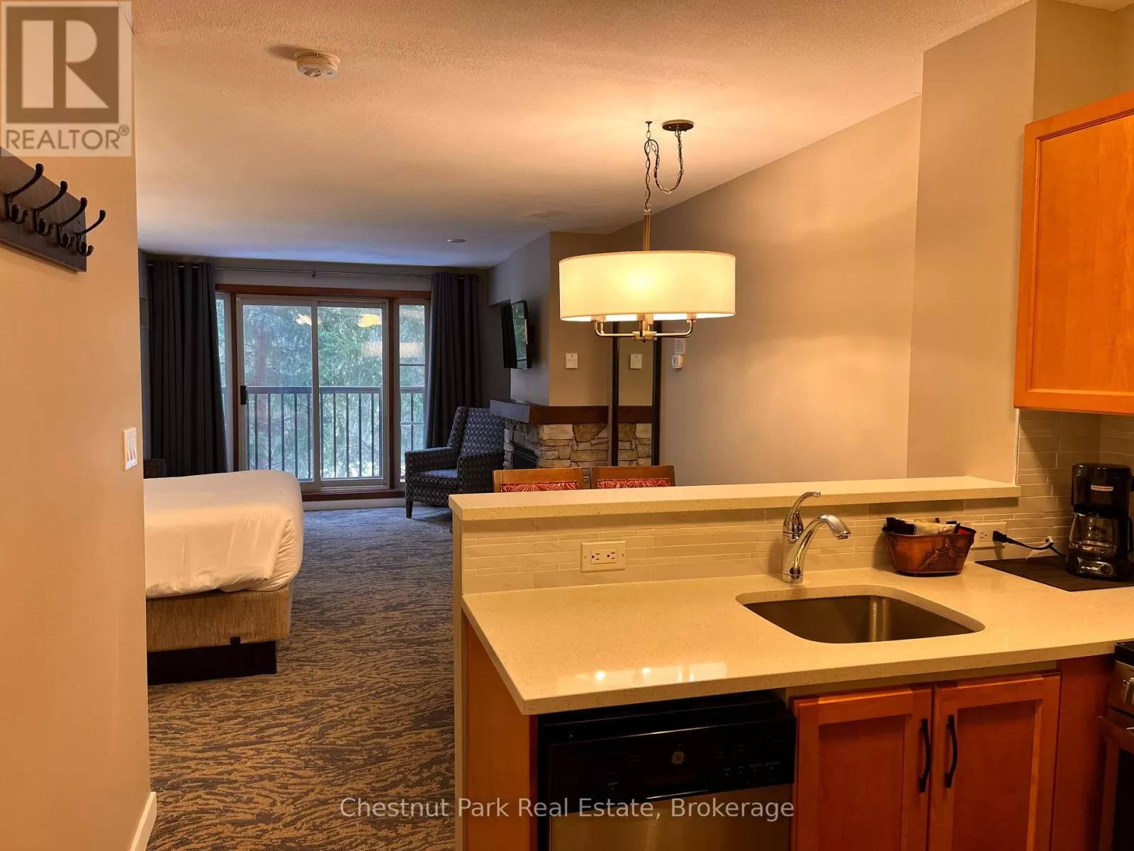 Cross Streets: Grey Rd 19 & Jozo Weider Blvd. ** Directions: Hwy 26 to First St to Mountain Rd (Grey Rd 19) to Jozo Weider Blvd to Village Cres. Open concept bachelor suite with full kitchen, stainless appliances, granite counters, stone surround gas fireplace in the popular Grand Georgian building in Blue Mountain Village. Sleeping and dining accommodation for up to 4. Queen bed plus a queen pull out in living area. Located in a private location, close to the ski lift and hills, shopping, dining and all that the Village has to offer. Take part in the fully managed rental program where you can use your resort home for up to 10 days per month and when not personally using it you can generate revenue nightly based on occupancy, to offset your operating costs. The Grand Georgian with beautiful large lobby, offers full check in services, a large private owners gathering room, 2 outdoor year round hot tubs, a seasonal outdoor pool, indoor sauna and exercise room, heated underground parking, ski locker and bike room on the garage level. easy access to the lobby from main entrance and parking area at front of the main entrance. A second exit at the back of the building take you right out to the action in the Village and is located right next to Starbucks so you can get your morning coffee and treats! Blue Mountain Resort is a 4 season getaway resort. This resort home could be your perfect turn-key cottage getaway! 2% Blue Mountain Village Entry fee due on closing and annual fees of $1.08 per sq. ft. per annum payable quarterly. HST is applicable but can be deferred by obtaining an HST number. (id:27476)