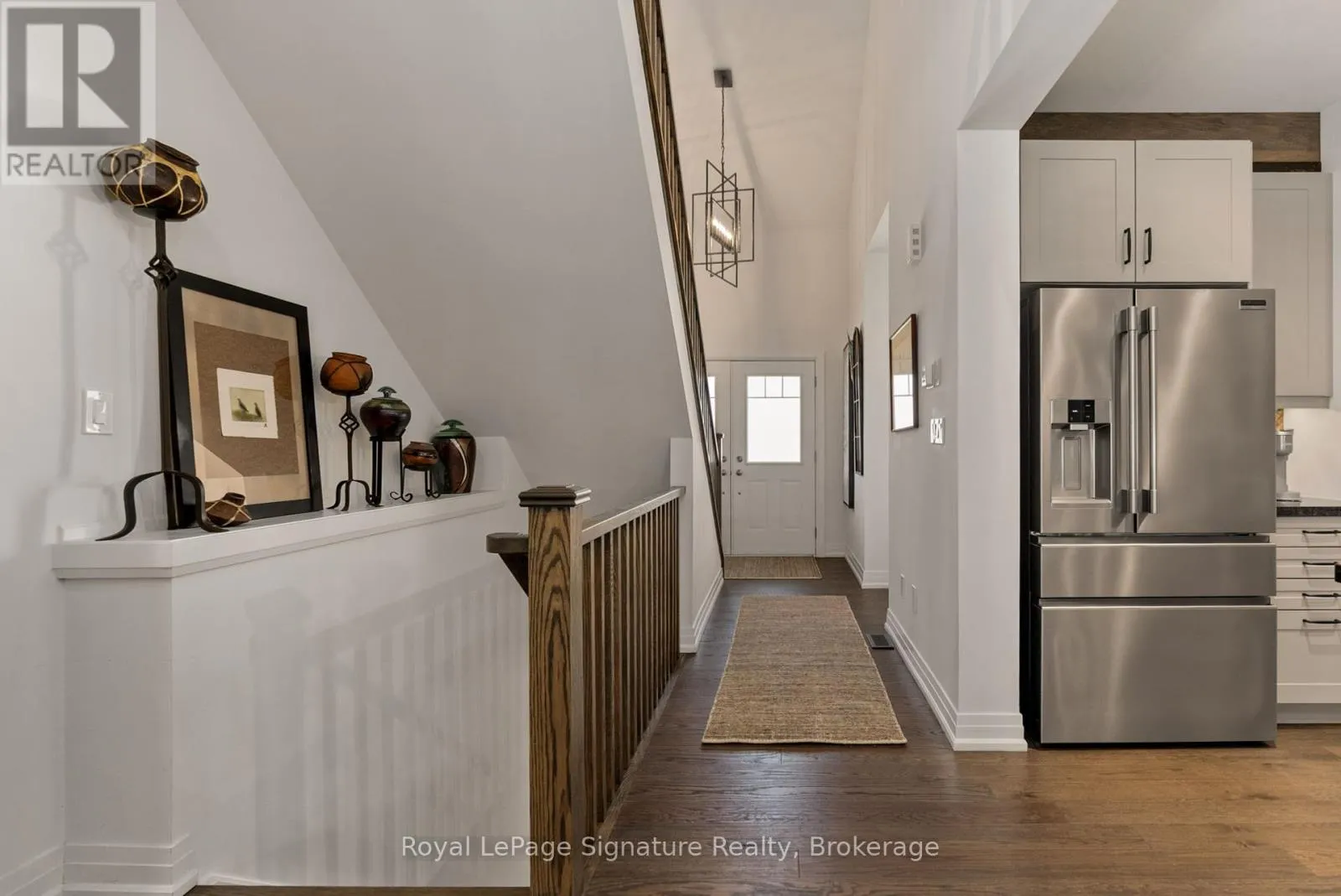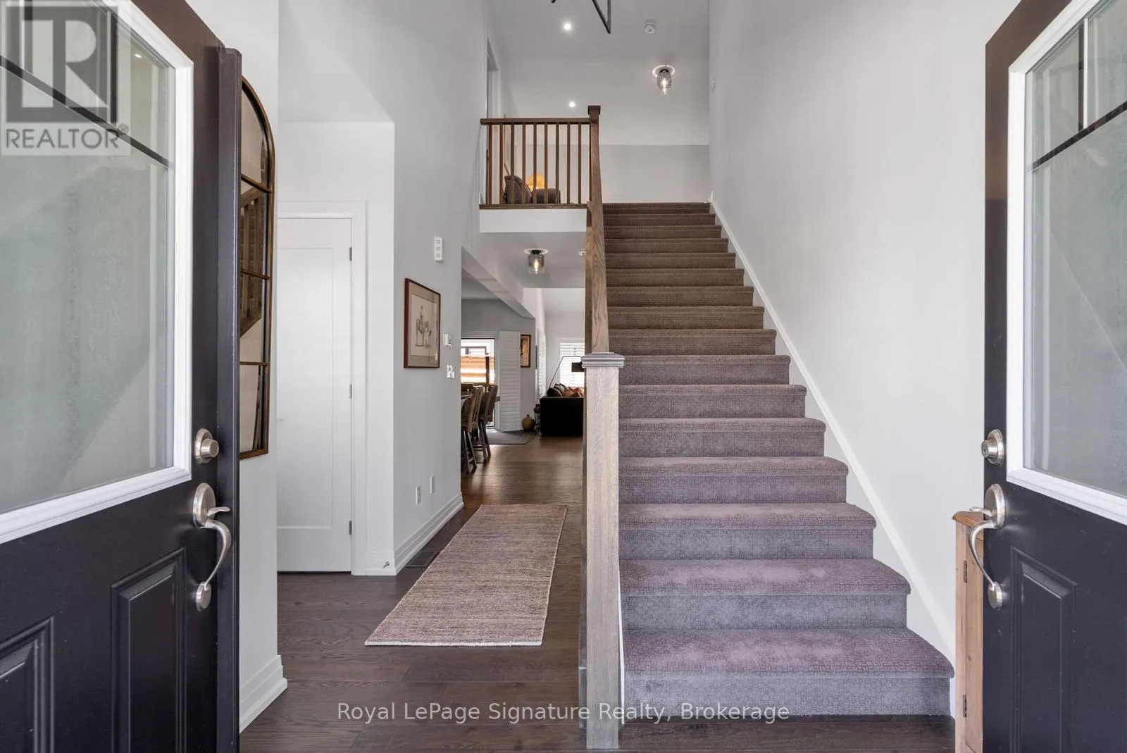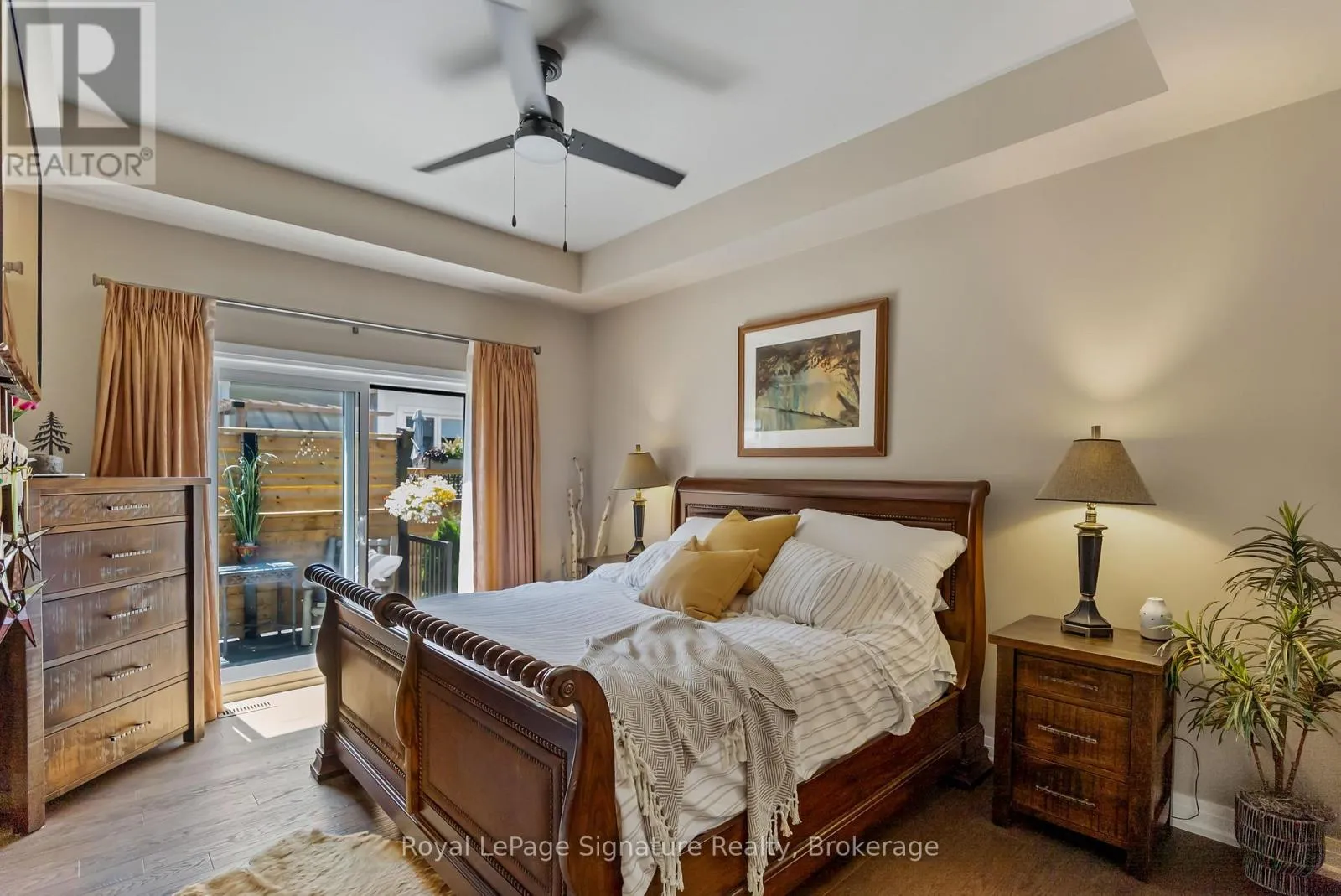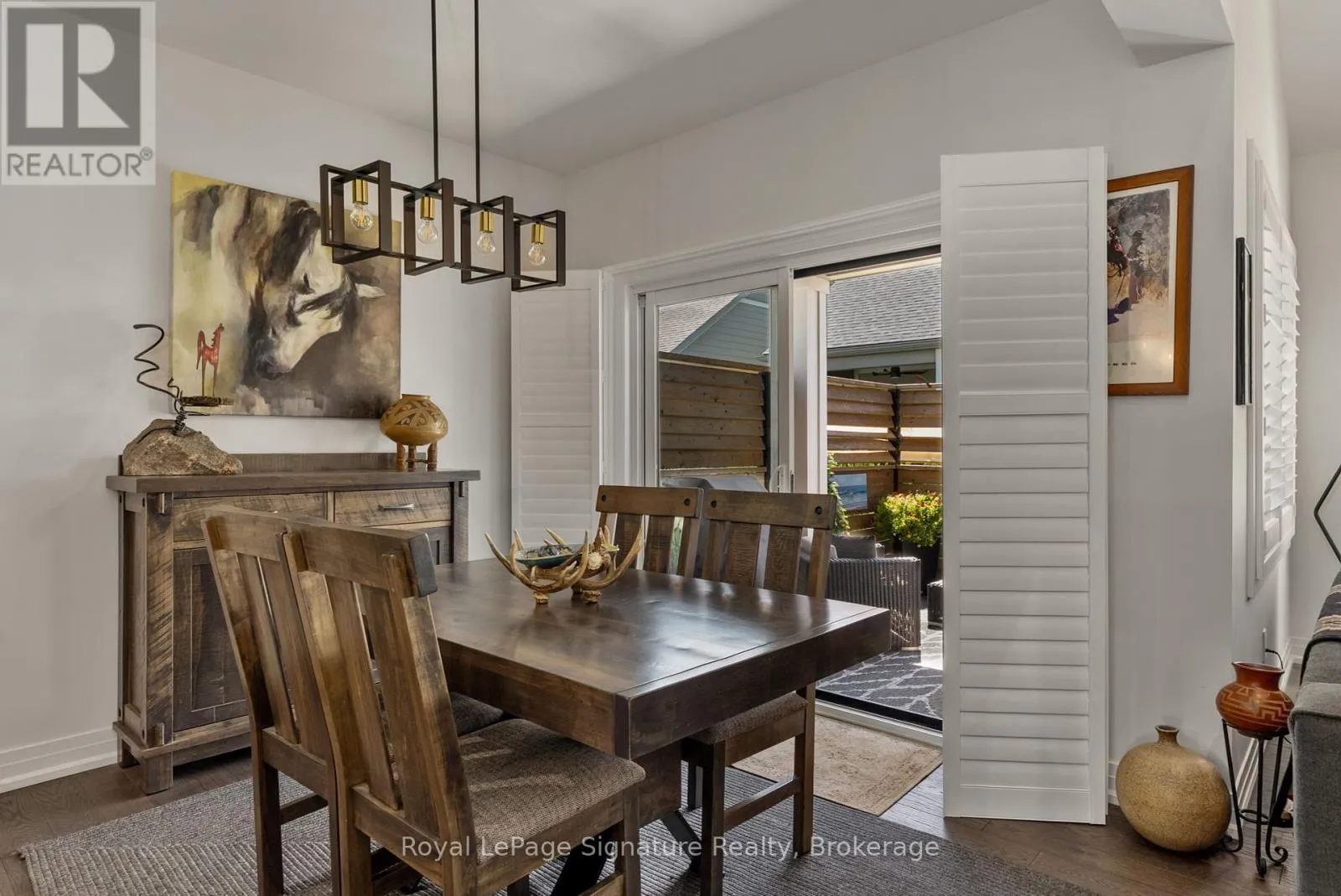 Cross Streets: Beacon Drive. ** Directions: Hwy 26 to Lora Bay Drive, straight at roundabout, left on Sunset Blvd, left on Beacon Drive, left on Clippers Lane. Just a 2-minute stroll to the private residents-only beach, this stunning home in The Cottages at Lora Bay, a prestigious waterfront community in Thornbury, blends upscale design with low-maintenance living in a vibrant, four-season setting. Thoughtfully upgraded throughout, the home features hardwood flooring on the main level, smooth ceilings, upgraded trim, doors, hardware, and custom lighting. The gourmet kitchen is a showstopper with thickened granite counters, walnut cabinetry details, rusted steel accents, and a full suite of Frigidaire Professional appliances, including a gas range with air-fry oven and Sharp microwave drawer. Under-cabinet lighting, added outlets, pot lights, and dimmers enhance function and flair. A custom two-sided gas fireplace serves as a striking focal point, with a dramatic floor-to-ceiling steel surround in the living room and a warm board and batten feature wall in the primary suite blending industrial edge, rustic character, and timeless charm. The serene suite includes a spa-like ensuite with in-floor heating, upgraded tile and cabinetry, and direct access to a full-width custom deck designed for privacy with shutters. Additional highlights include: custom window coverings and shutters, stone walkway and sealed, paved driveway edged in stone, fully landscaped yard with privacy panels, flower boxes, and mature plantings, 9-foot basement ceilings, laundry with stacked washer/dryer and cabinetry, festive lighting switch, surge protector, and more. Enjoy the unbeatable Lora Bay lifestyle, walk to the clubhouse restaurant for dinner, unwind in the residents gym, explore scenic trails, or spend your days by the water. This home offers refined comfort in a one-of-a-kind community, steps from Georgian Bay and minutes to downtown Thornbury. (id:27476)