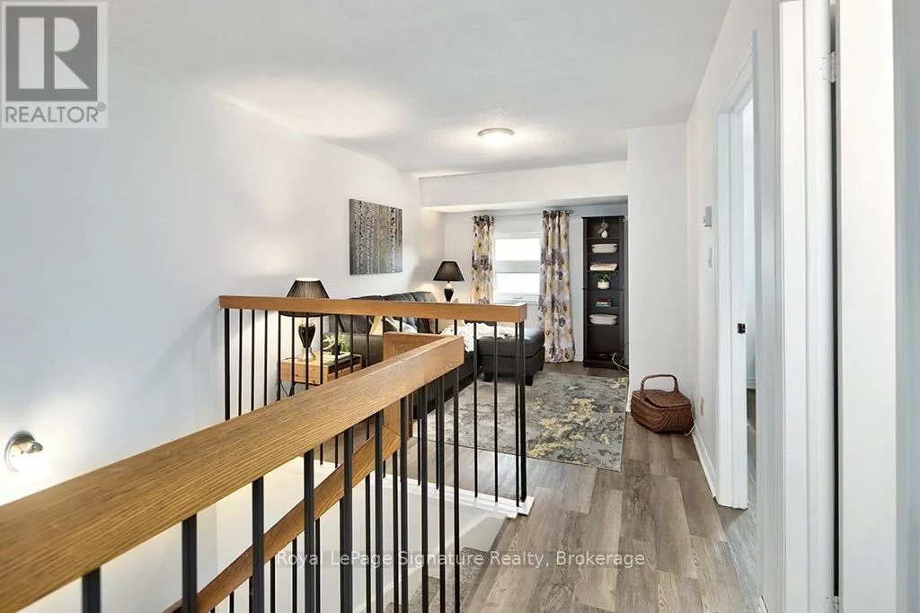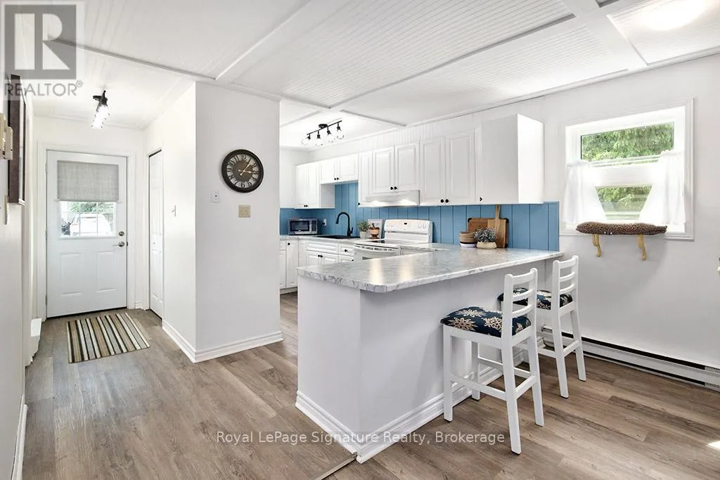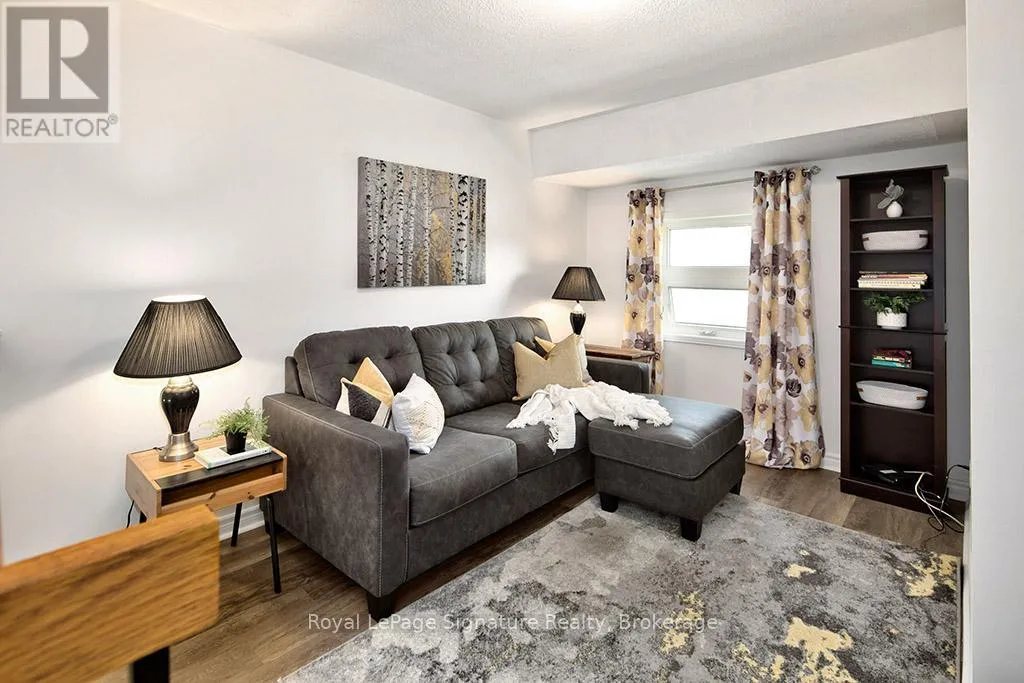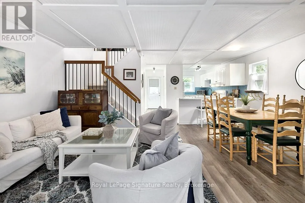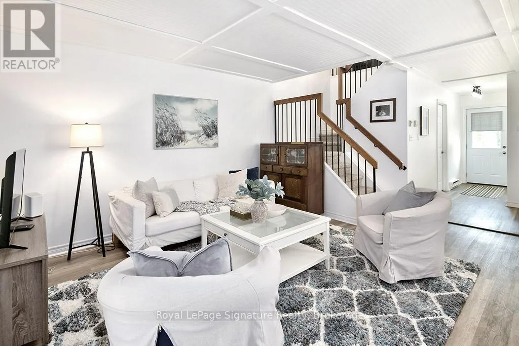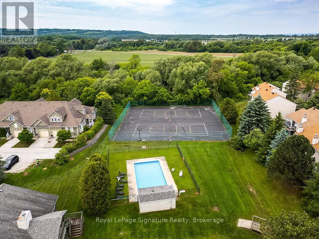 Cross Streets: Victoria Street. ** Directions: Victoria Street S to Alfred Street W. Discover the perfect blend of lifestyle, comfort, and convenience in this end-unit townhome in Thornbury's sought-after Applejack community. Set on mature, landscaped grounds, this bright and inviting home is just steps from exceptional amenities including two outdoor pools, tennis and pickleball courts, and a welcoming clubhouse ideal for gatherings and social events. Freshly painted, the home features two spacious bedrooms, including a peaceful primary suite with a walk-in closet, private 3-piece ensuite, and walkout balcony a tranquil retreat to start or end your day. The open-concept main level offers a warm and functional living space with a cozy gas fireplace, seamlessly connected to the kitchen perfect for everyday living and entertaining alike. A versatile upstairs den provides the ideal spot for a home office or reading nook, while main floor laundry adds everyday convenience. While the home has seen some thoughtful updates, there's still room to make your own improvements and add value over time. Enjoy the best of Thornbury living, just a short stroll to charming downtown shops, cafés, restaurants, the library, rec centre, and the beautiful shores of Georgian Bay. Outdoor enthusiasts will appreciate easy access to nearby ski hills, golf courses, and scenic trails, with Blue Mountain just 15 minutes away. Motivated seller, bring an offer! (id:27476)