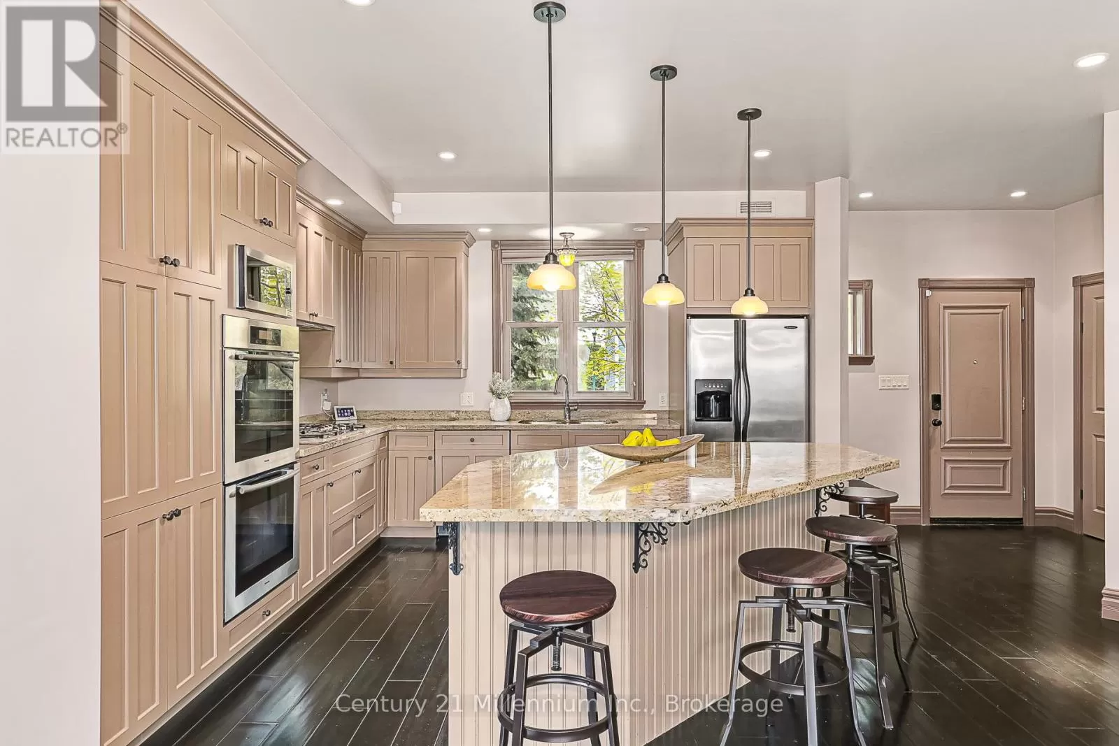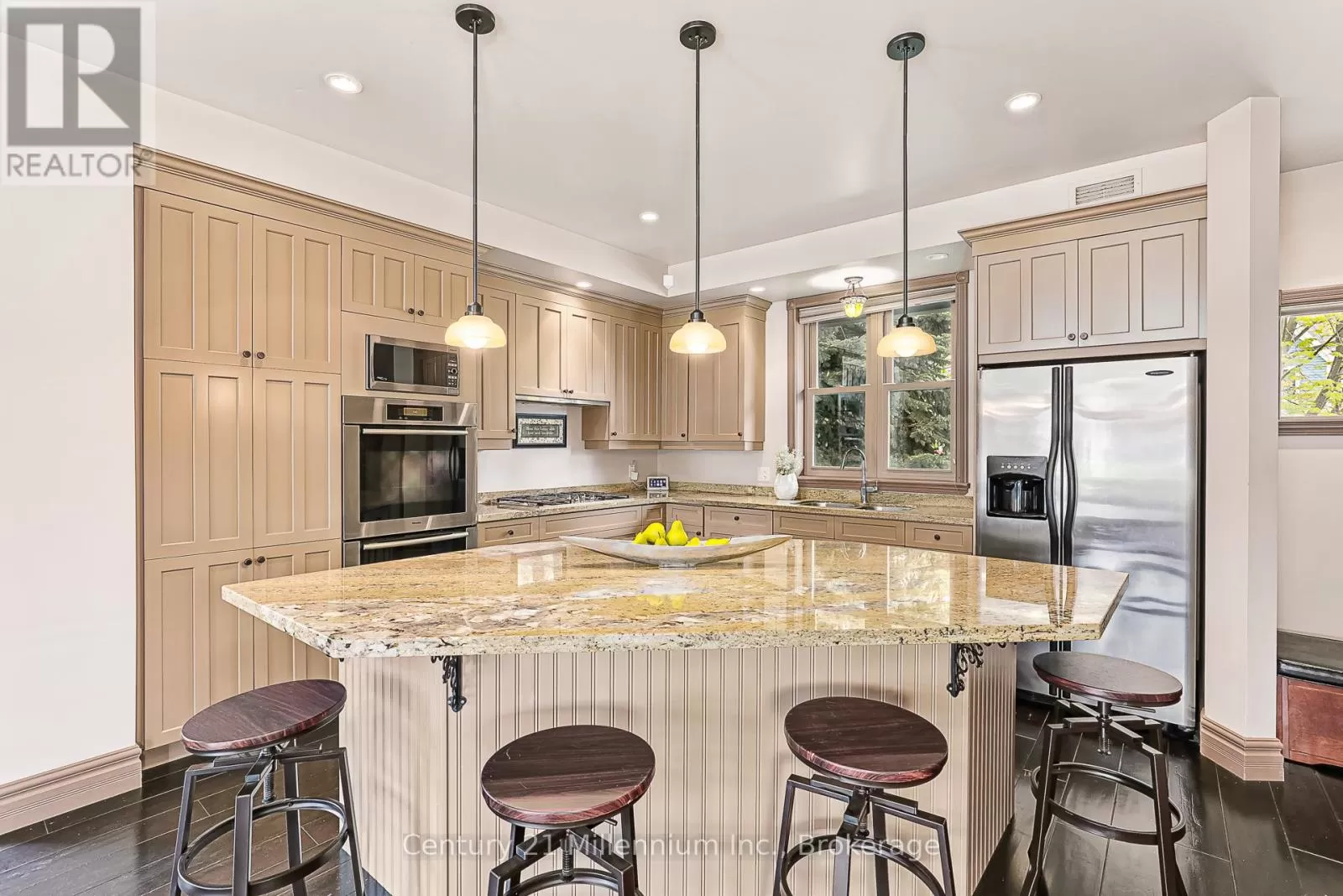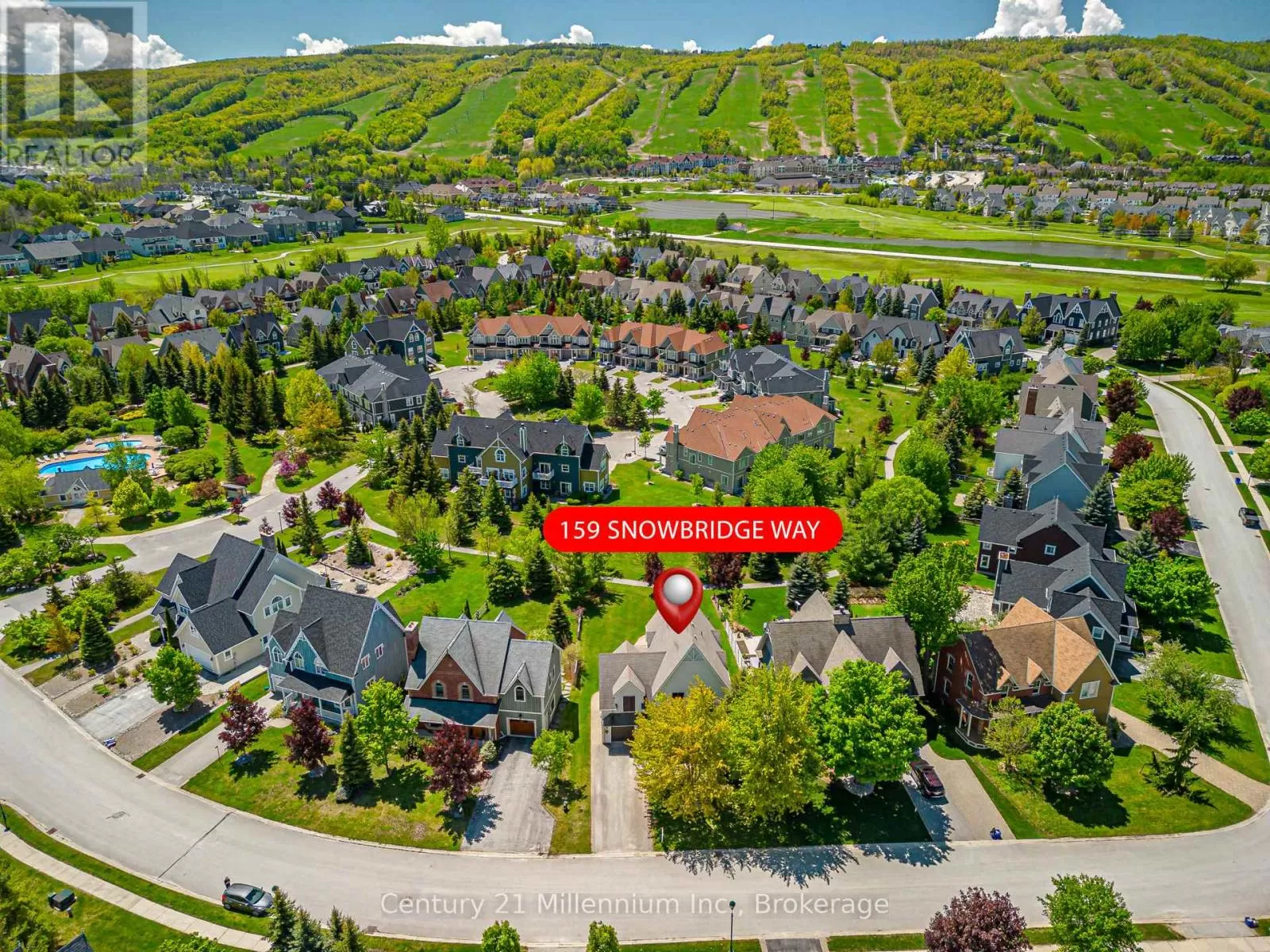 Cross Streets: Grey Rd 19 and Snowbridge Way. ** Directions: Hwy 26 to Grey Rd 19 to Snowbridge Way. 6 BEDROOMS, 5 BATHROOMS CHALET WITH HOT TUB, POOL TABLE, PING PONG TABLE, FOOSBALL AND SHUTTLESERVICE TO THE VILLAGE AND PRIVATE BEACH! FULLY TURN-KEY! Discover a world of unparalleled mountain living in this magnificent 6-bedroom, 5-bathroom FOUR SEASON chalet, perfectly situated within the prestigious Historic Snowbridge community. This is more than a home; it's a four-season lifestyle. Wake up to breathtaking mountain views from your great room, hot tub and private backyard, with Blue Mountain's ski slopes, vibrant village, and the exclusive Blue Mountains Private Beach all just moments from your doorstep. Step inside and be captivated by a grand, open-concept layout designed for both intimate family moments and large-scale entertaining. The gourmet kitchen is a chef's delight, featuring elegant granite counters and a suite of high-end Miele appliances, including a gas cooktop and dual built-in ovens. The space flows seamlessly into a great room with soaring cathedral ceilings and a gas fireplace, creating a warm, inviting ambiance. The fun continues in the fully appointed basement, an ideal recreation space with a pool table, ping pong, and foosball perfect for creating unforgettable memories. A 3-piece bathroom and a large bedroom with two double beds provide flexible and comfortable accommodations. The chalet offers ample room with 6 spacious bedrooms(5 upstairs/1 down), including a luxurious king-sized primary suite complete with a private ensuite with heated floors and a steam shower. Two additional 3-piece bathrooms on the second floor ensure comfort and convenience for all. This property comes fully furnished and includes a new furnace, making it completely turn-key. Enjoy exclusive Historic Snowbridge Community's amenities, including an inground outdoor pool, hot tub, and a convenient shuttle service that takes you directly to the Village, the private beach, golf course and ski slopes. Just 1-hour and 45-minute drive from Toronto Pearson Airport. (id:27476)