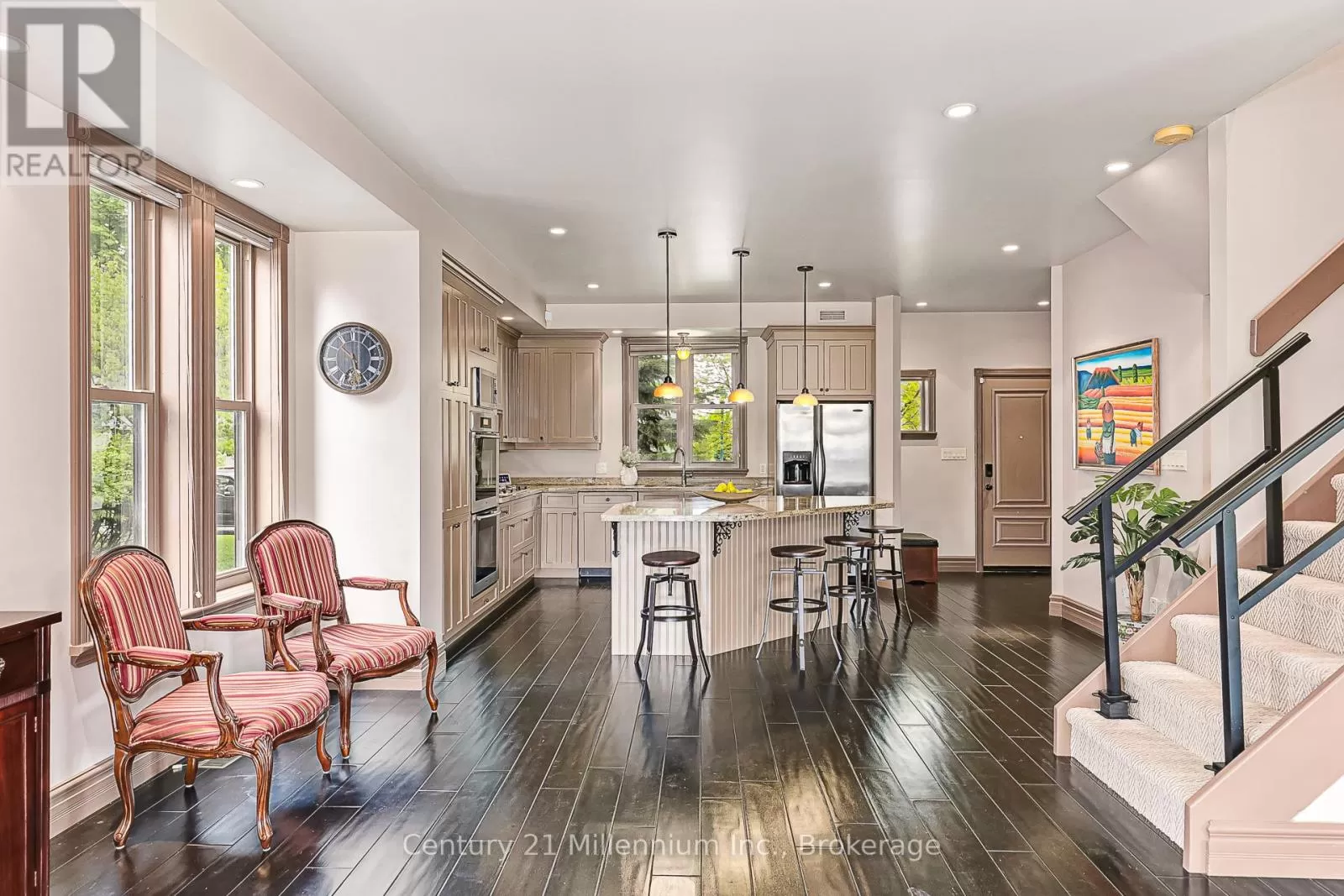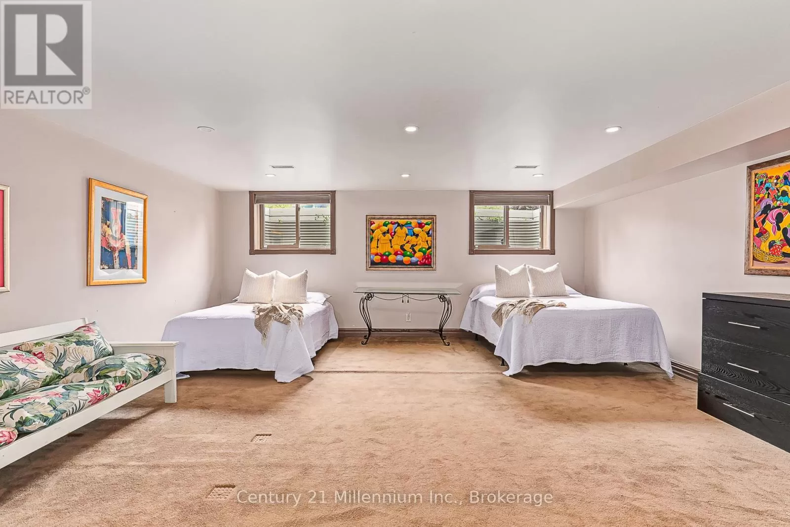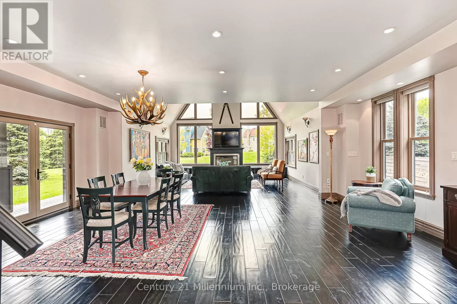 Cross Streets: Grey Rd 19 and Snowbridge Way. ** Directions: Hwy 26 to Grey Rd 19 to Snowbridge Way. 6 BEDROOMS, 5 BATHROOMS CHALET WITH HOT TUB, POOL TABLE, PING PONG TABLE, FOOSBALL AND SHUTTLESERVICE TO THE VILLAGE AND PRIVATE BEACH! FULLY TURN-KEY! Discover a world of unparalleled mountain living in this magnificent 6-bedroom, 5-bathroom FOUR SEASON chalet, perfectly situated within the prestigious Historic Snowbridge community. This is more than a home; it's a four-season lifestyle. Wake up to breathtaking mountain views from your great room, hot tub and private backyard, with Blue Mountain's ski slopes, vibrant village, and the exclusive Blue Mountains Private Beach all just moments from your doorstep. Step inside and be captivated by a grand, open-concept layout designed for both intimate family moments and large-scale entertaining. The gourmet kitchen is a chef's delight, featuring elegant granite counters and a suite of high-end Miele appliances, including a gas cooktop and dual built-in ovens. The space flows seamlessly into a great room with soaring cathedral ceilings and a gas fireplace, creating a warm, inviting ambiance. The fun continues in the fully appointed basement, an ideal recreation space with a pool table, ping pong, and foosball perfect for creating unforgettable memories. A 3-piece bathroom and a large bedroom with two double beds provide flexible and comfortable accommodations. The chalet offers ample room with 6 spacious bedrooms(5 upstairs/1 down), including a luxurious king-sized primary suite complete with a private ensuite with heated floors and a steam shower. Two additional 3-piece bathrooms on the second floor ensure comfort and convenience for all. This property comes fully furnished and includes a new furnace, making it completely turn-key. Enjoy exclusive Historic Snowbridge Community's amenities, including an inground outdoor pool, hot tub, and a convenient shuttle service that takes you directly to the Village, the private beach, golf course and ski slopes. Just 1-hour and 45-minute drive from Toronto Pearson Airport. (id:27476)