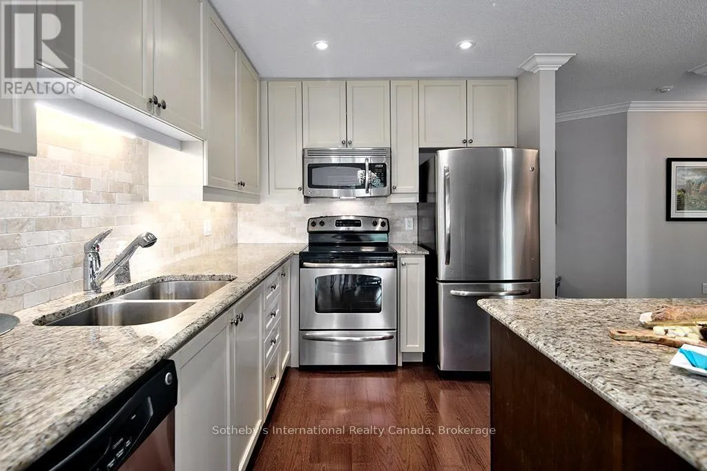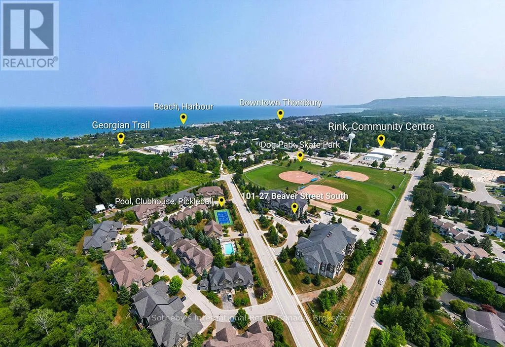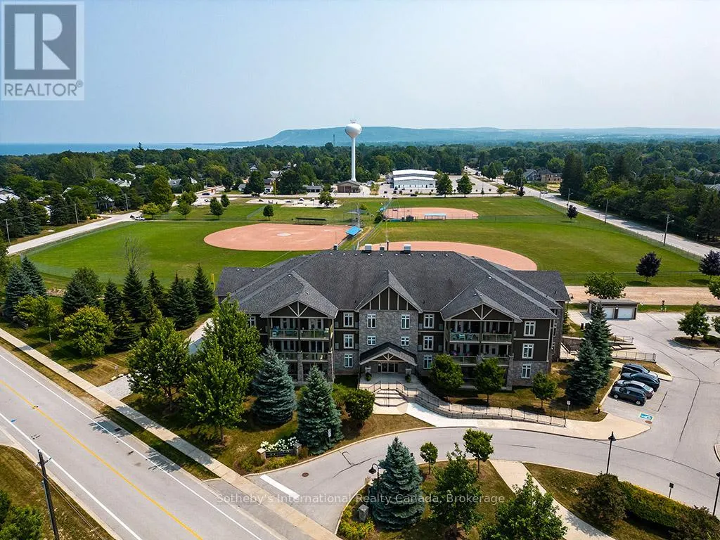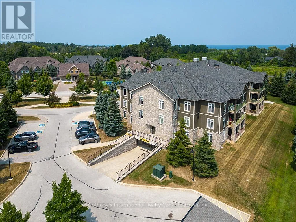 Beaver Street S/Alfred St. W Prime location for this desirable unit set on the first floor in the very sought after Far Hills development. This very bright and spacious 2 bedroom, 2 bathroom suite with open concept living space features 1479 sqft. This beautiful suite has hardwood flooring, a gorgeous kitchen with granite counters, separate island and stainless steel appliances, a picturesque balcony, a large master bedroom with an ensuite with shower and separate tub and features a well sized additional guest room/office and full second bathroom. Amenities include designated underground parking, storage locker, inground pool, tennis courts, clubhouse and fully accessible with elevator and within walking distance to the exclusive boutiques and restaurants of downtown Thornbury, as well as the Georgian Trail and Thornbury harbour marina on stunning Georgian Bay. (id:27476)